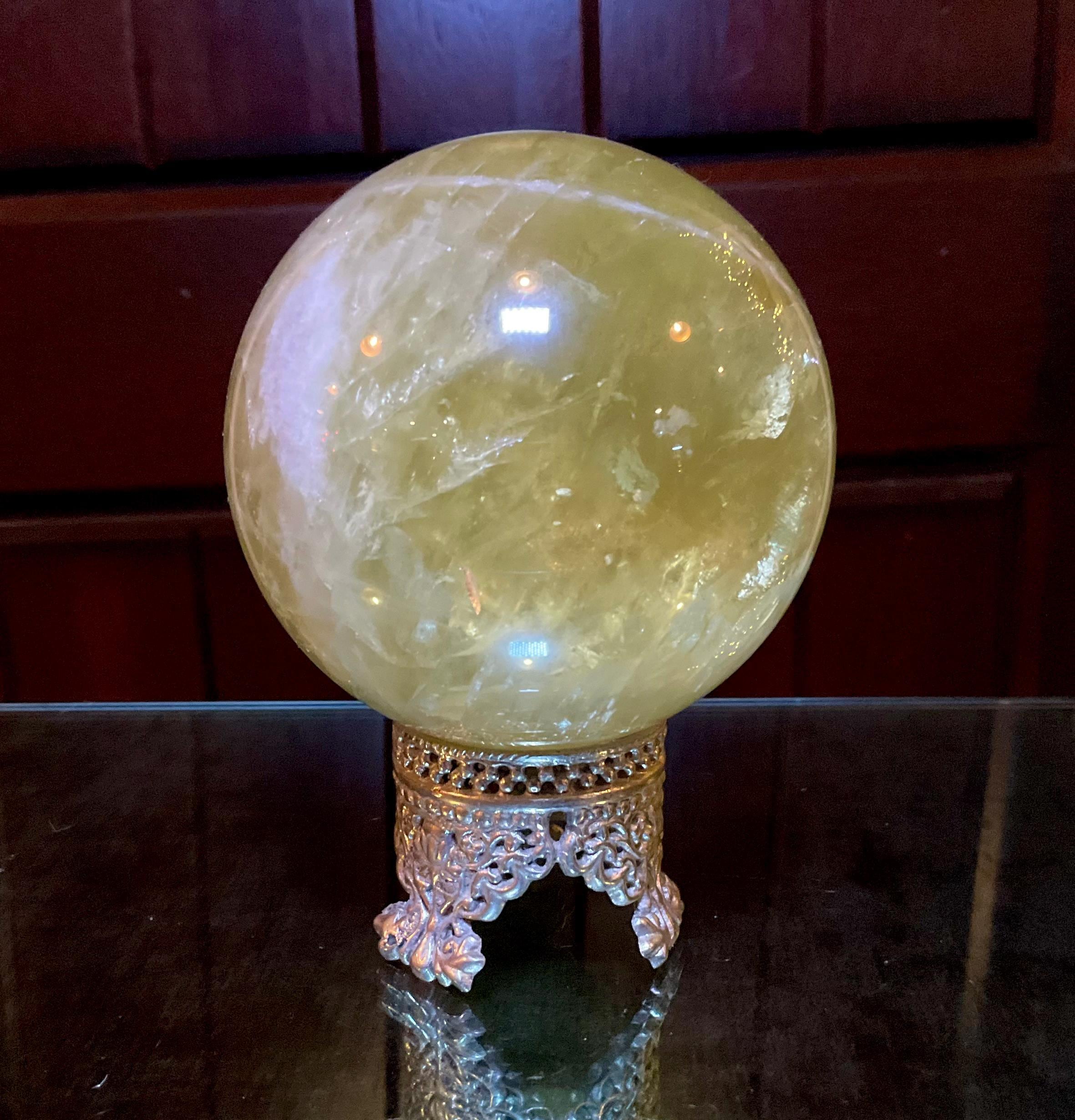 I am very happy to pass along this 2-pound, yellow Citrine quartz sphere which has been privately owned by my husband and me.