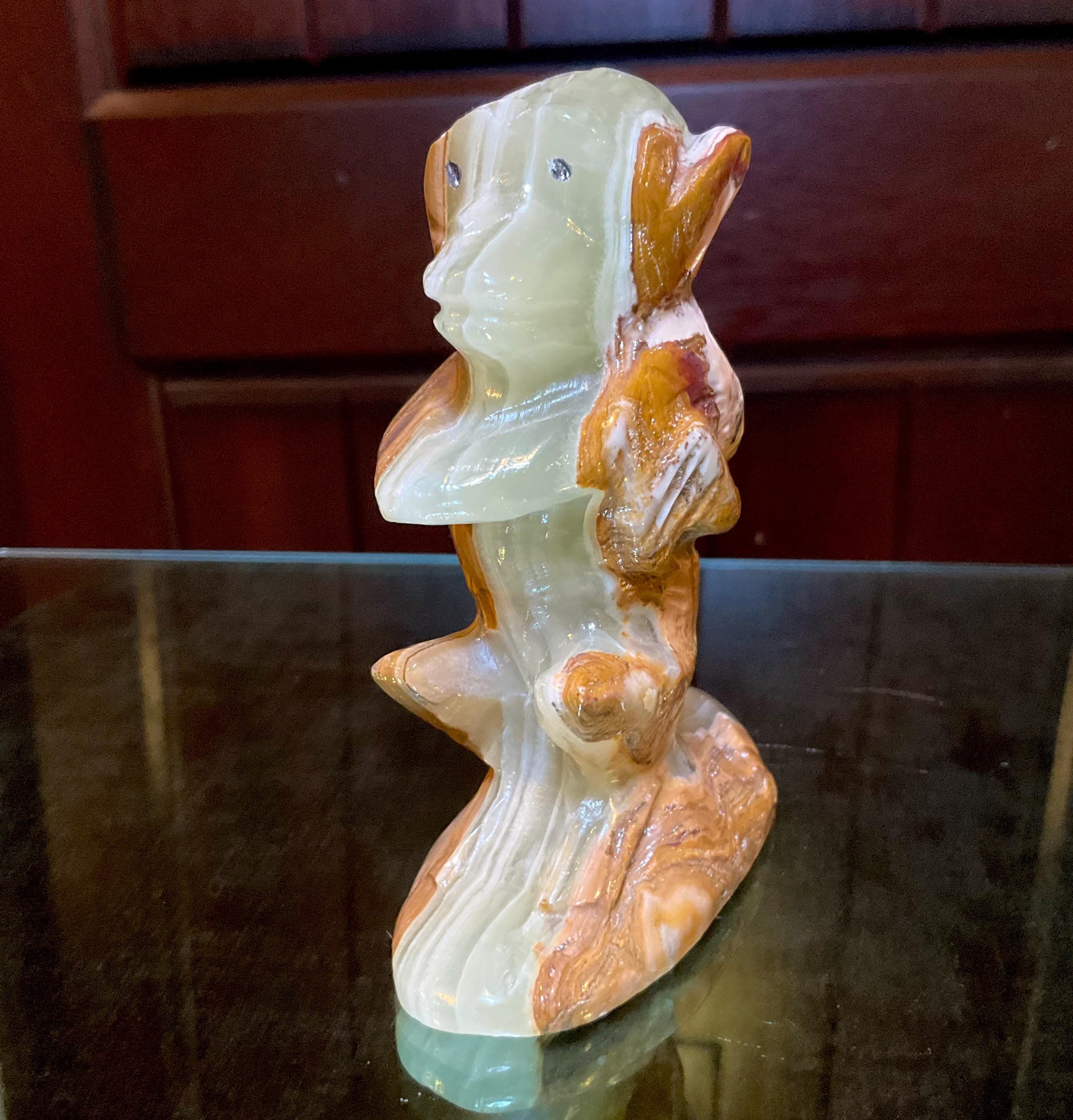 Afghan Jade Monkey Carving ~ 4" Tall ~ Vintage Hand Carved Totem Spirit Animal ~ Polished Specimen