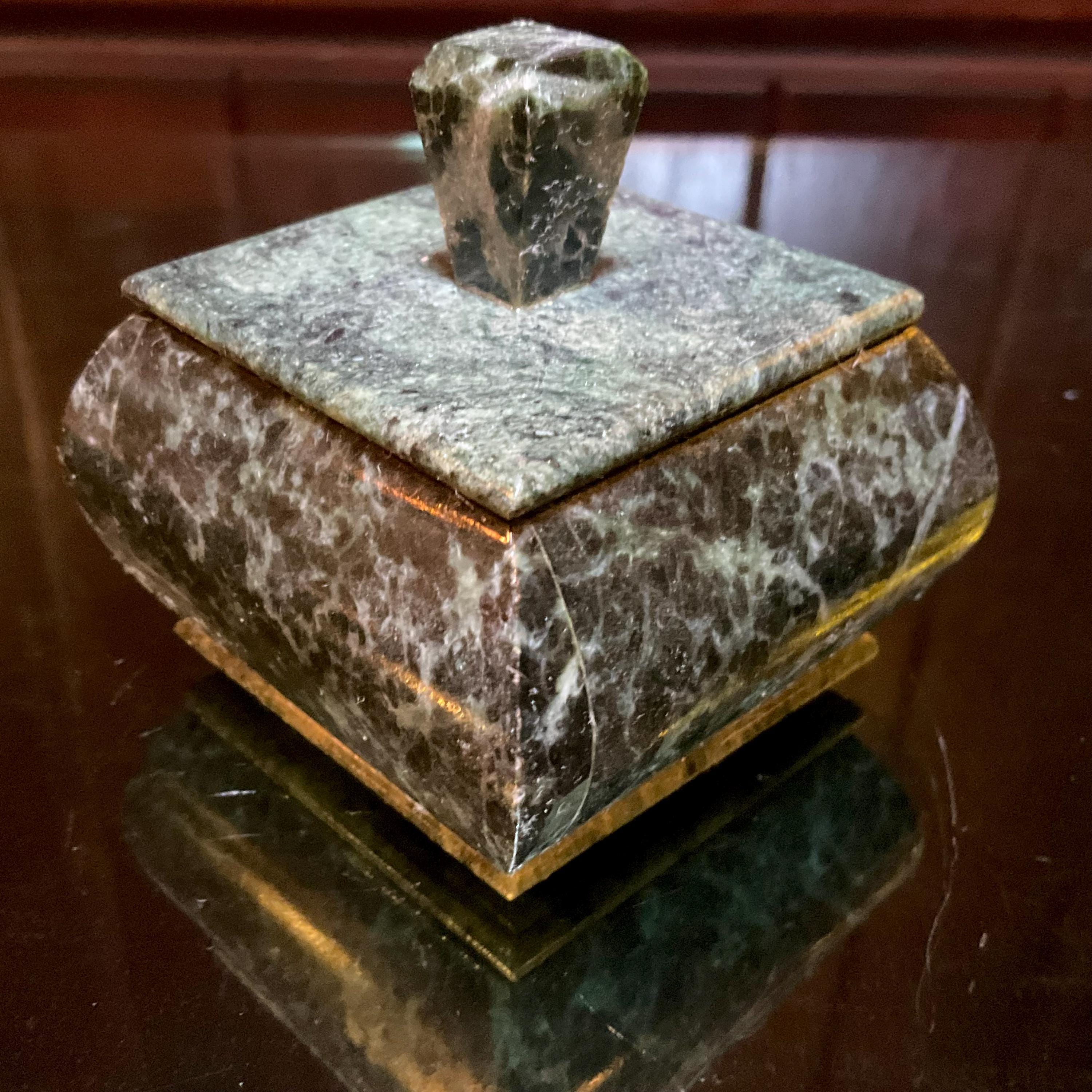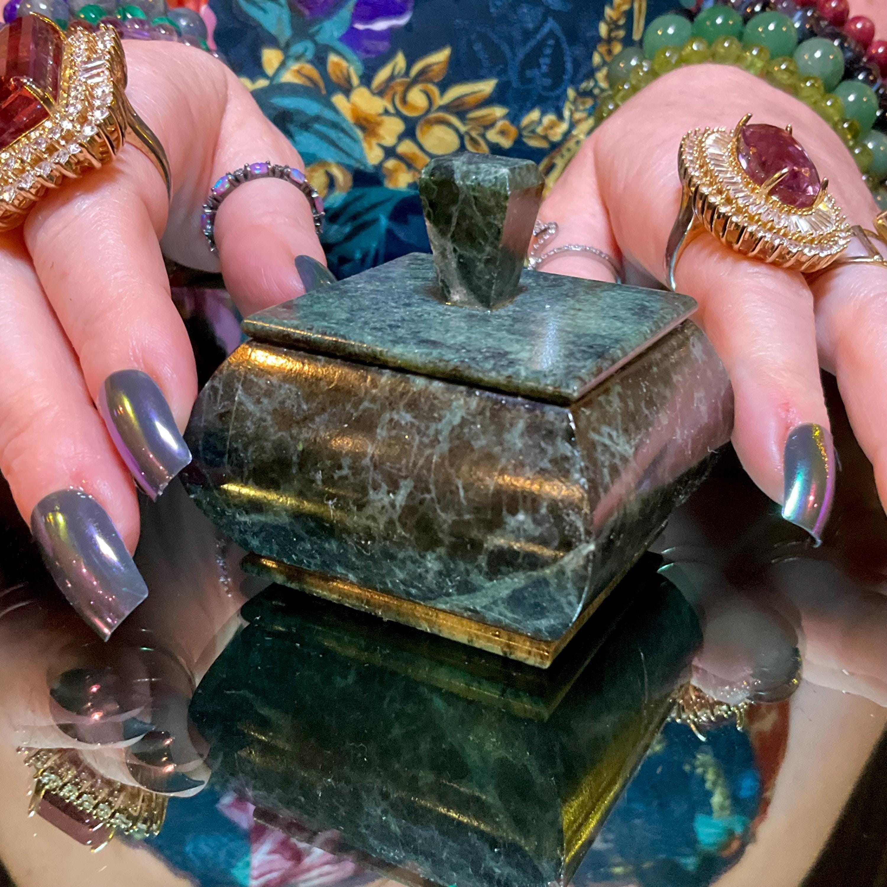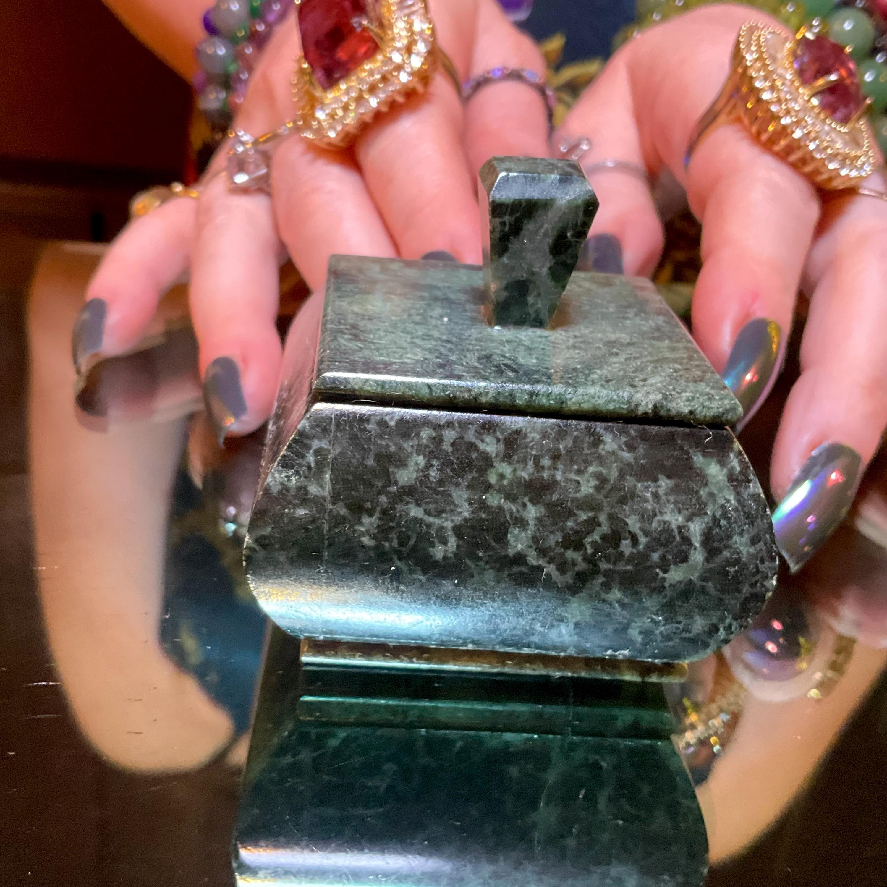 Nephrite Jade Vintage Jewelry Box ~ 2" Long ~ Hand Crafted from Ural Mountains of Russia ~ Swirling Green & Black Colors ~ Stunning Display Specimen ~ Gorgeous Mineral Patterns ~ Crystal Décor