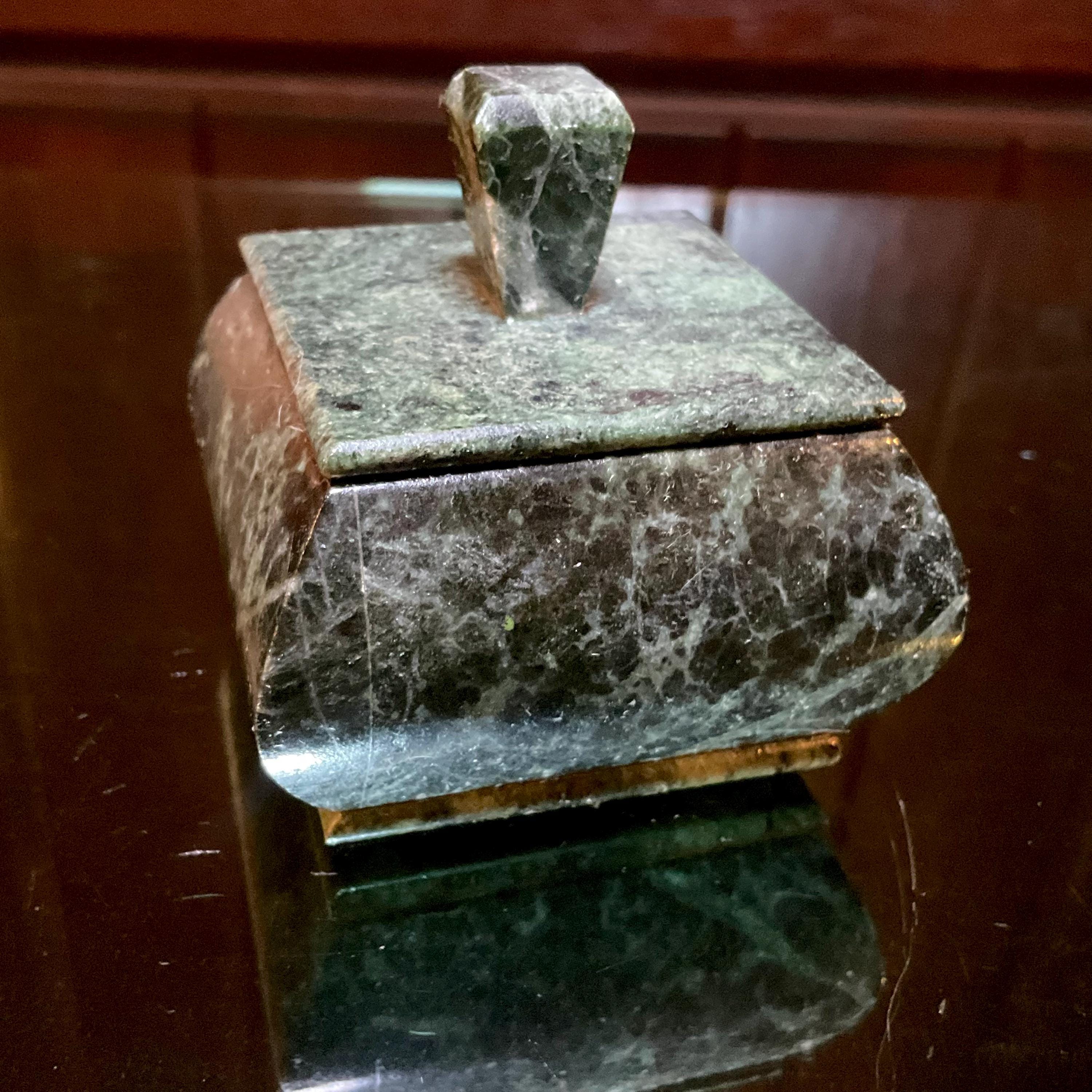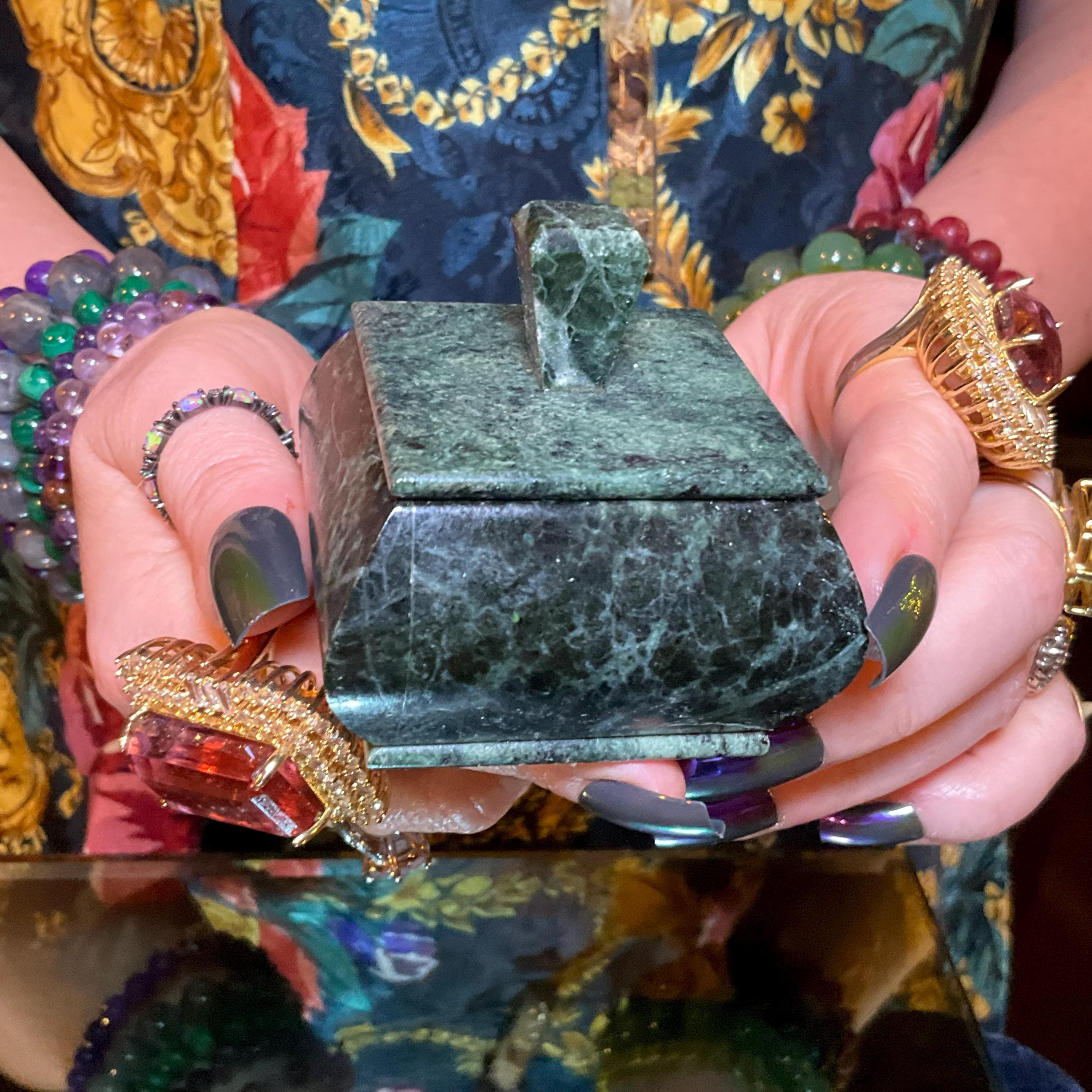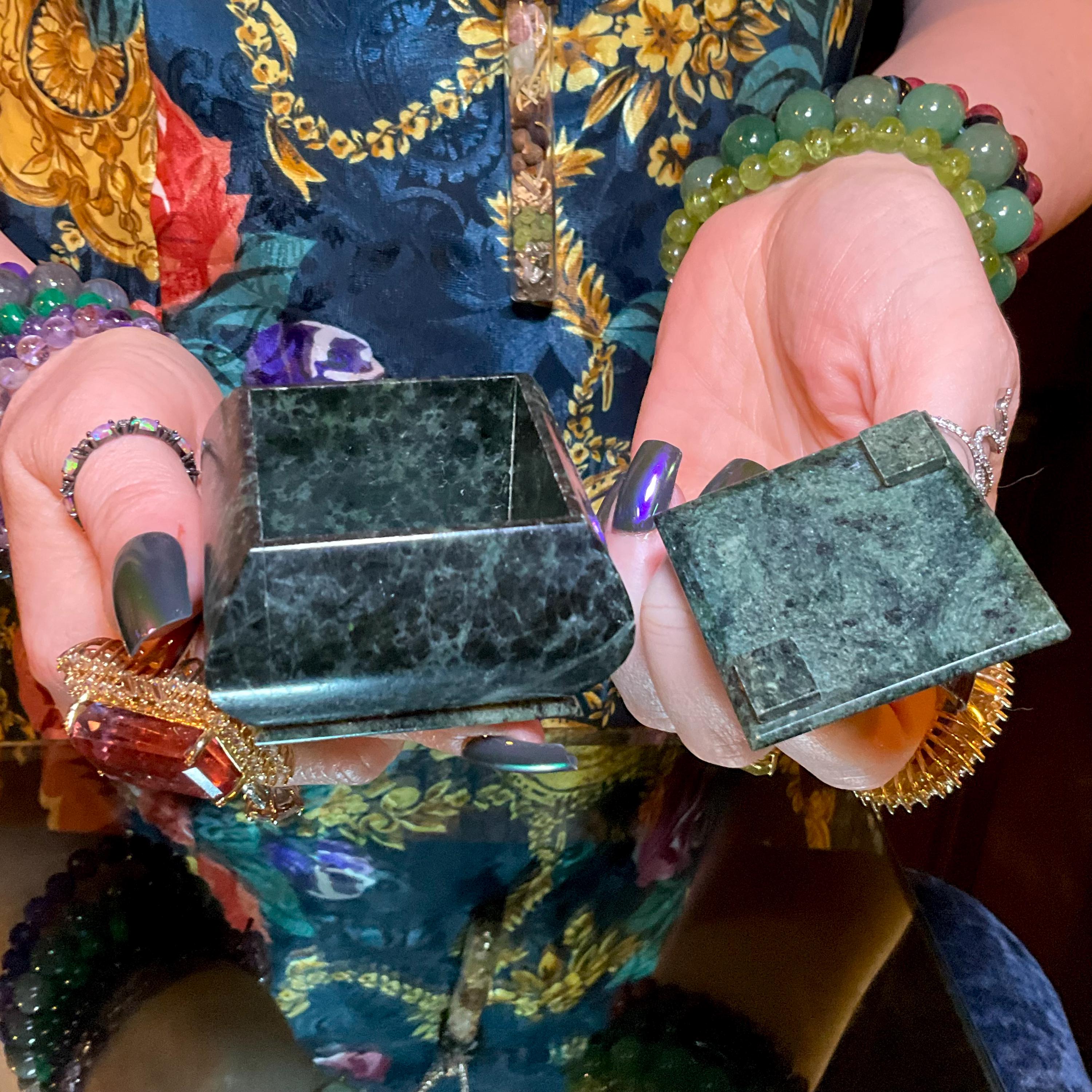 Nephrite Jade Vintage Jewelry Box ~ 2" Long ~ Hand Crafted from Ural Mountains of Russia ~ Swirling Green & Black Colors ~ Stunning Display Specimen ~ Gorgeous Mineral Patterns ~ Crystal Décor