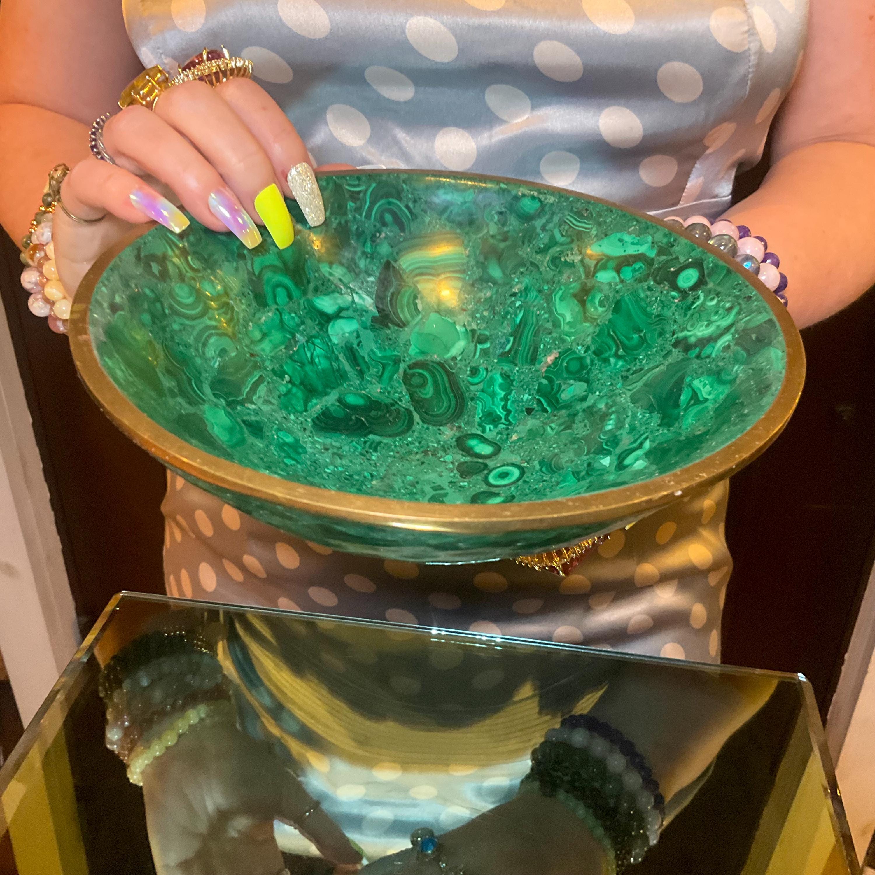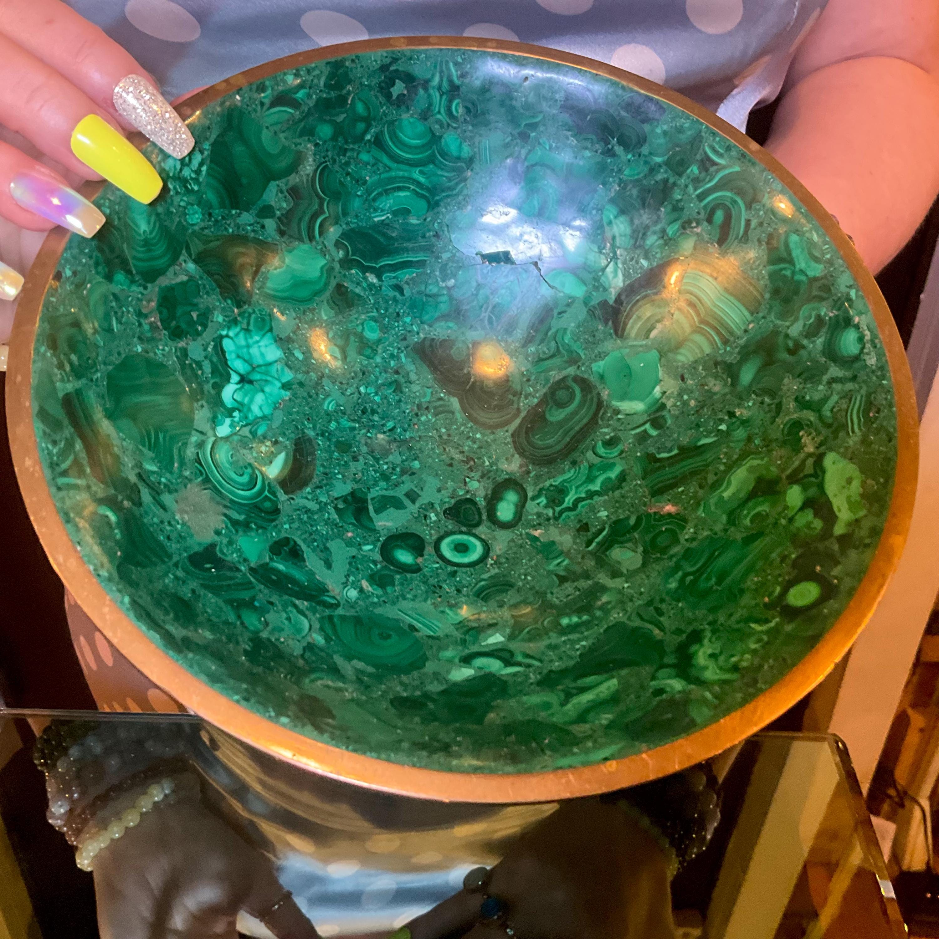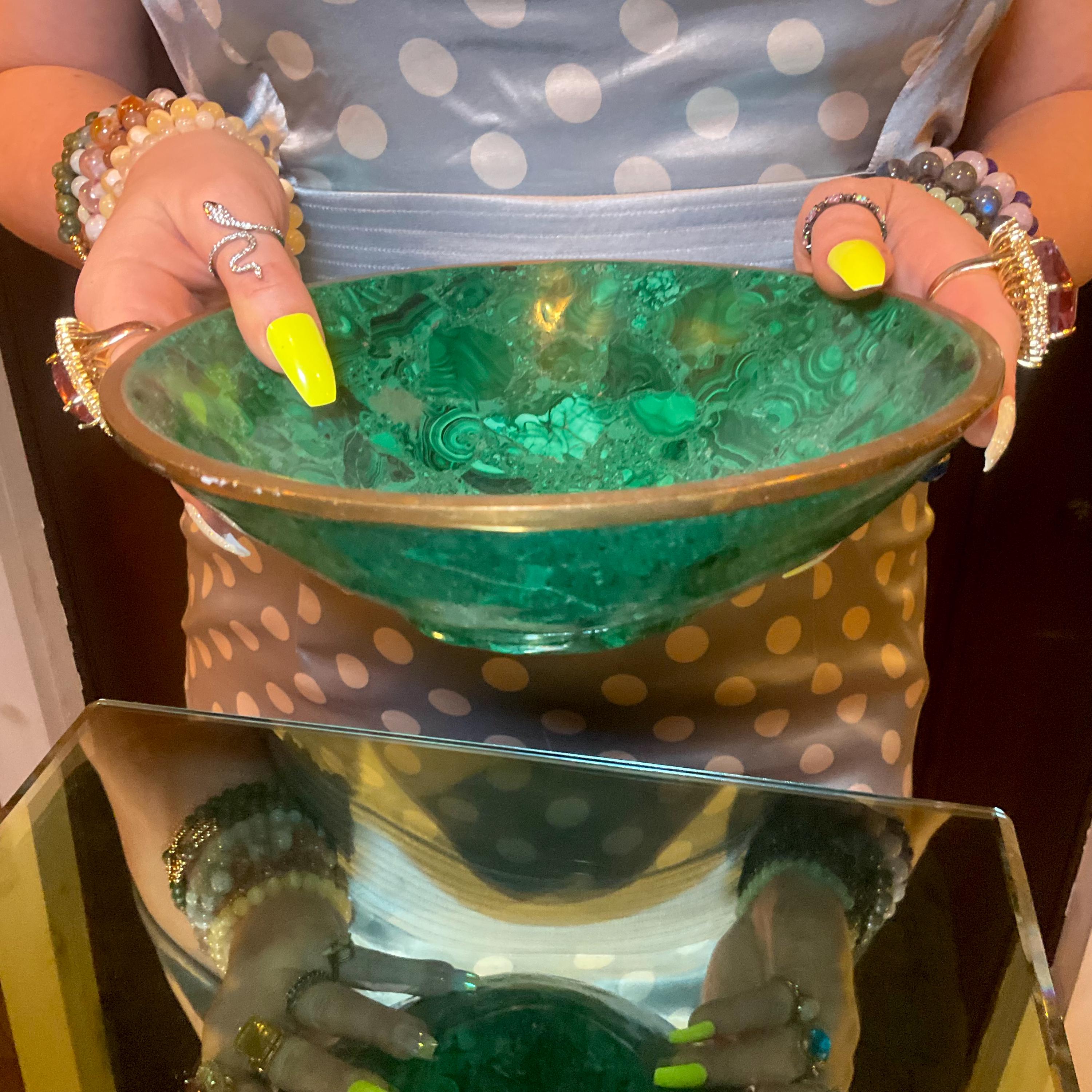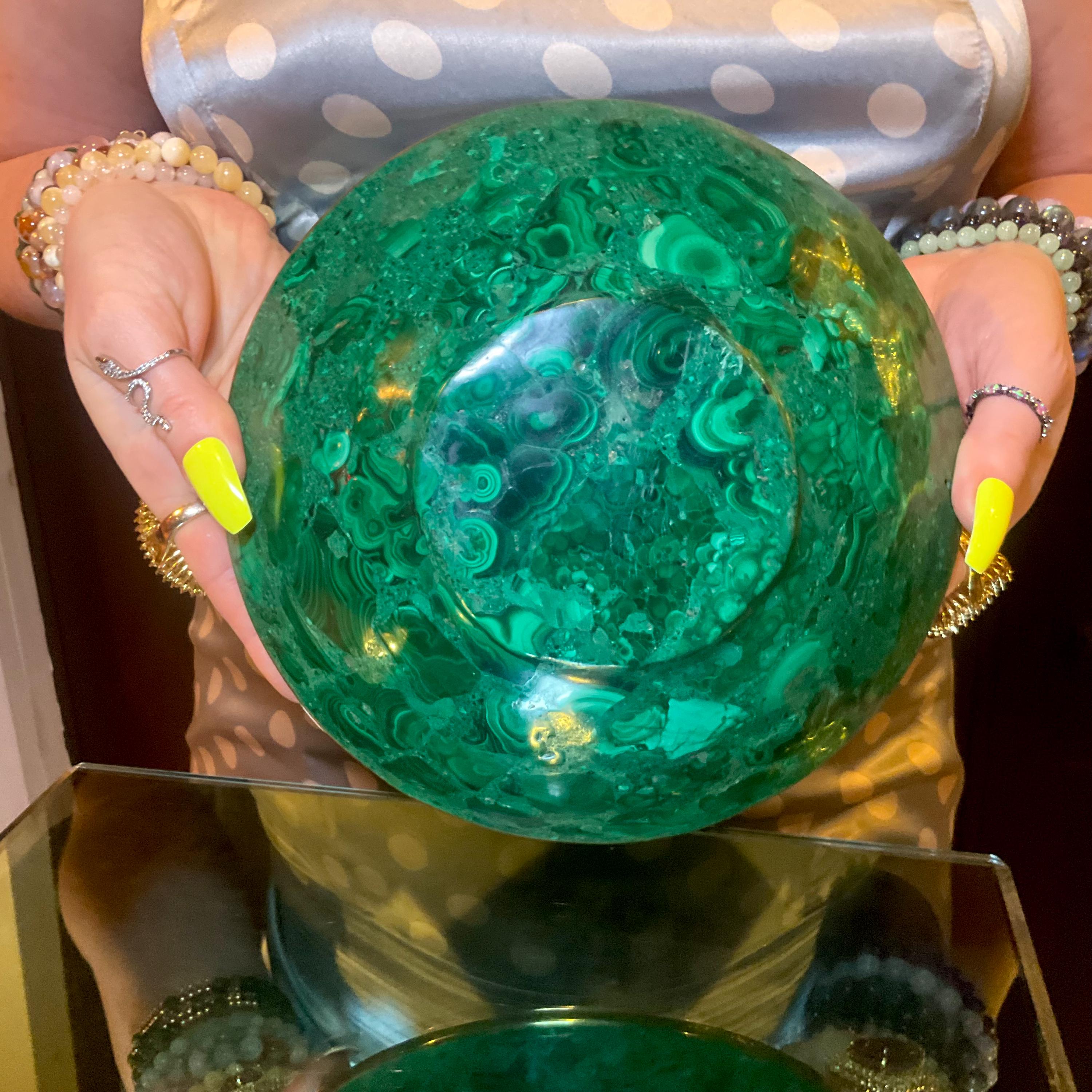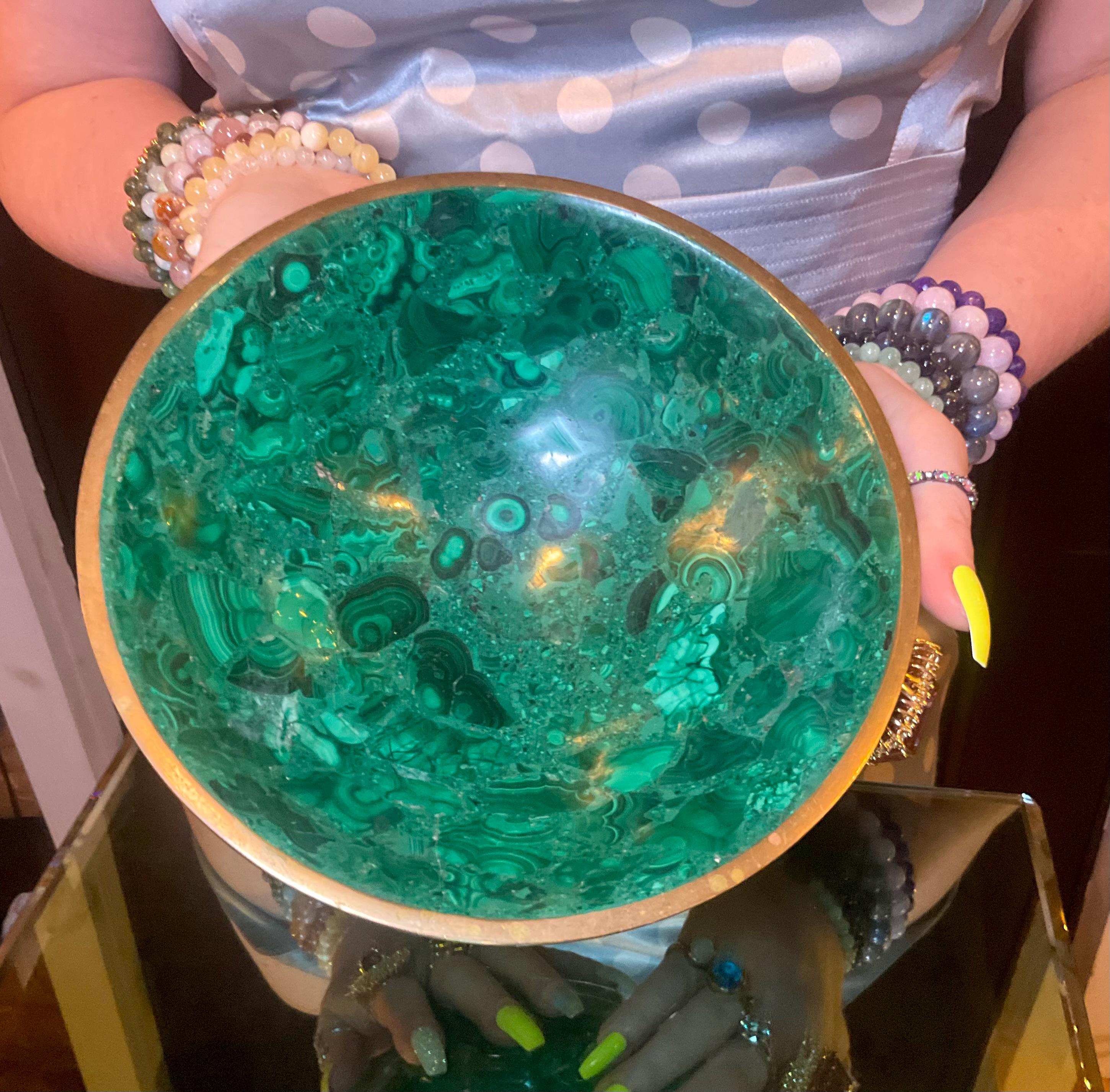 You will love this one-of-a-kind Malachite bowl; it is a beauty to behold.