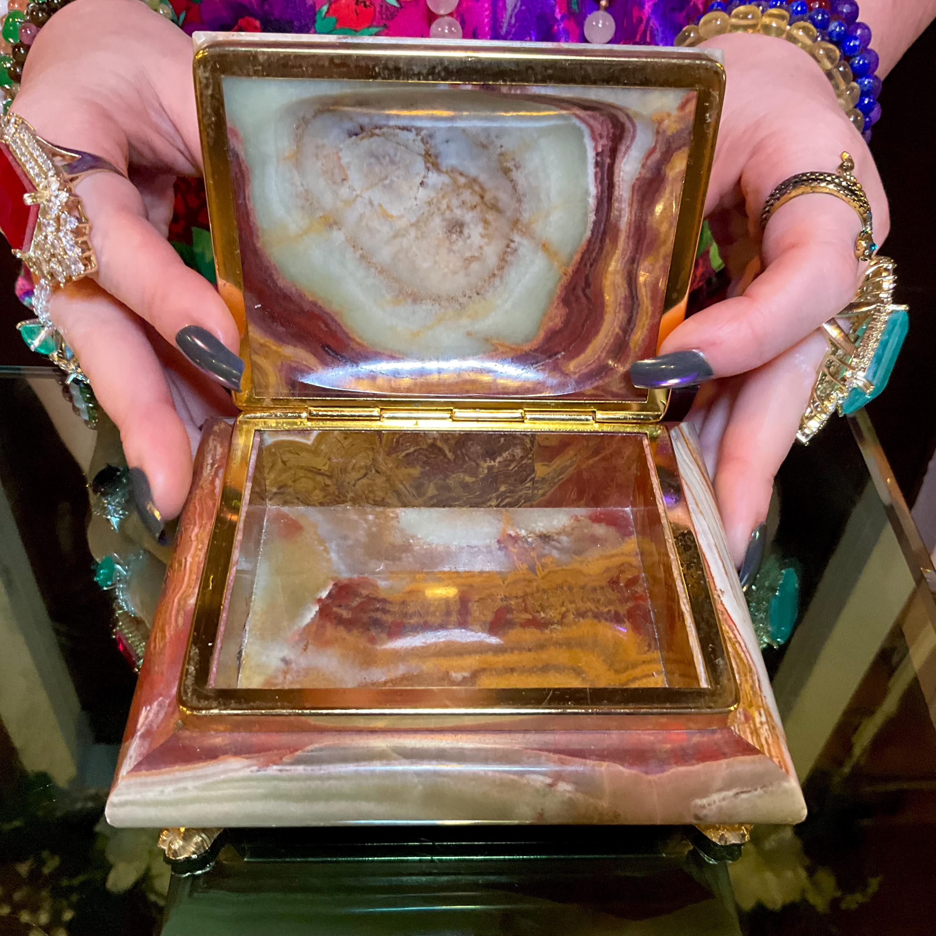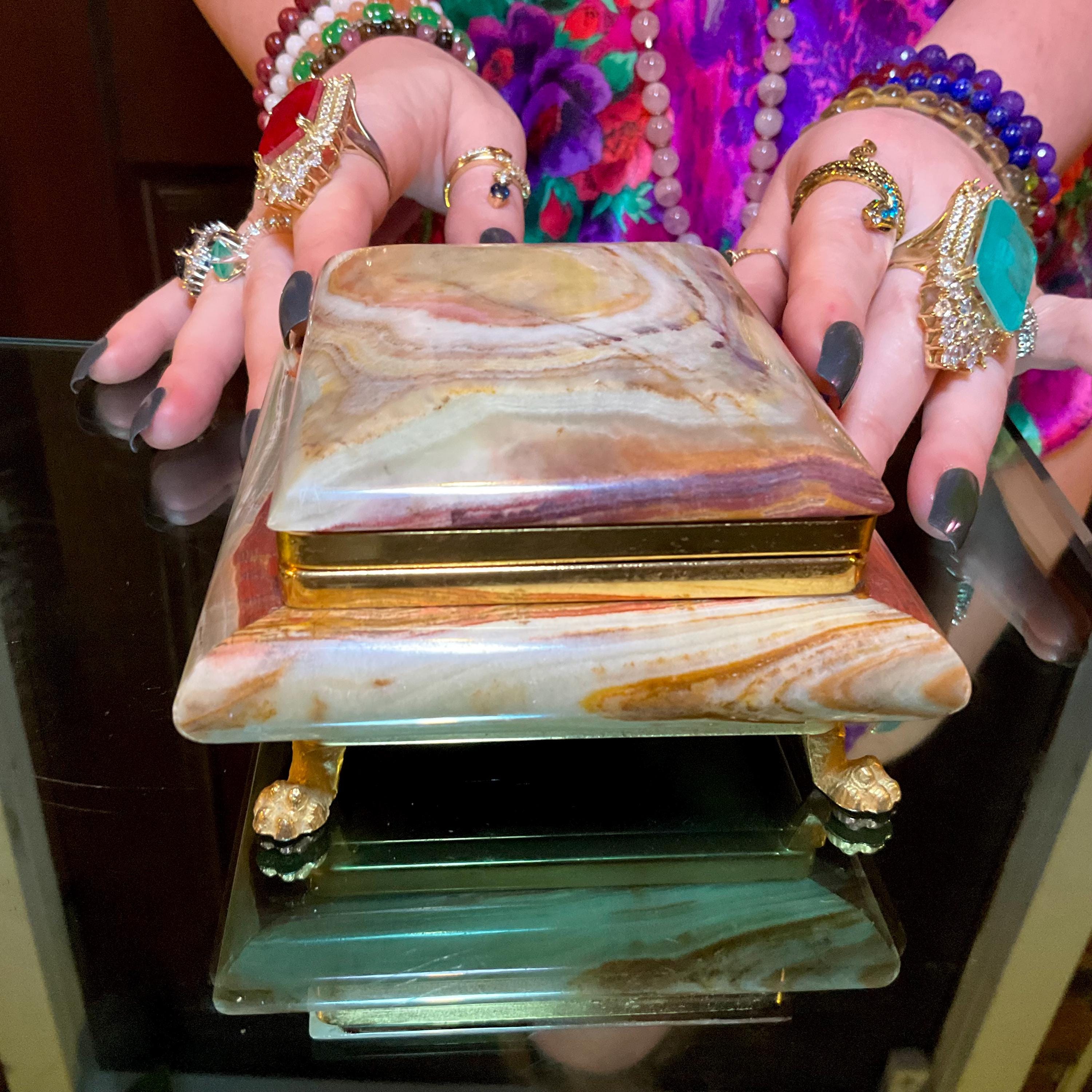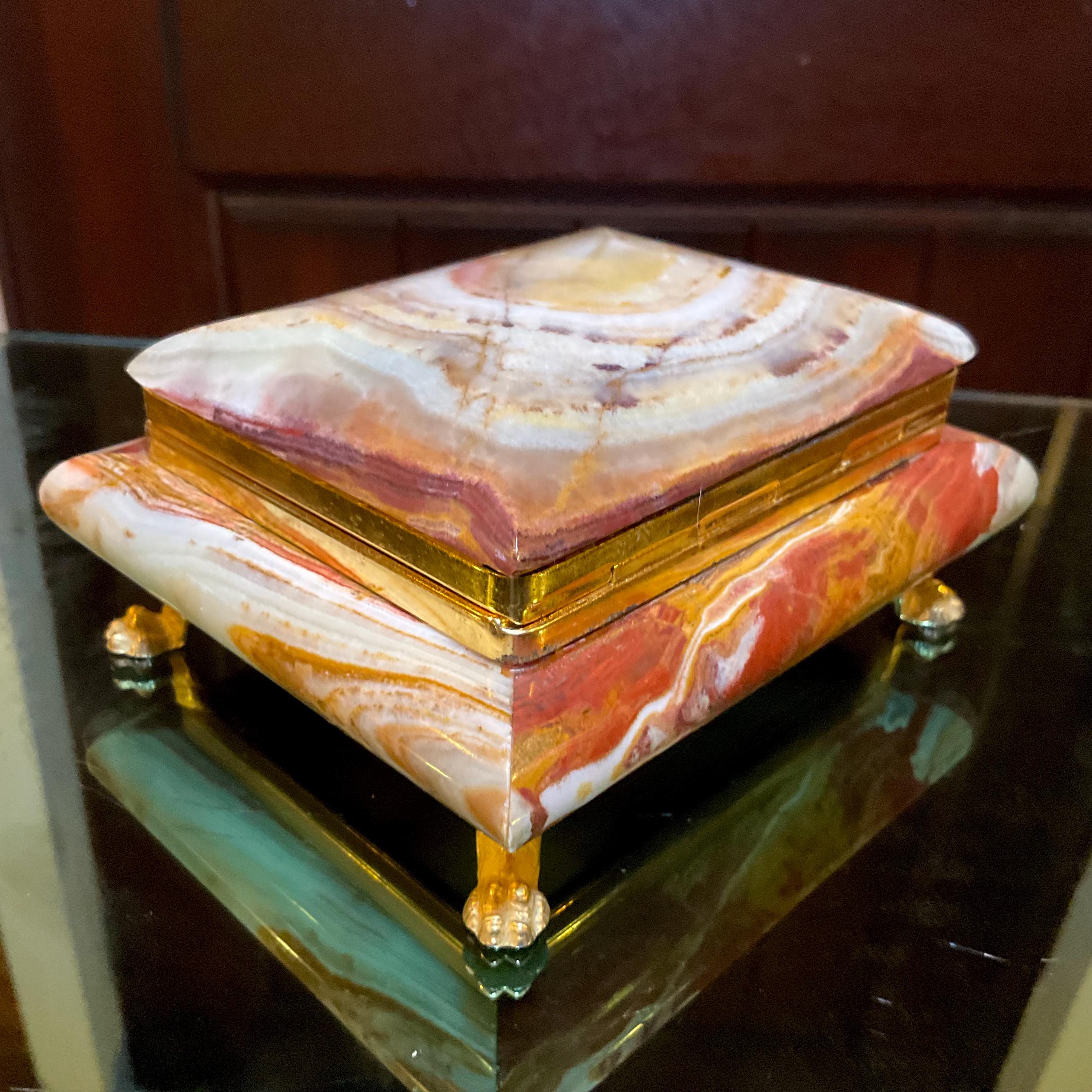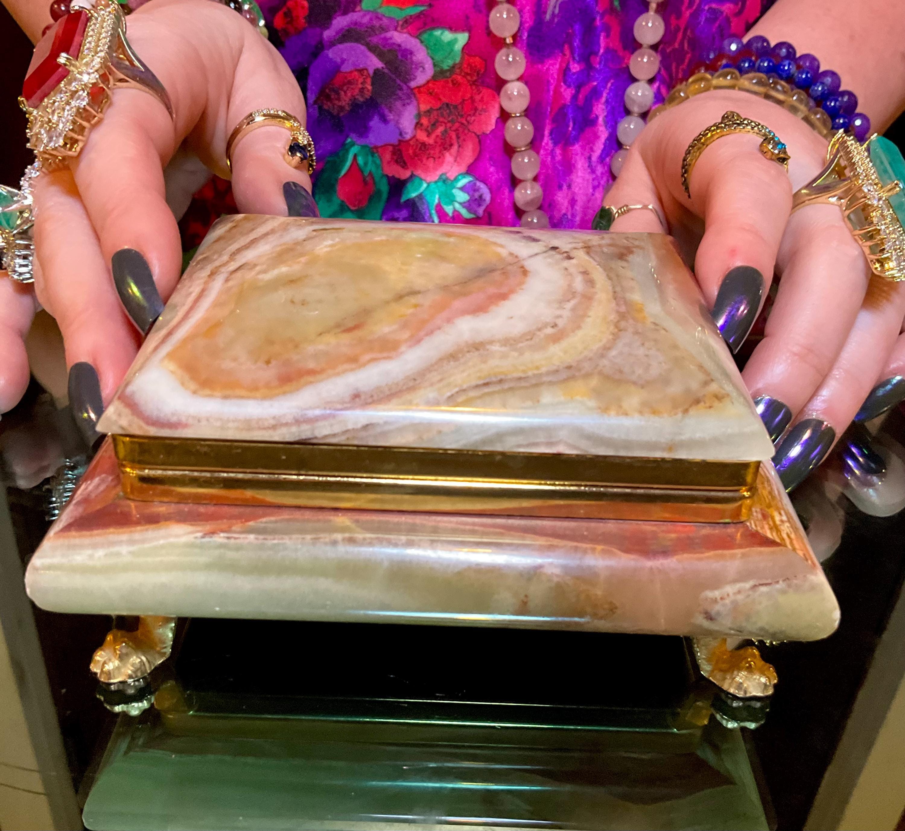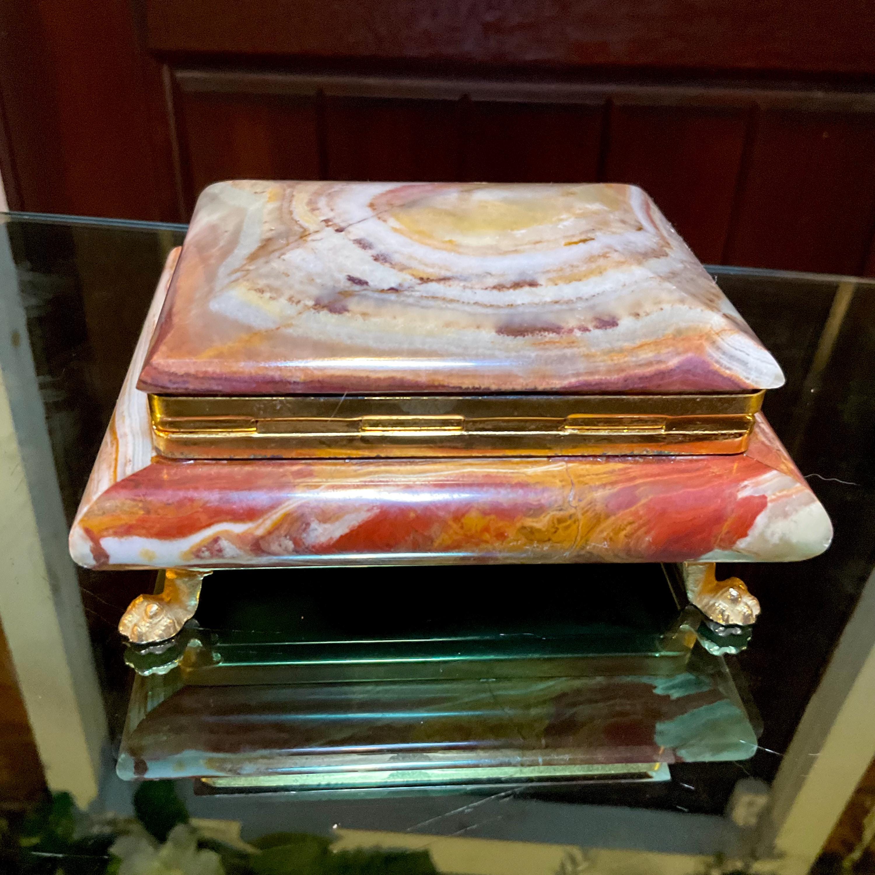 It is loaded with Swirling green, white, yellow & golden-brown pattern's swirling throughout making this a one-of-a-kind treasure box.
