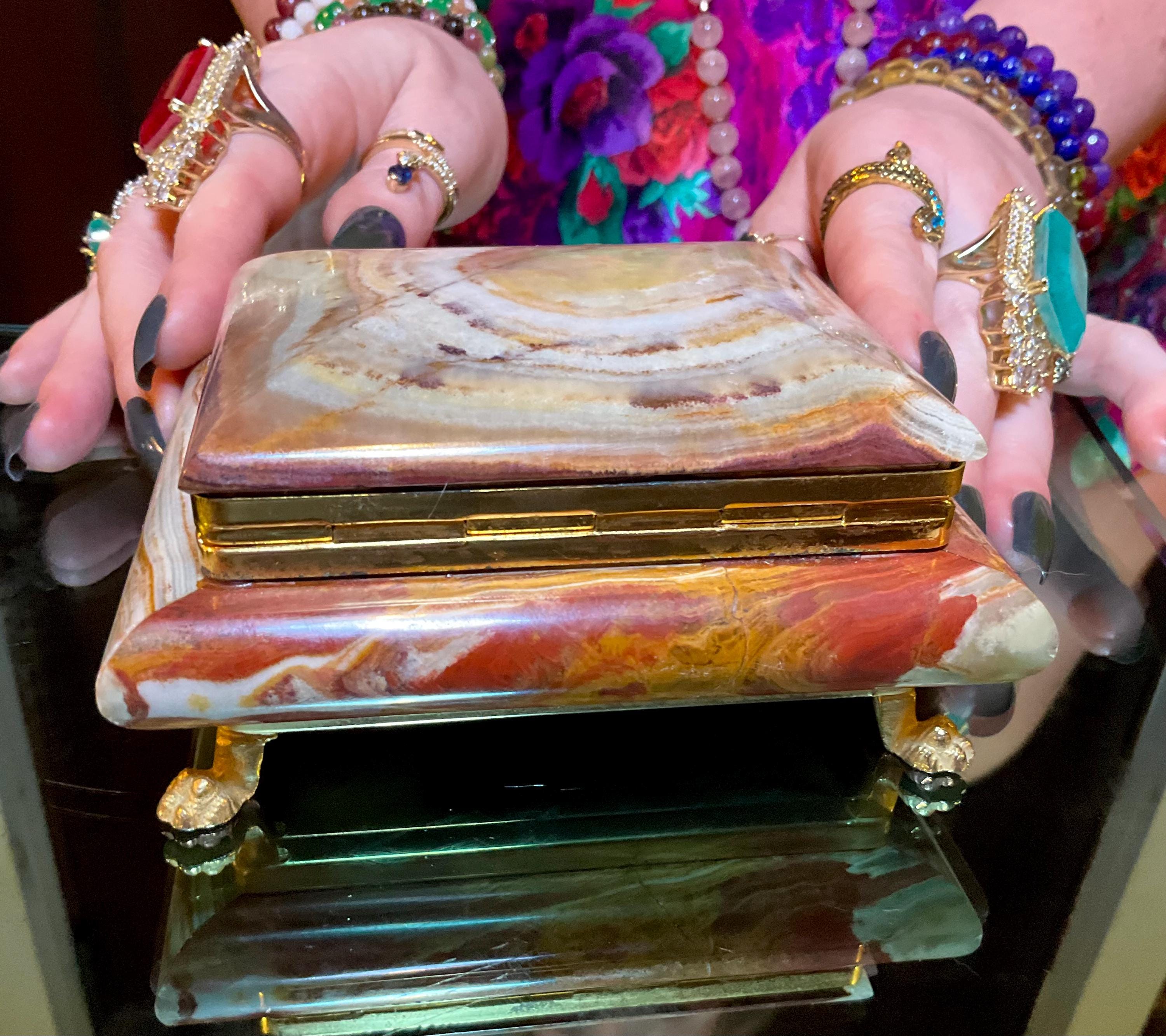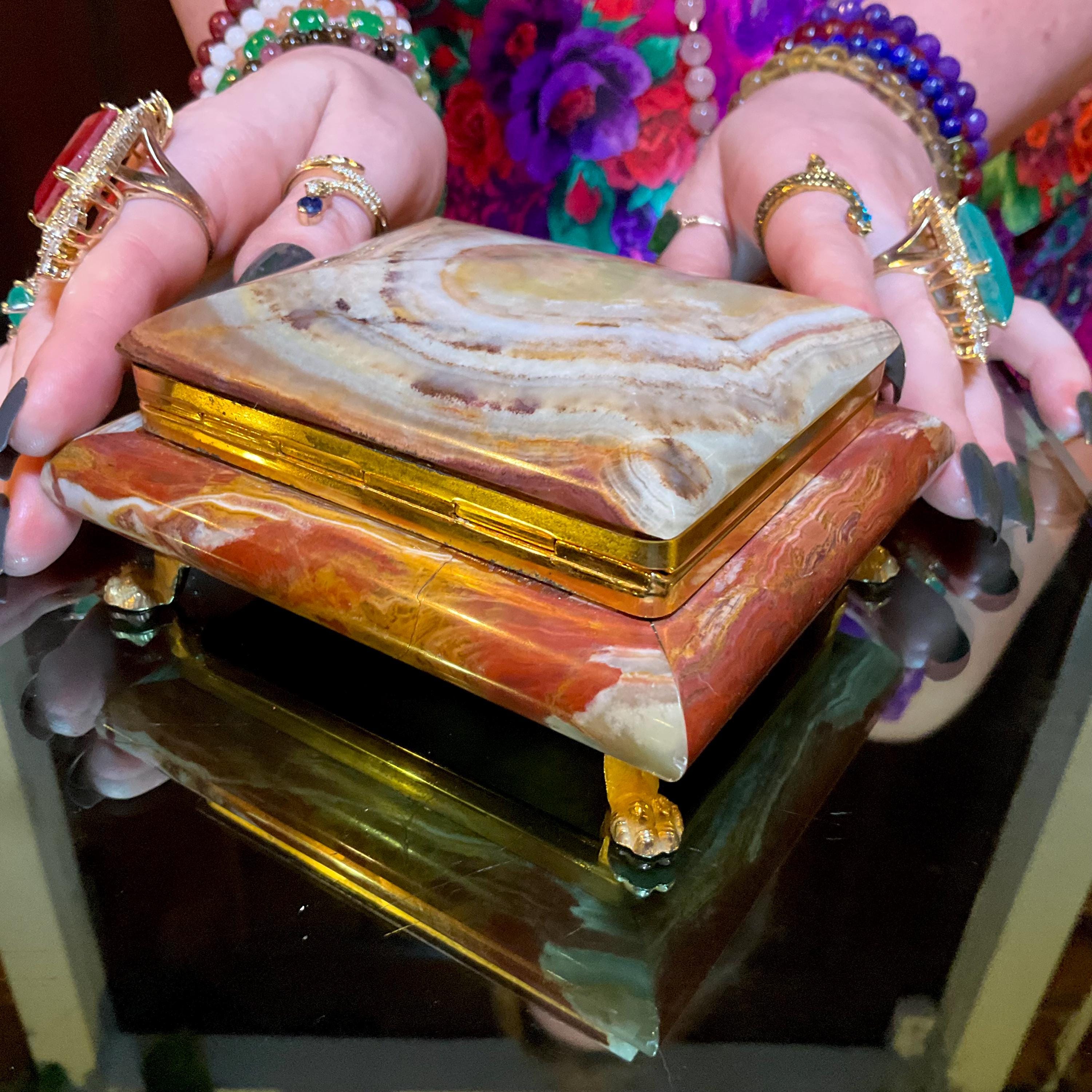 If you love vintage hand carved Banded Afghan Jade, then this beautiful Jewelry Box is for you.