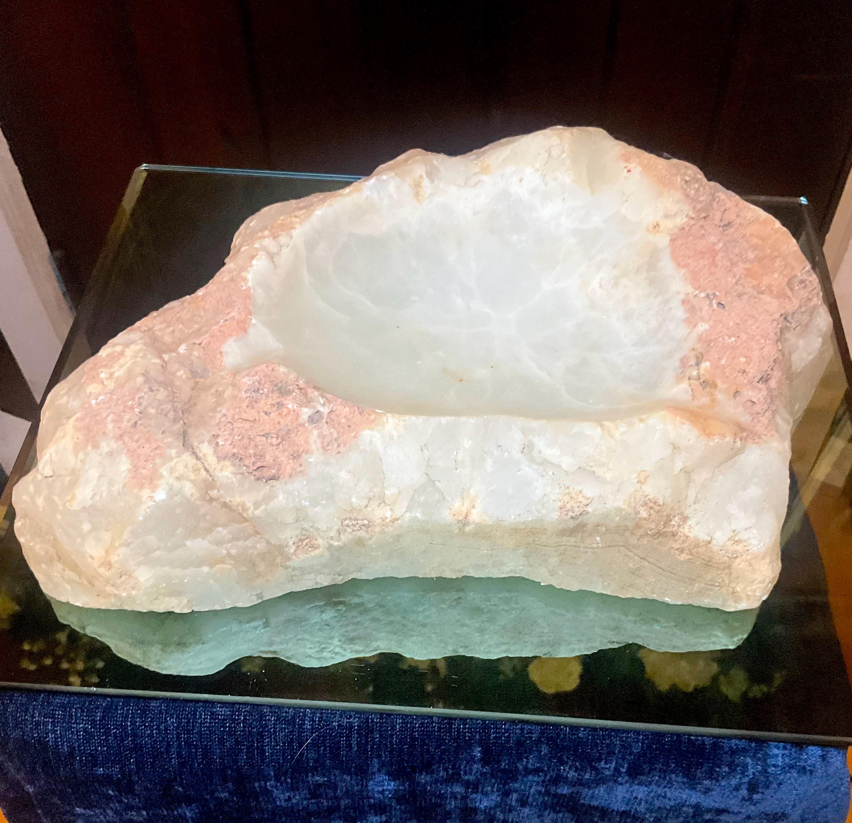 This piece of vintage White Calcite is so beautiful, so thick and its natural patina are so rich, and the natural stone is hand carved,
