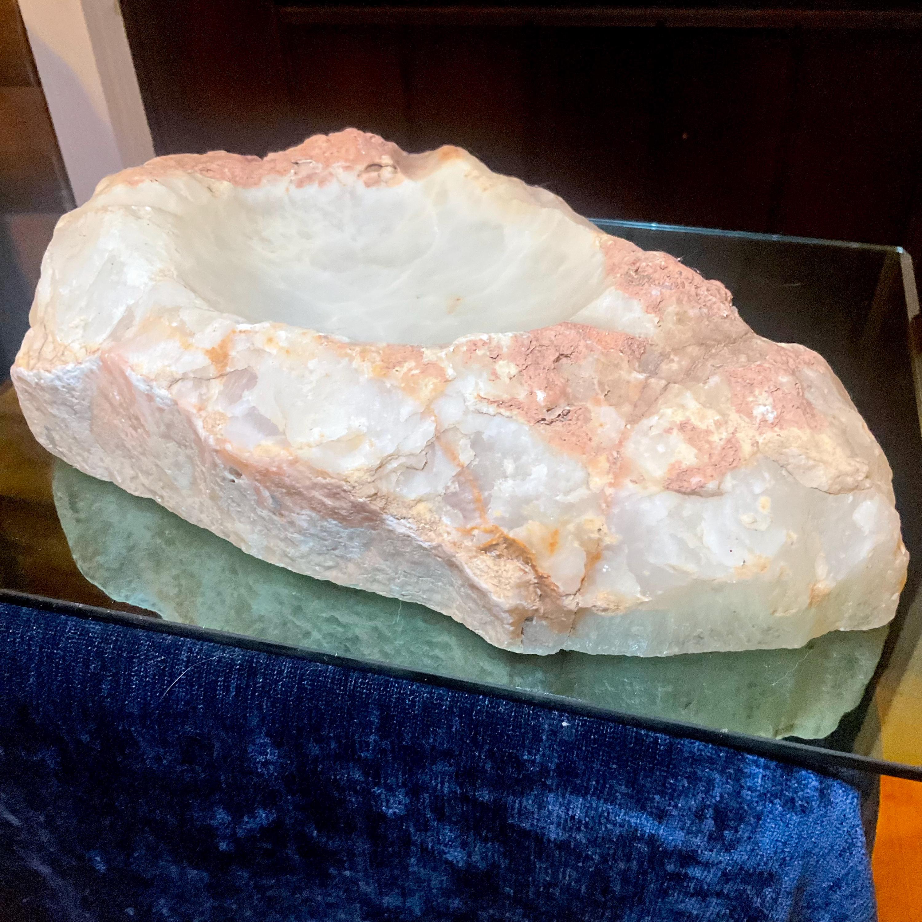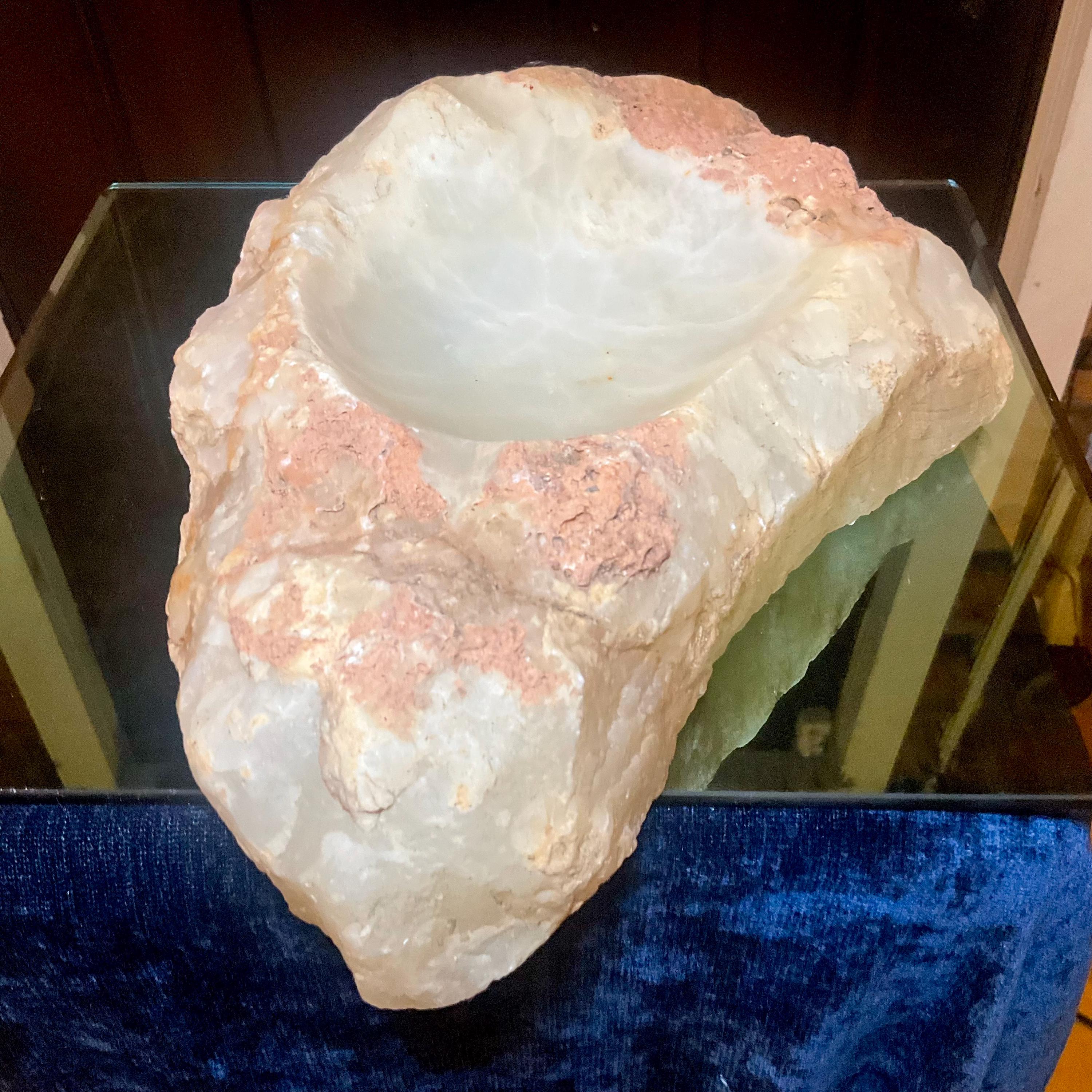 What makes this White Calcite bowl so special is age, patina, and its vintage deco free form style.
