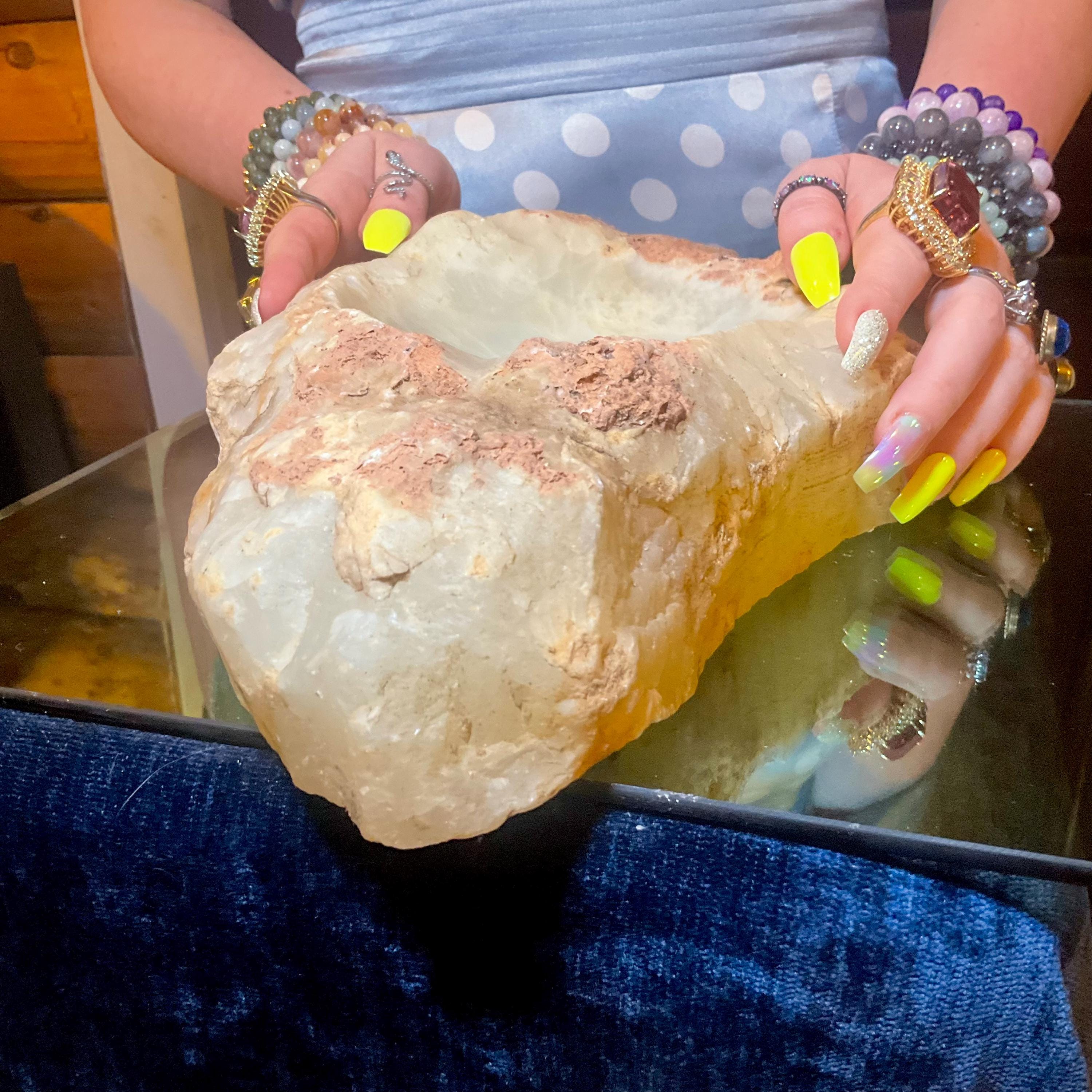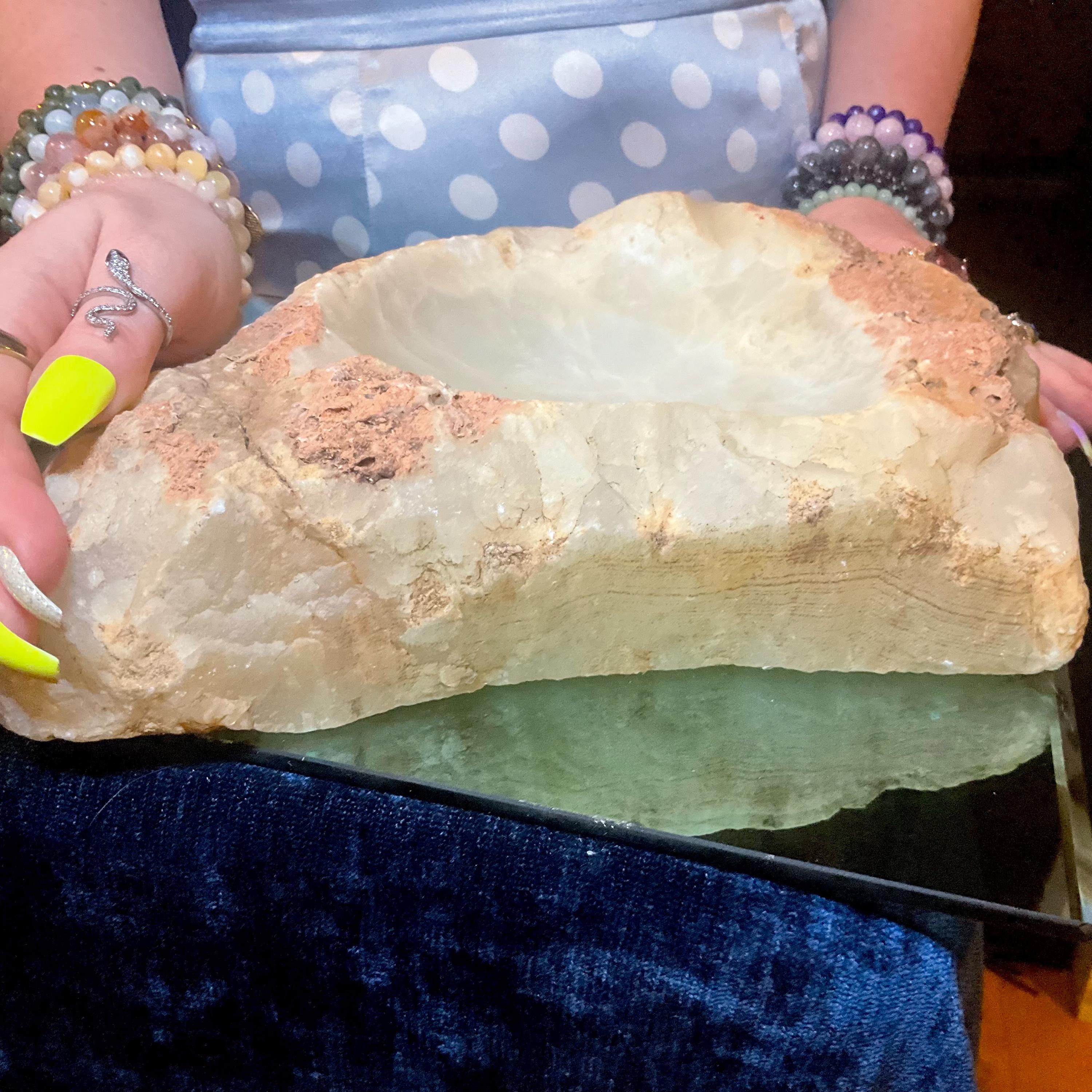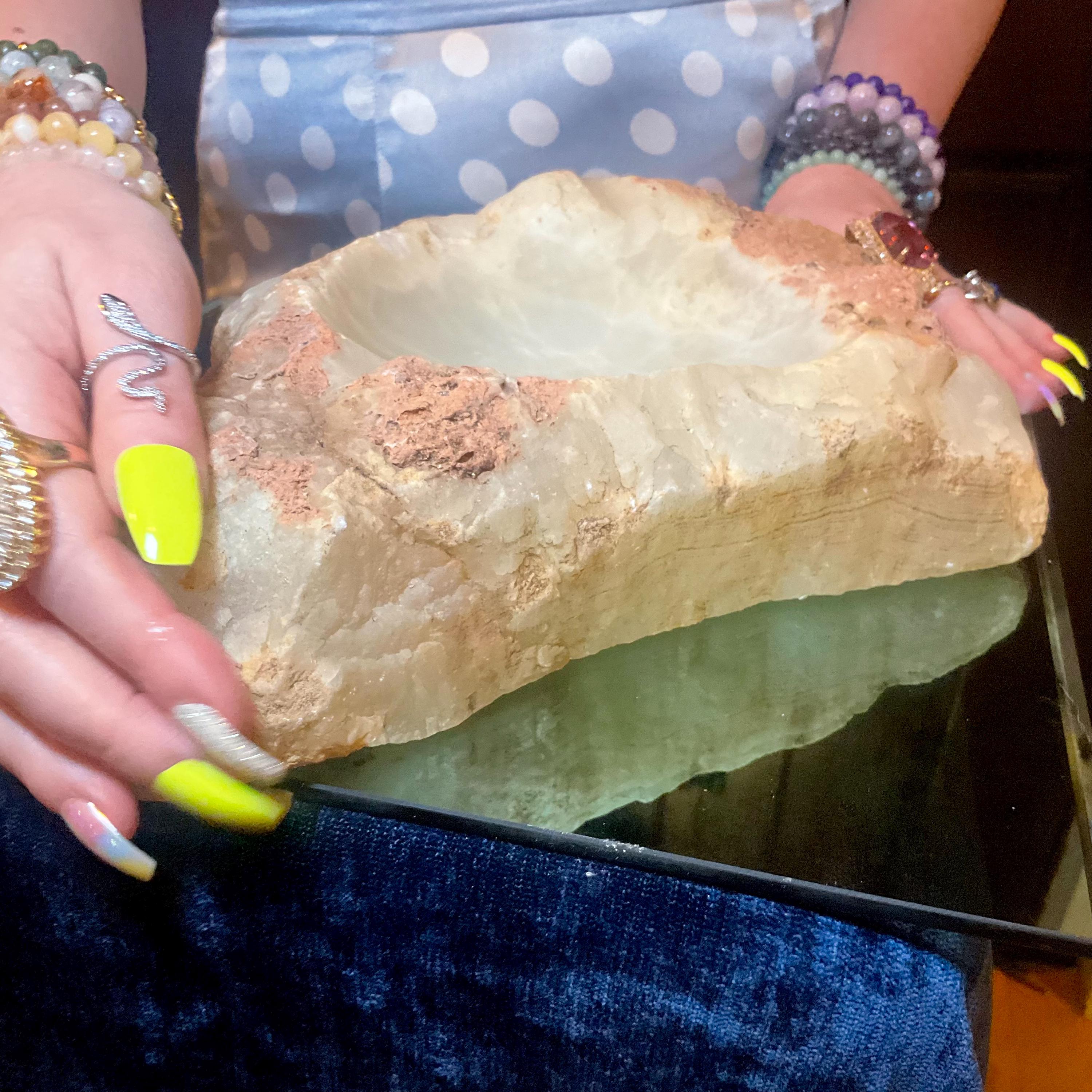 You will love this one-of-a-kind White Calcite bowl it is a beauty to behold.