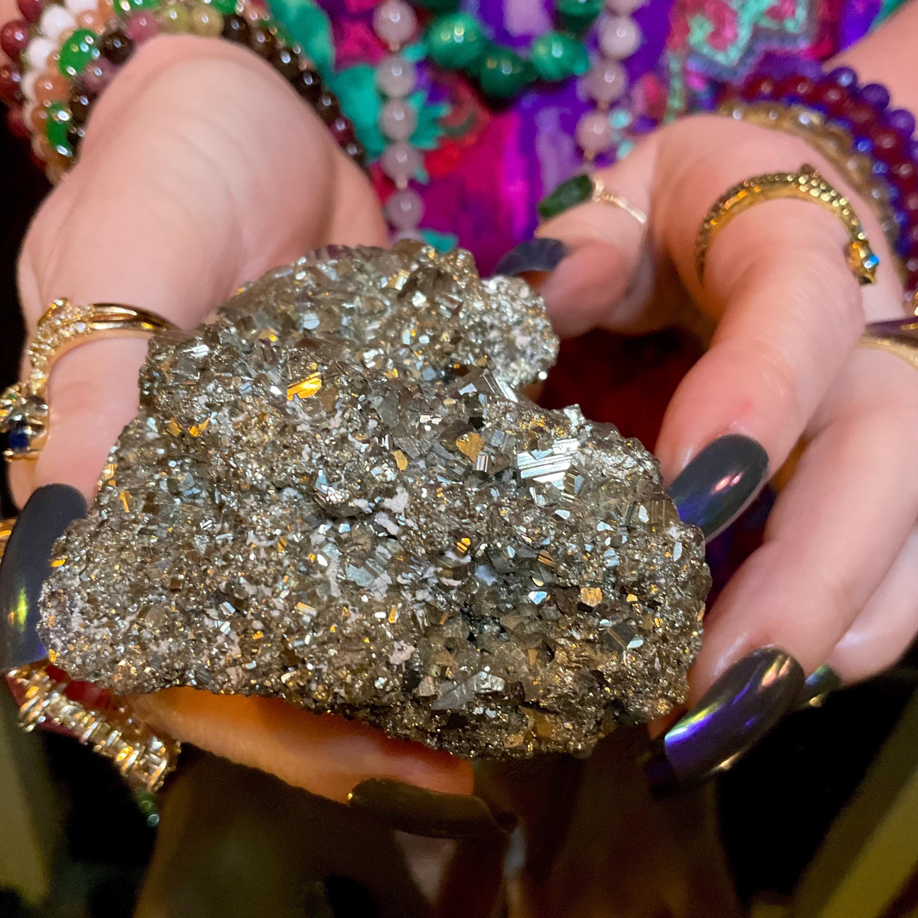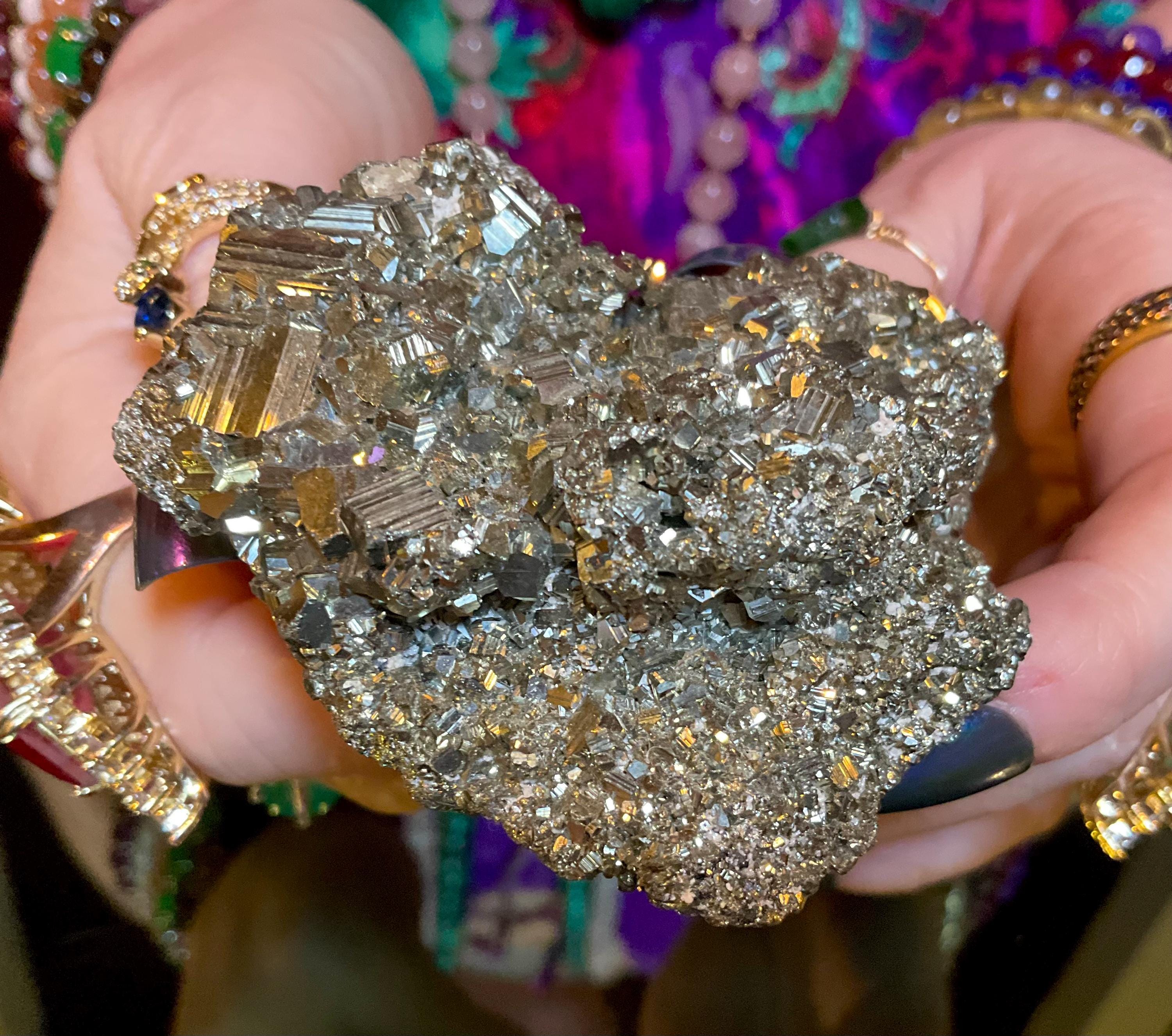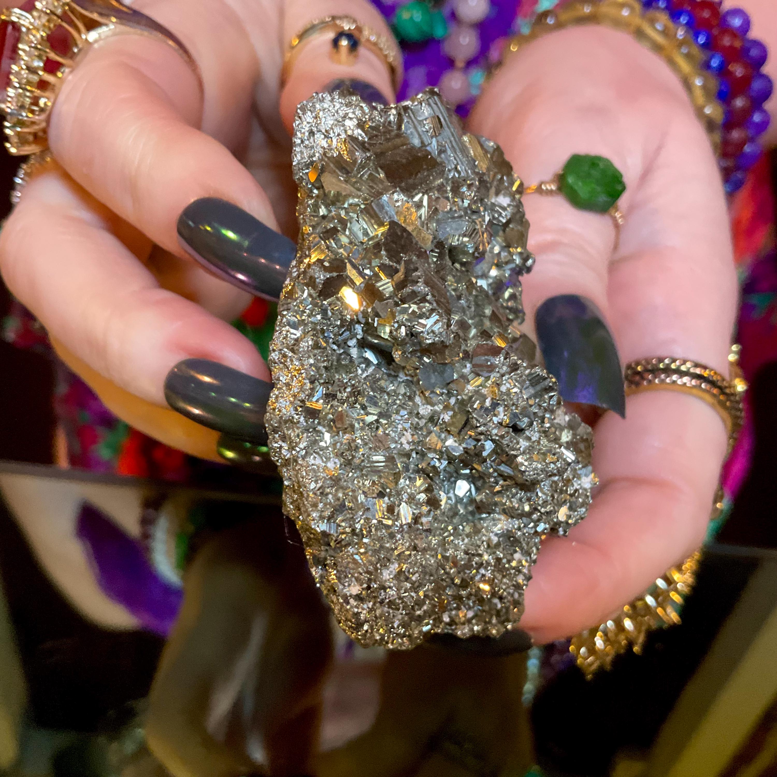 Pyrite Crystal Cluster ~ Large 9 oz. ~ 2 1/2" Long ~ Super Sparkling Golden Specimen ~ Meditation Stone, Altar Feng Shui