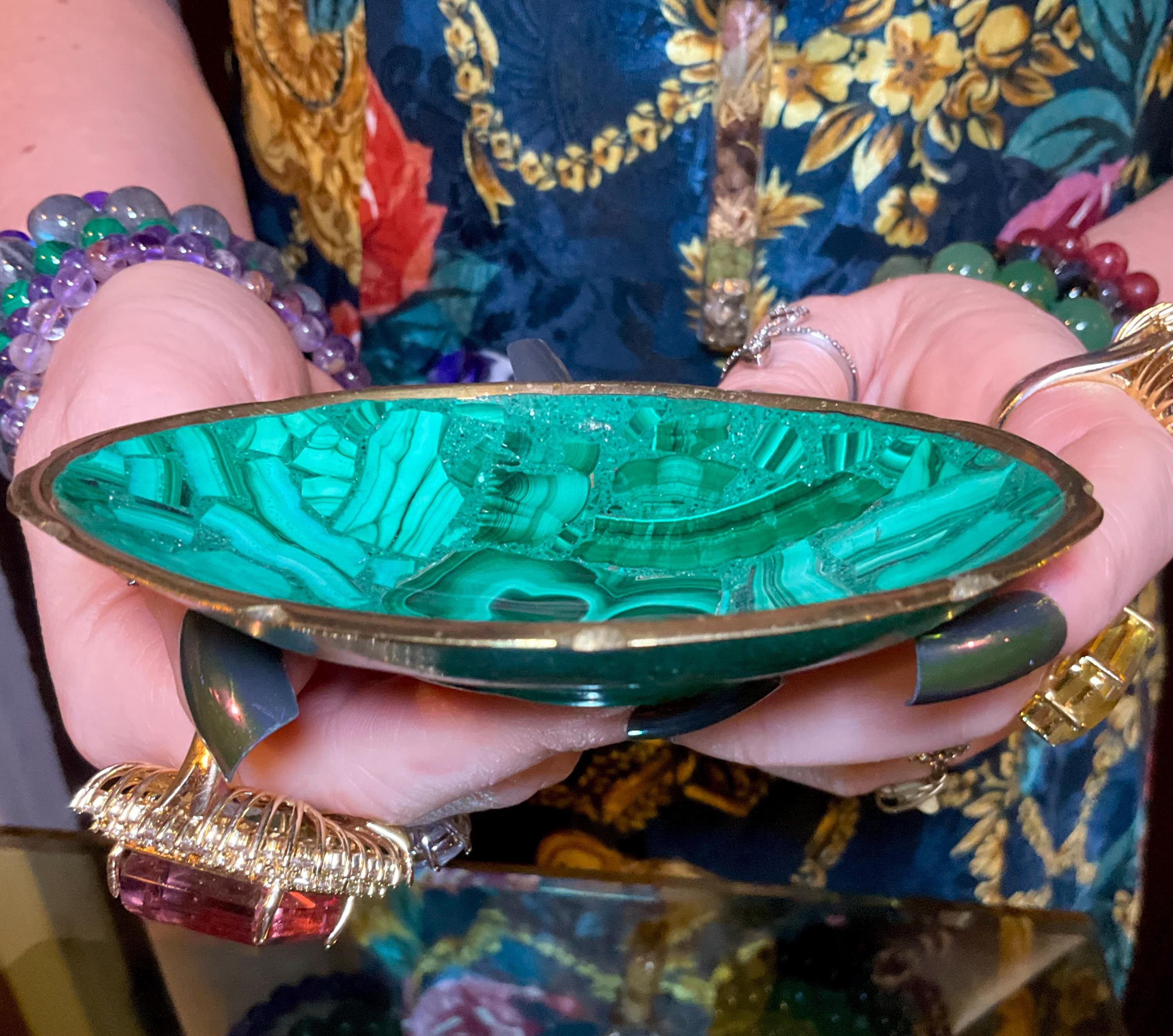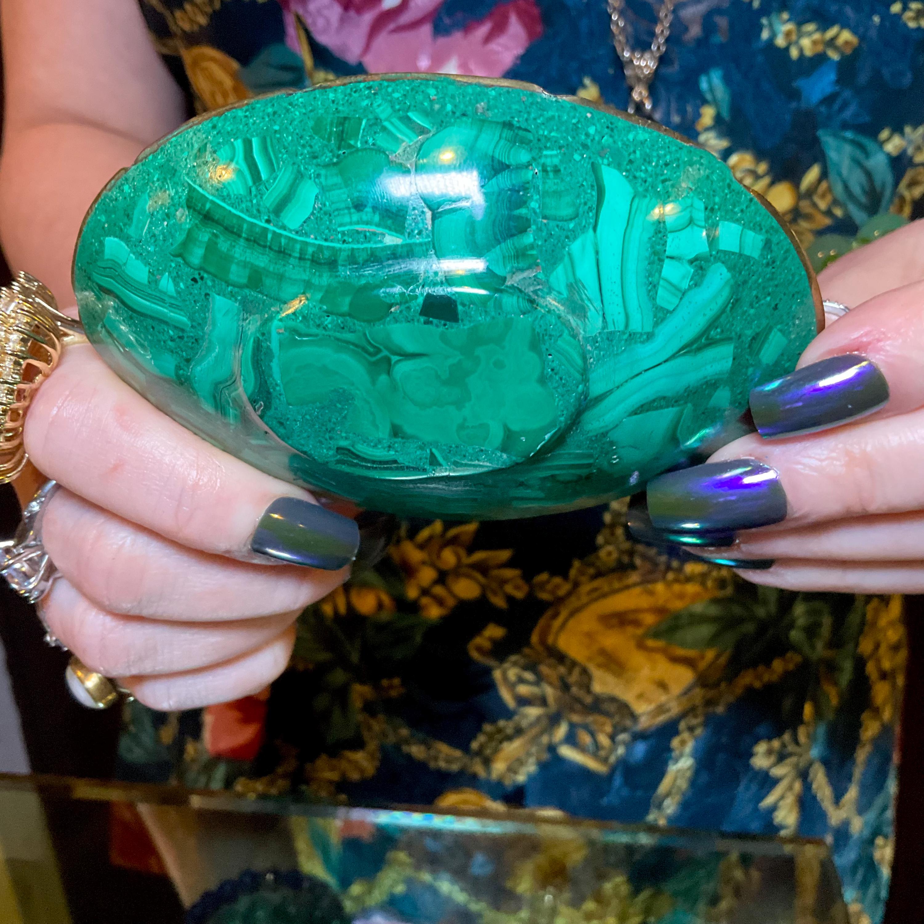 You will love this one-of-a-kind Malachite bowl; it is a beauty to behold.