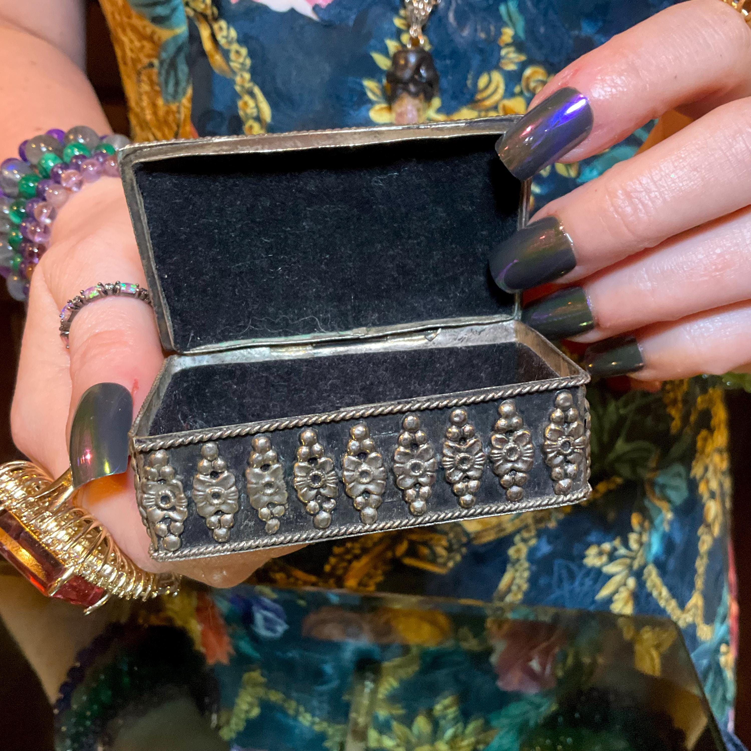 It is a Brass over Moroccan silver vintage jewelry box making it a one-of-a-kind work of art WOW!! this was meant for a goddess.