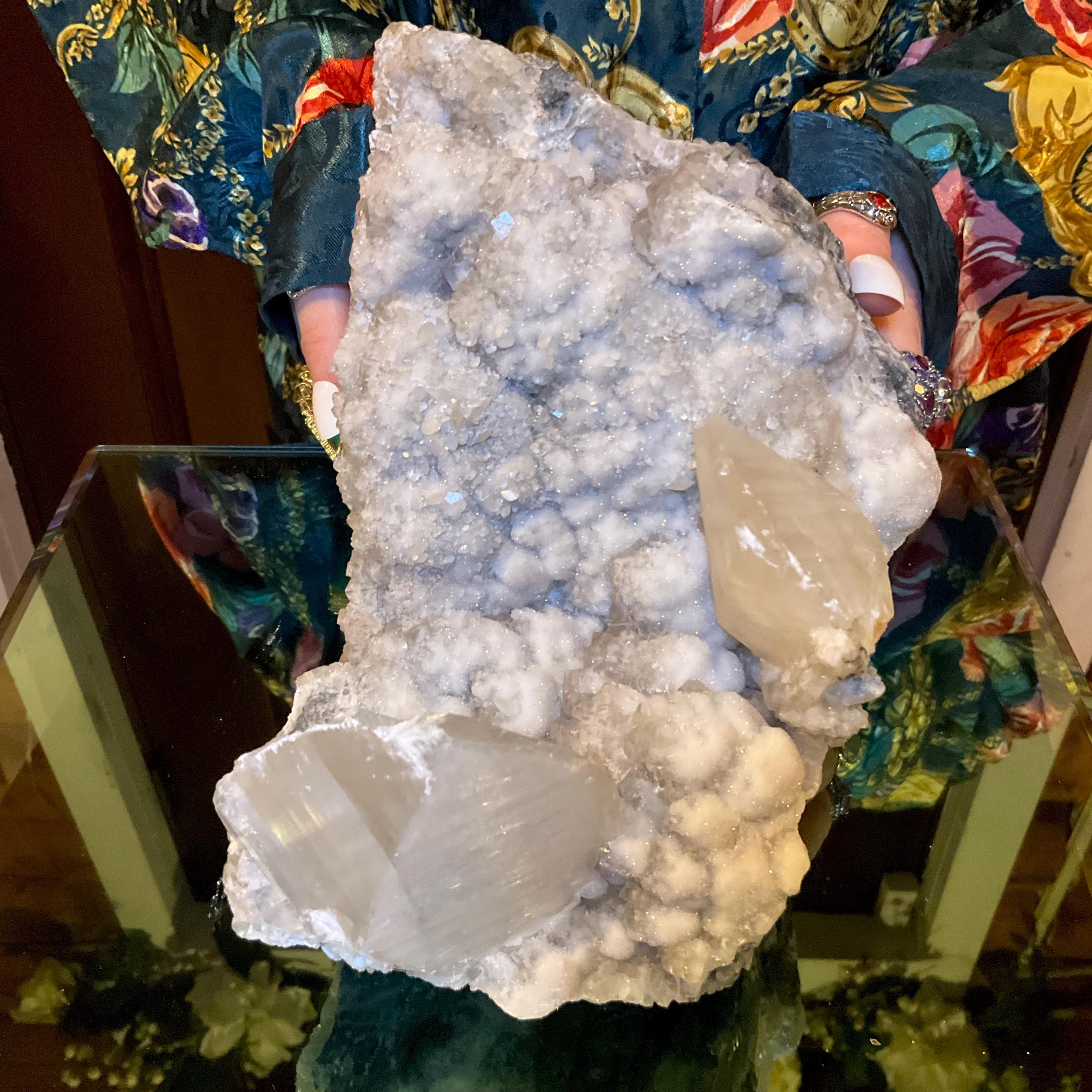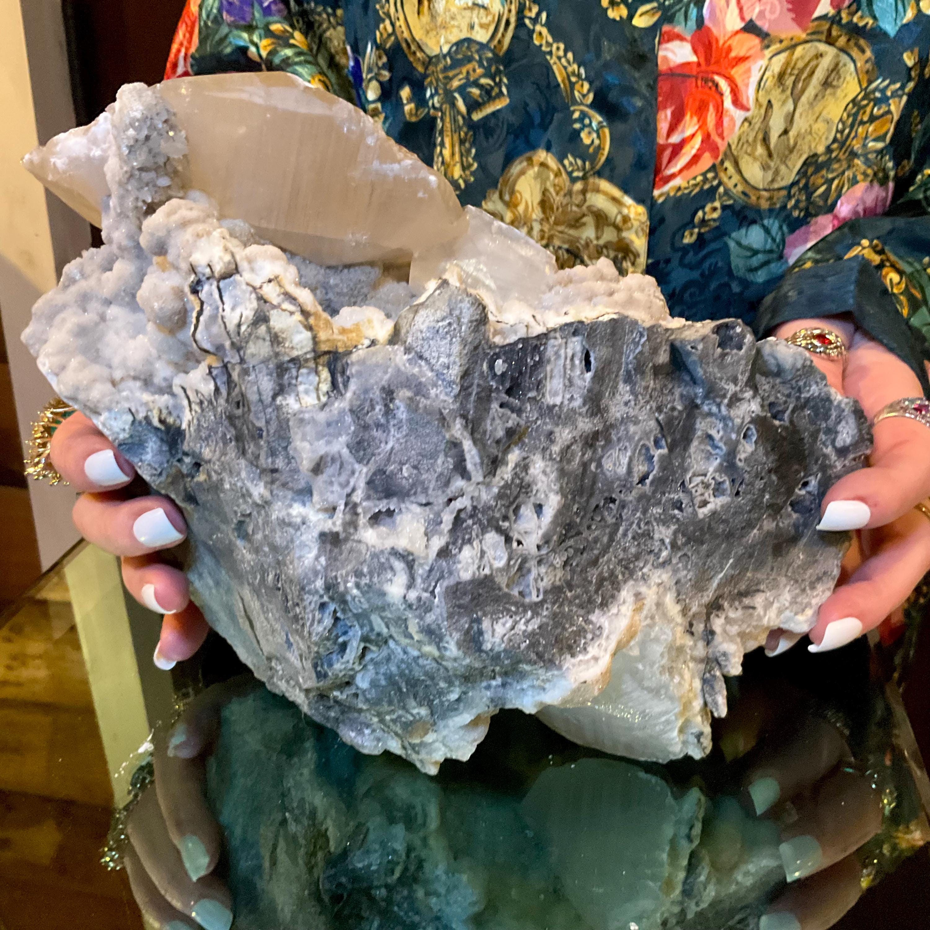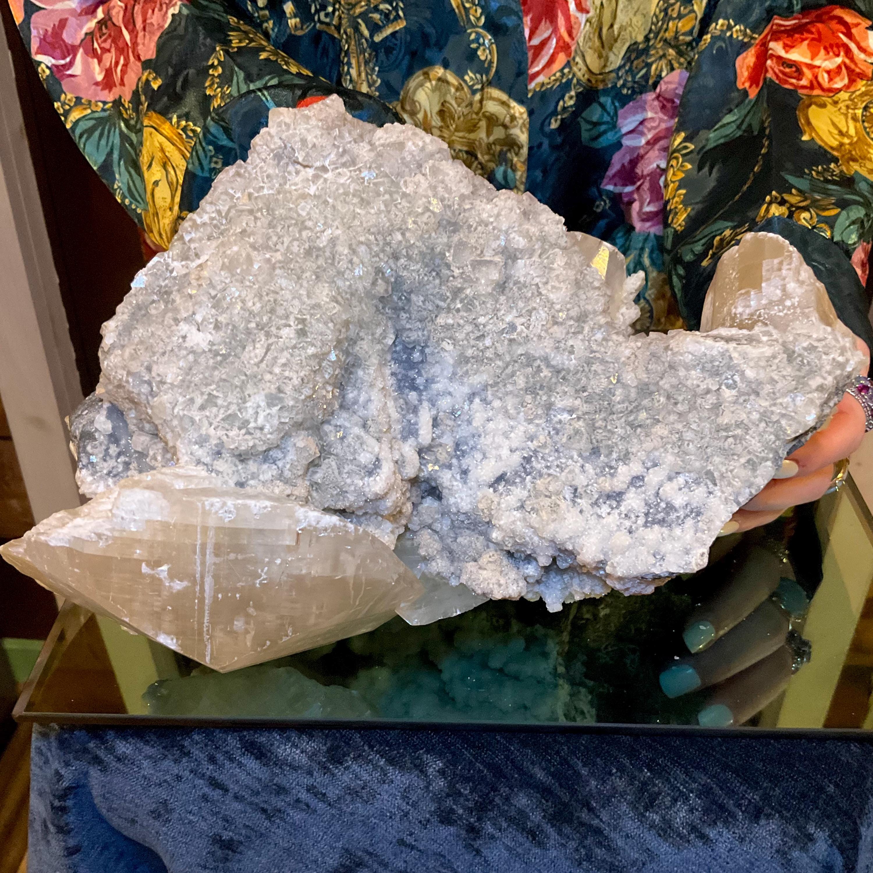 Clear Calcite Crystal Cluster ~ Large 11 lb. 12 oz ~ 8" Long ~ Sparkling Fluorite & Quartz Matrix ~ Stunning Display Crystal ~