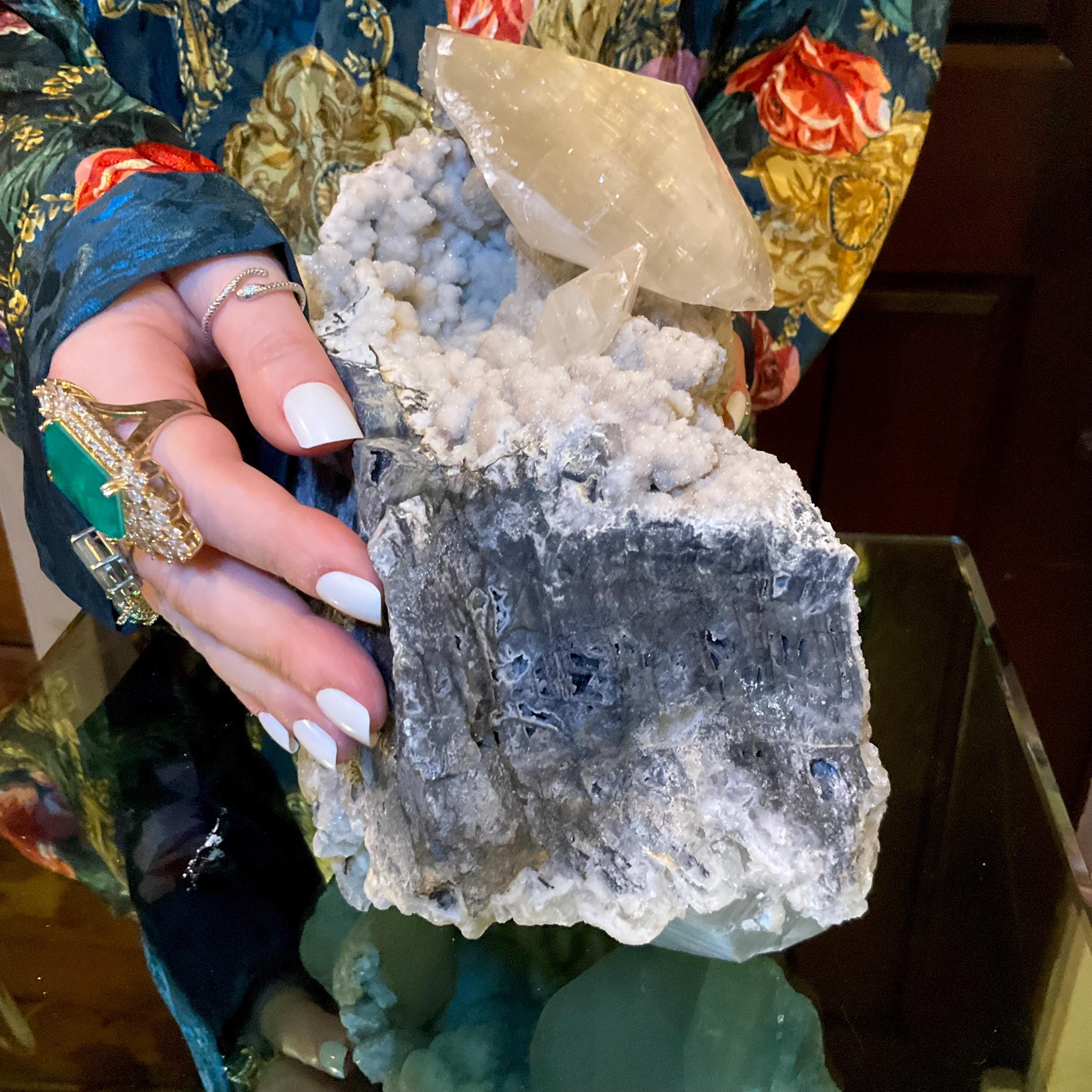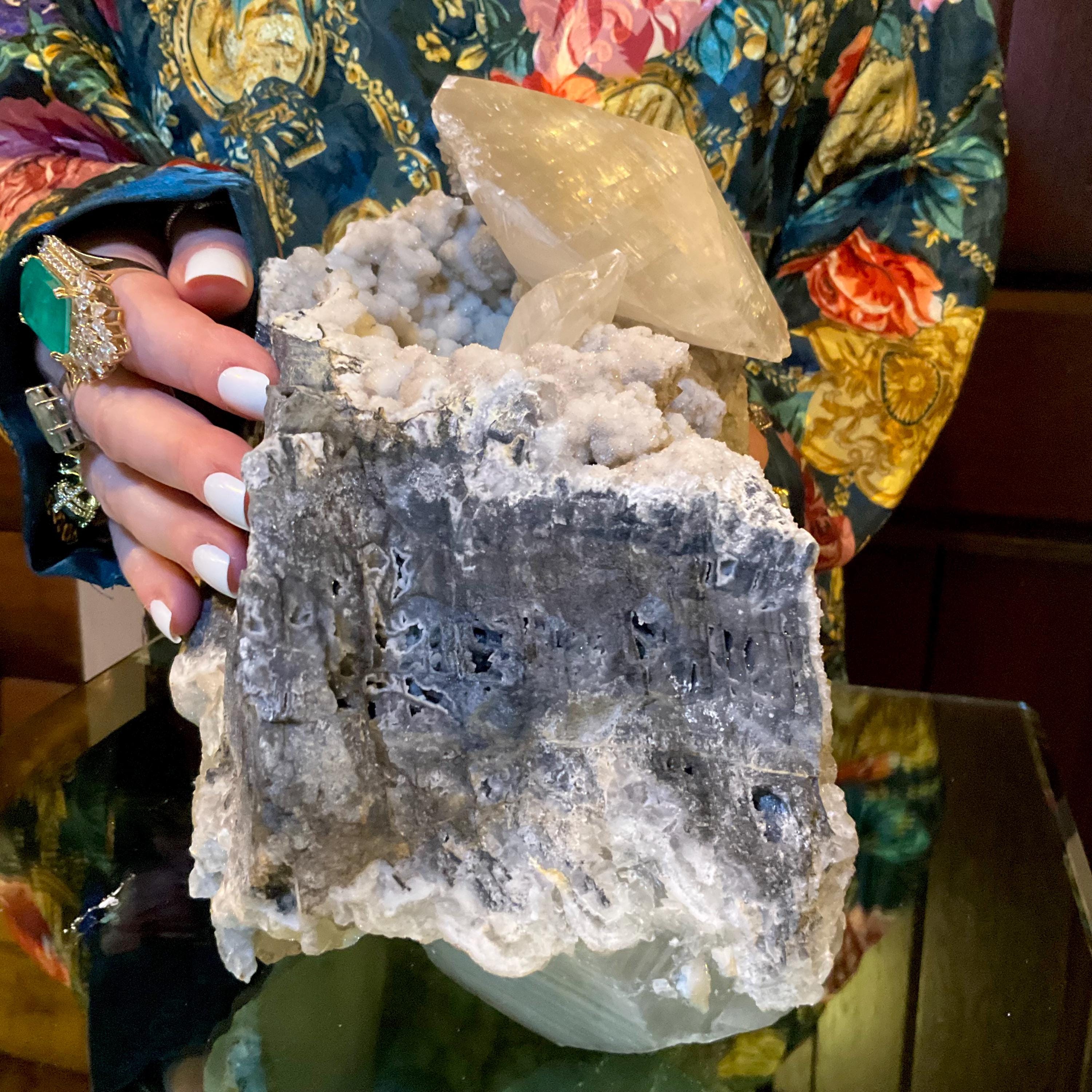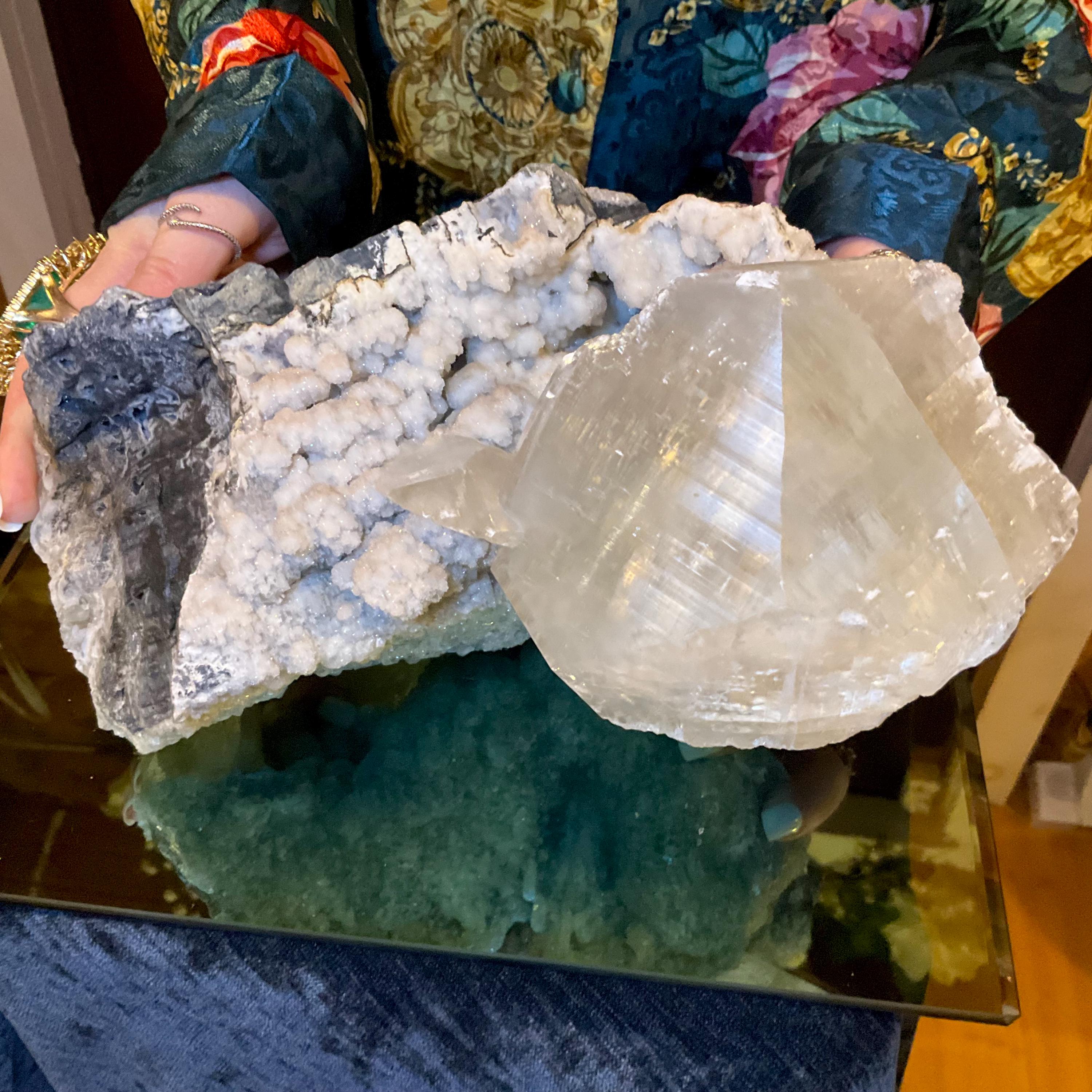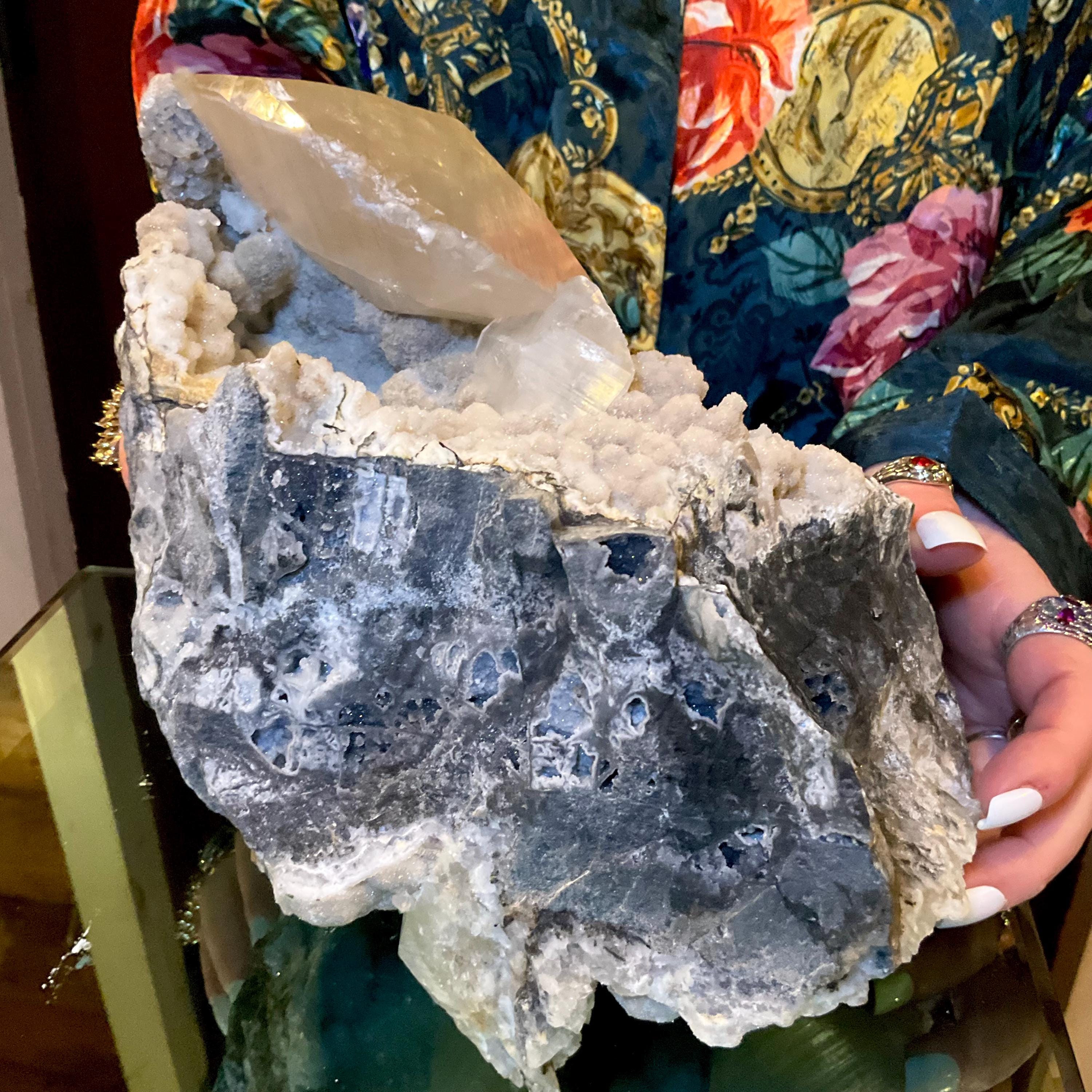 Clear Calcite Crystal Cluster ~ Large 11 lb. 12 oz ~ 8" Long ~ Sparkling Fluorite & Quartz Matrix ~ Stunning Display Crystal ~