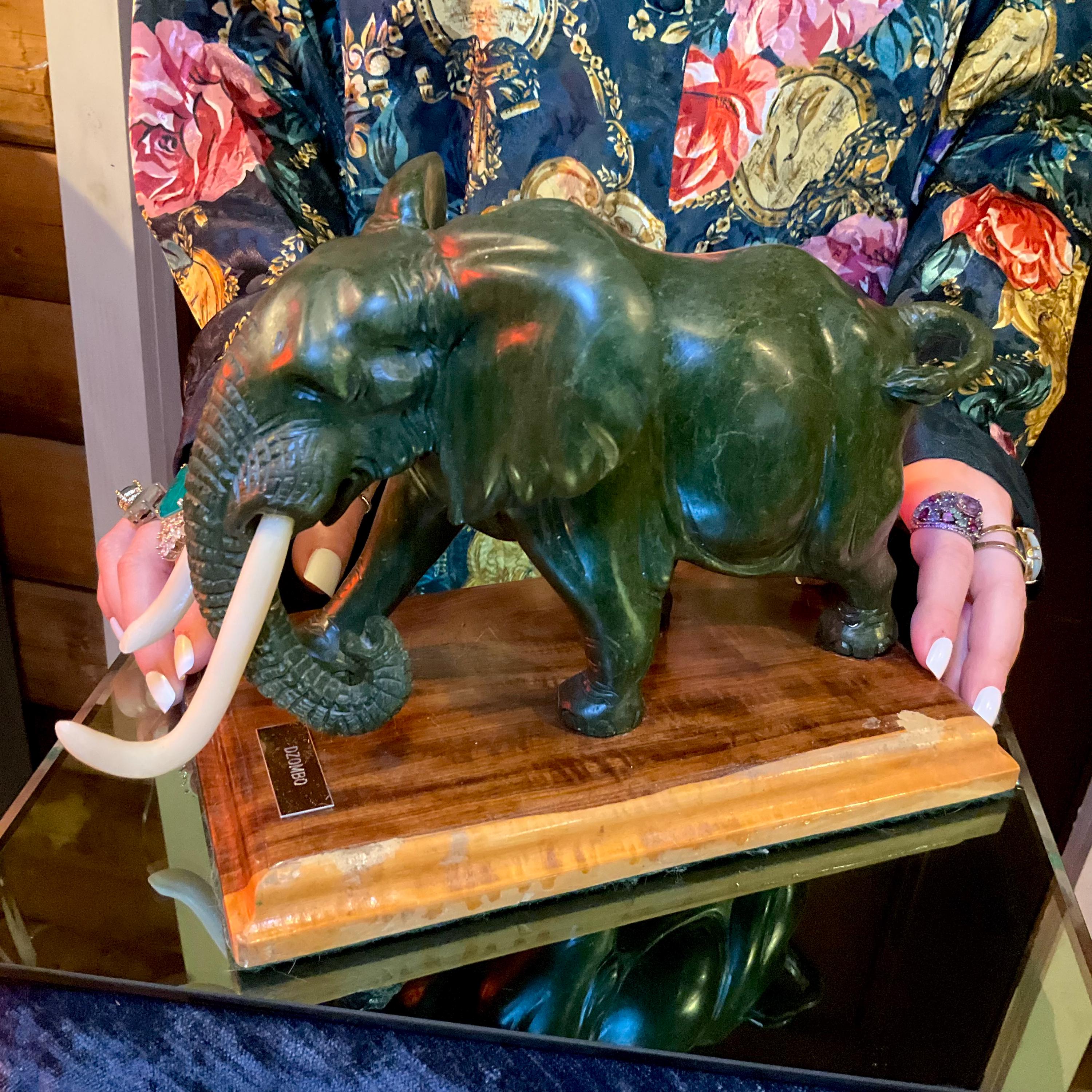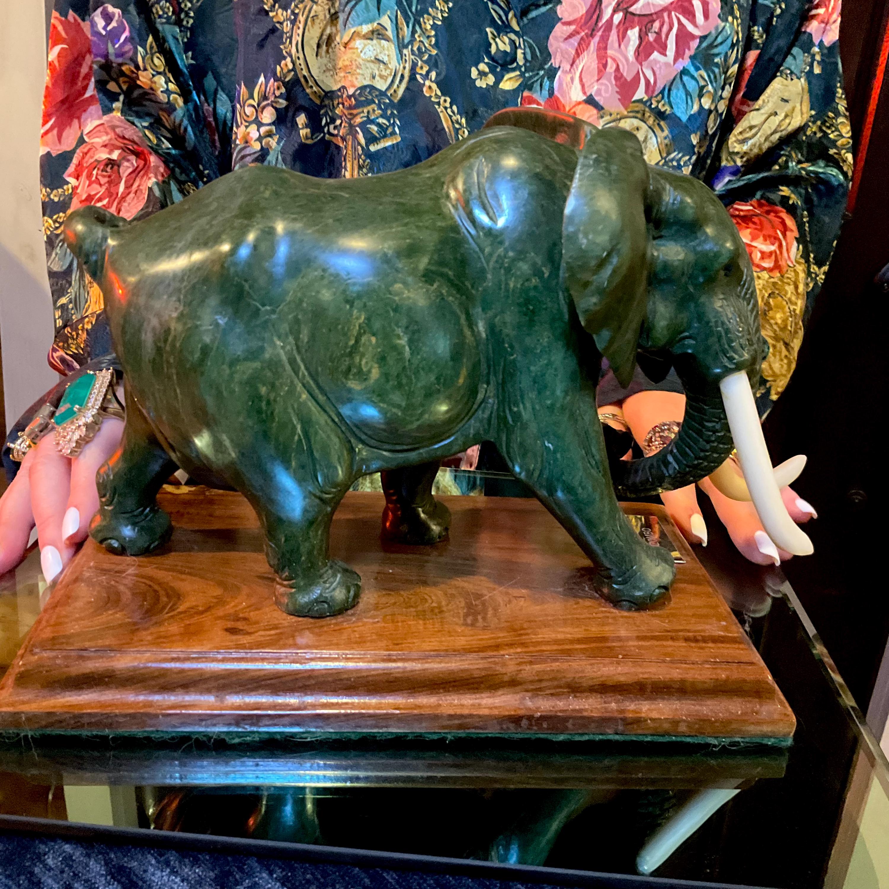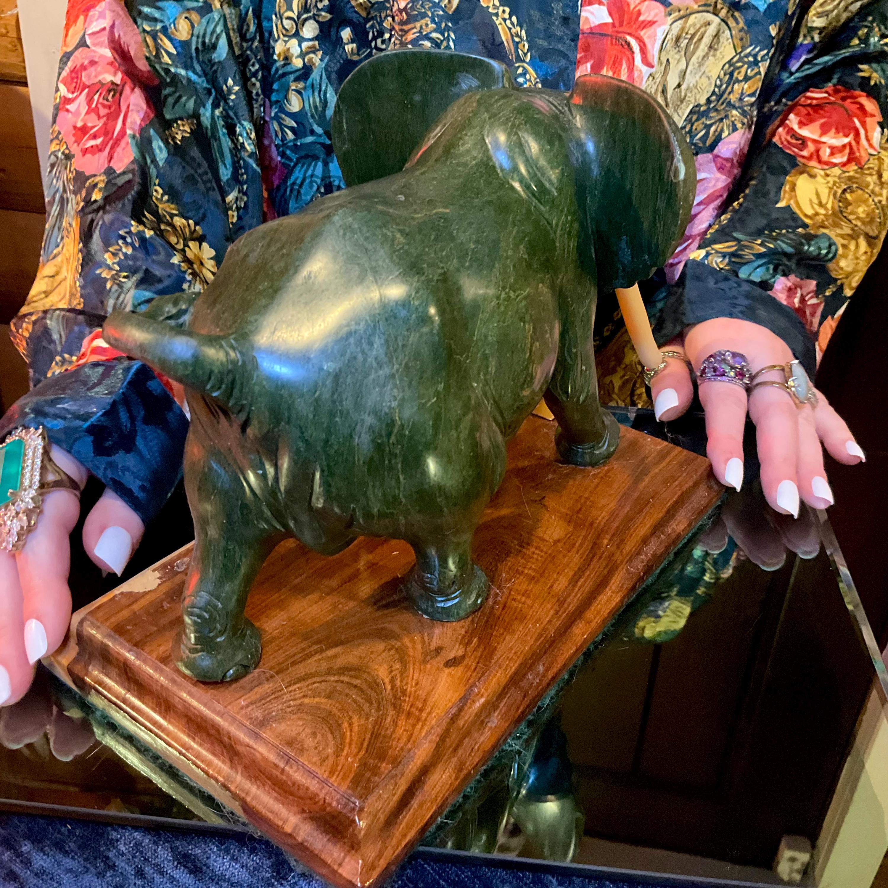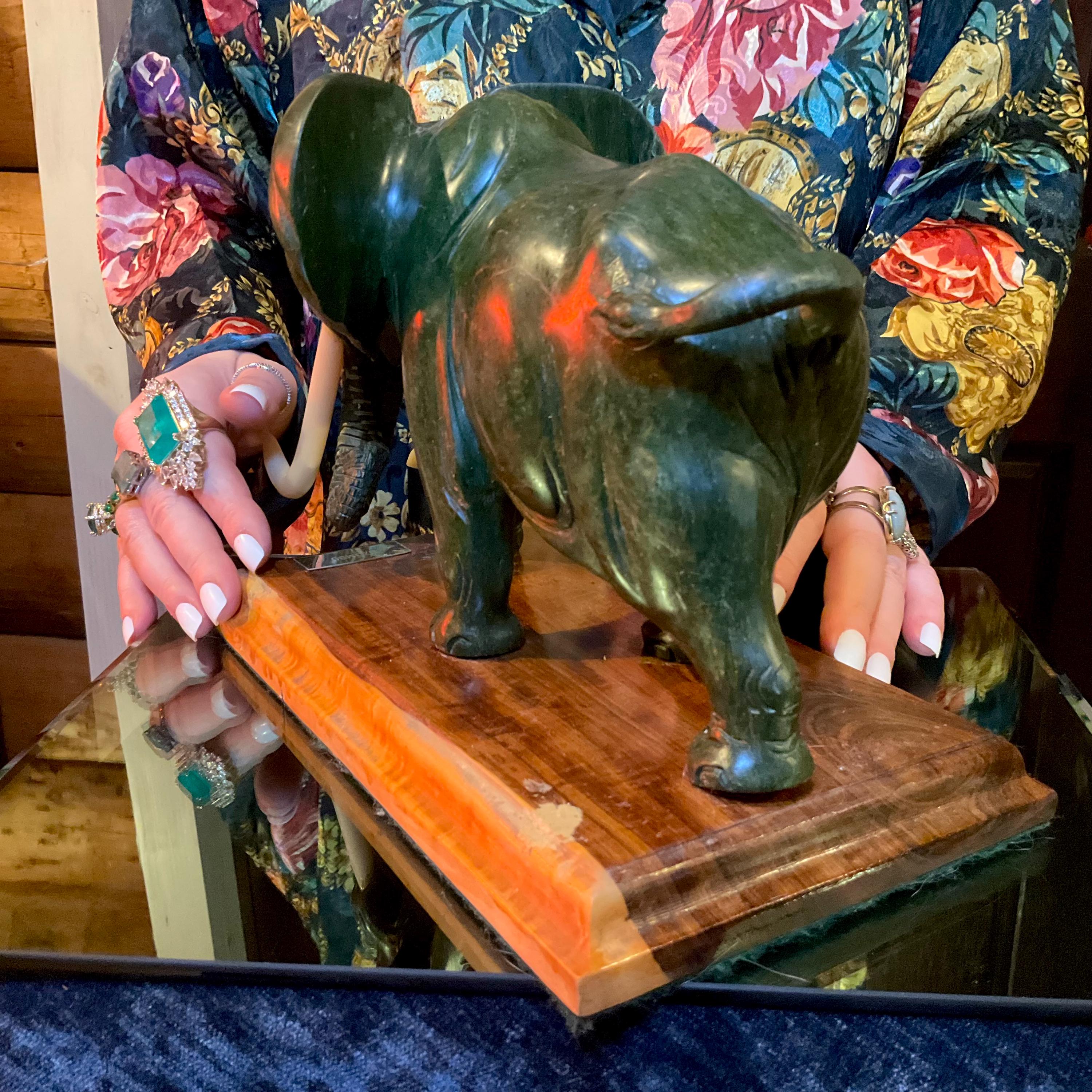 What makes this Verdite Elephant so special is age, patina, and its vintage deco free form style.