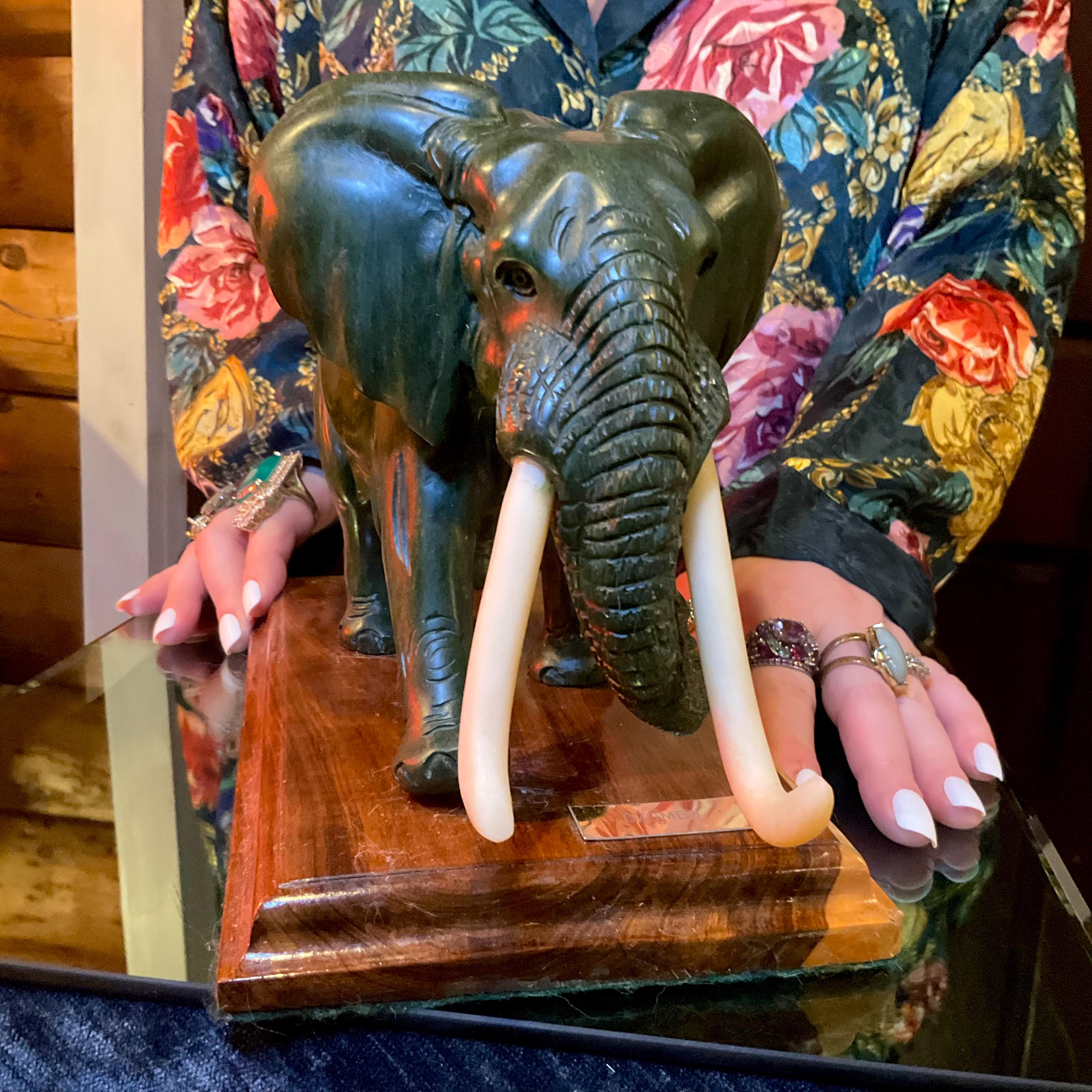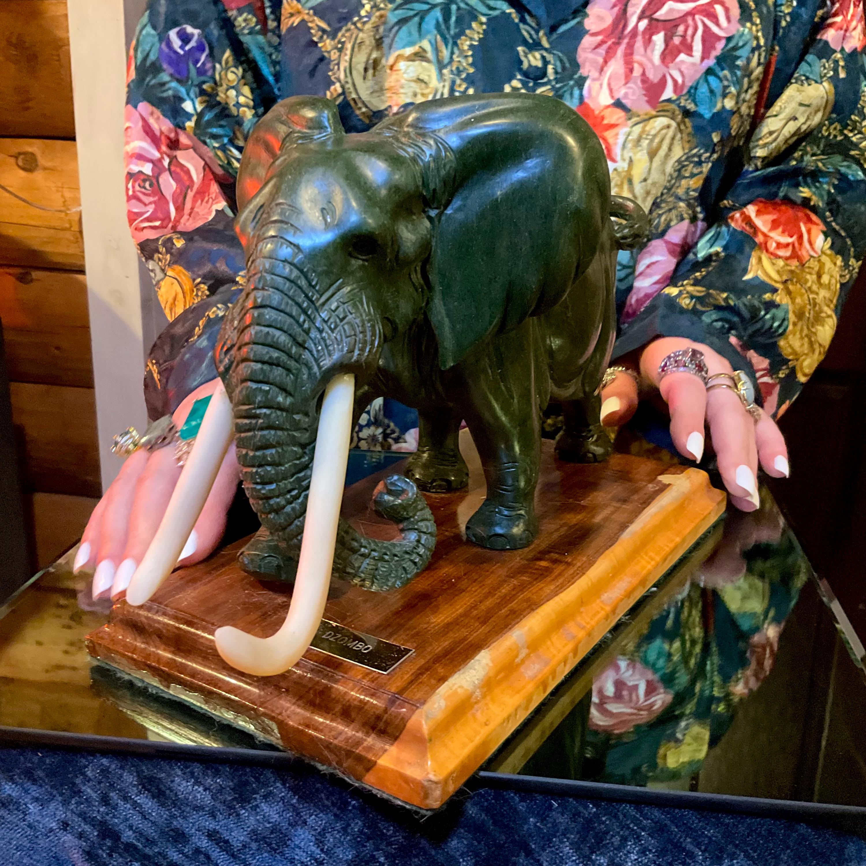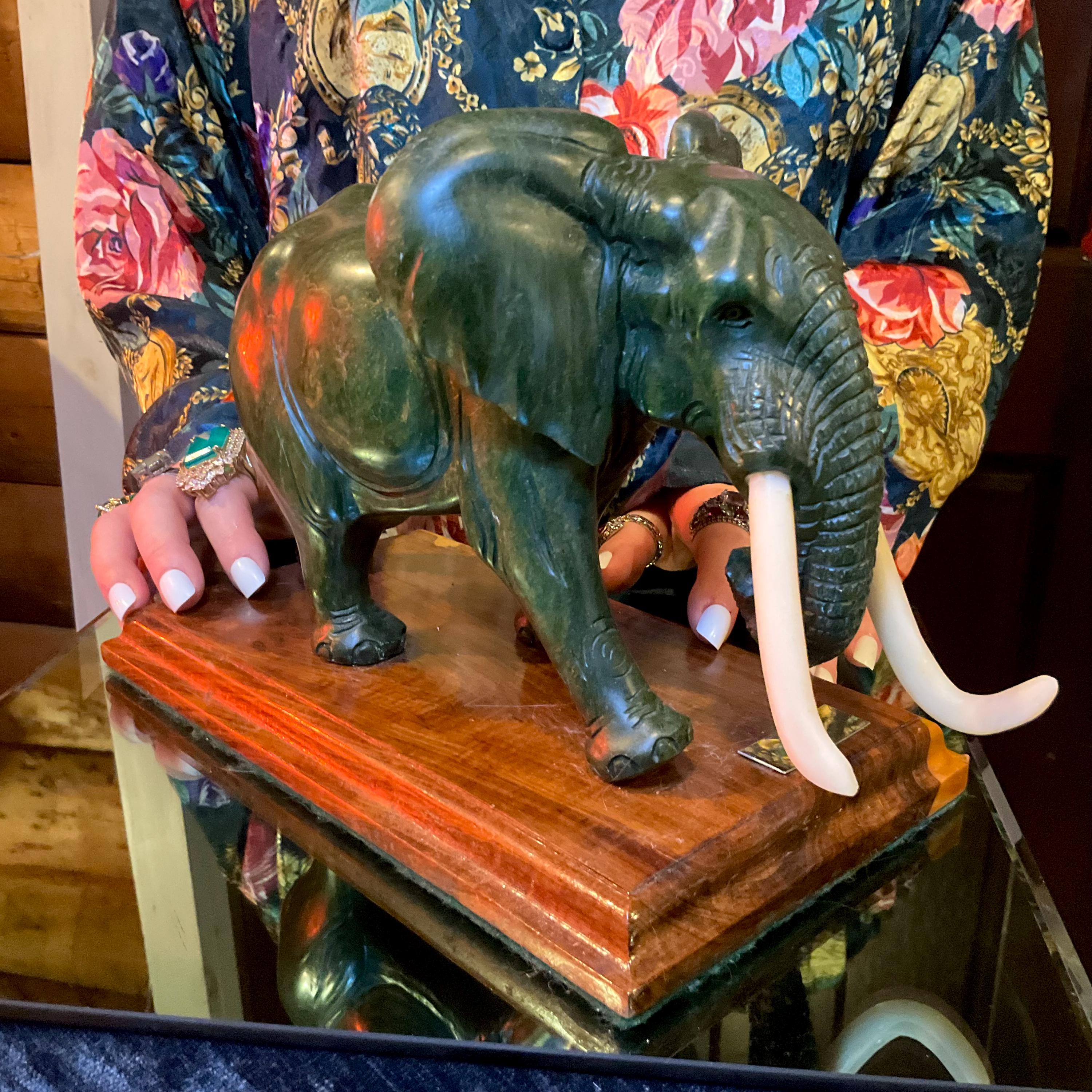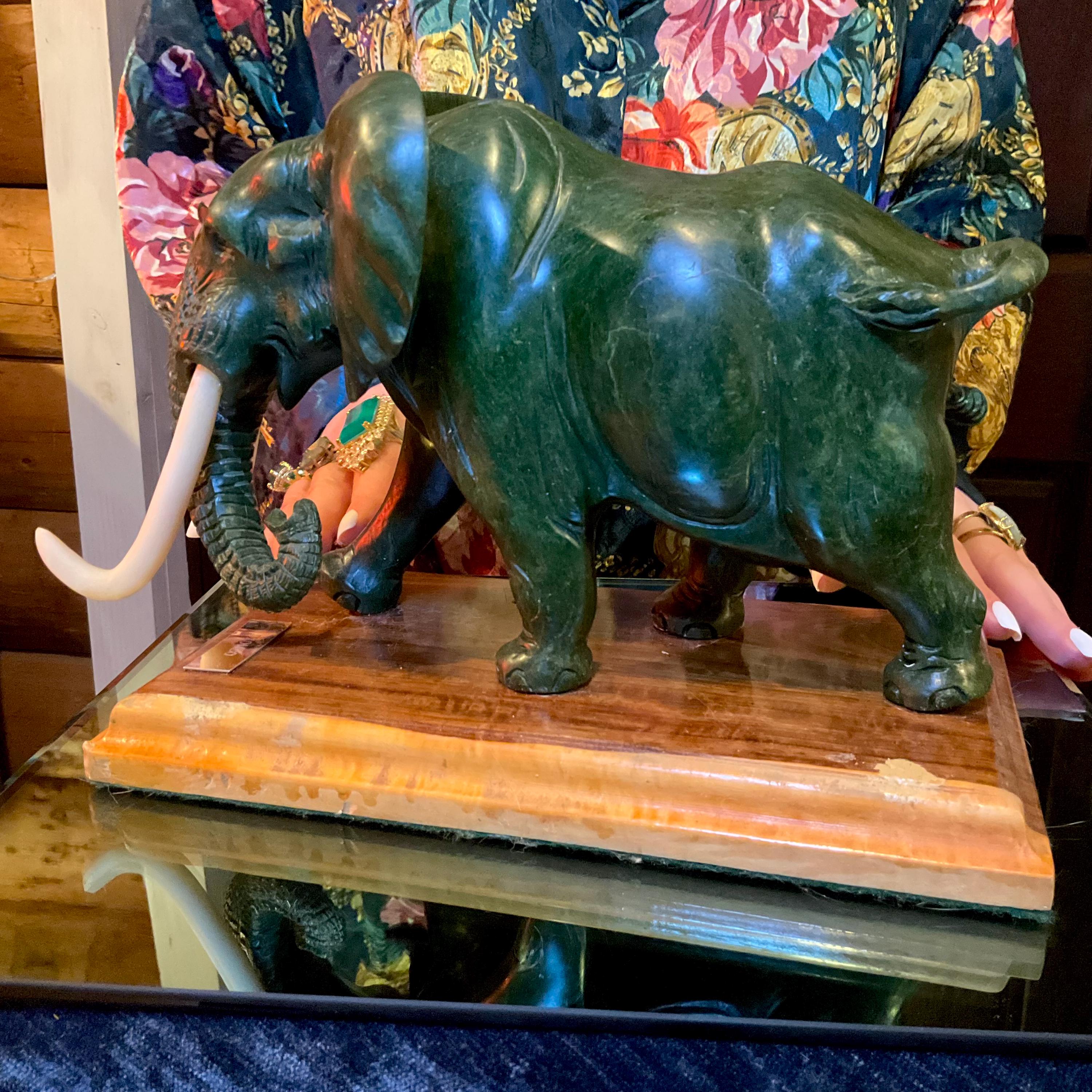 What makes this Verdite Elephant so special is age, patina, and its vintage deco free form style.
