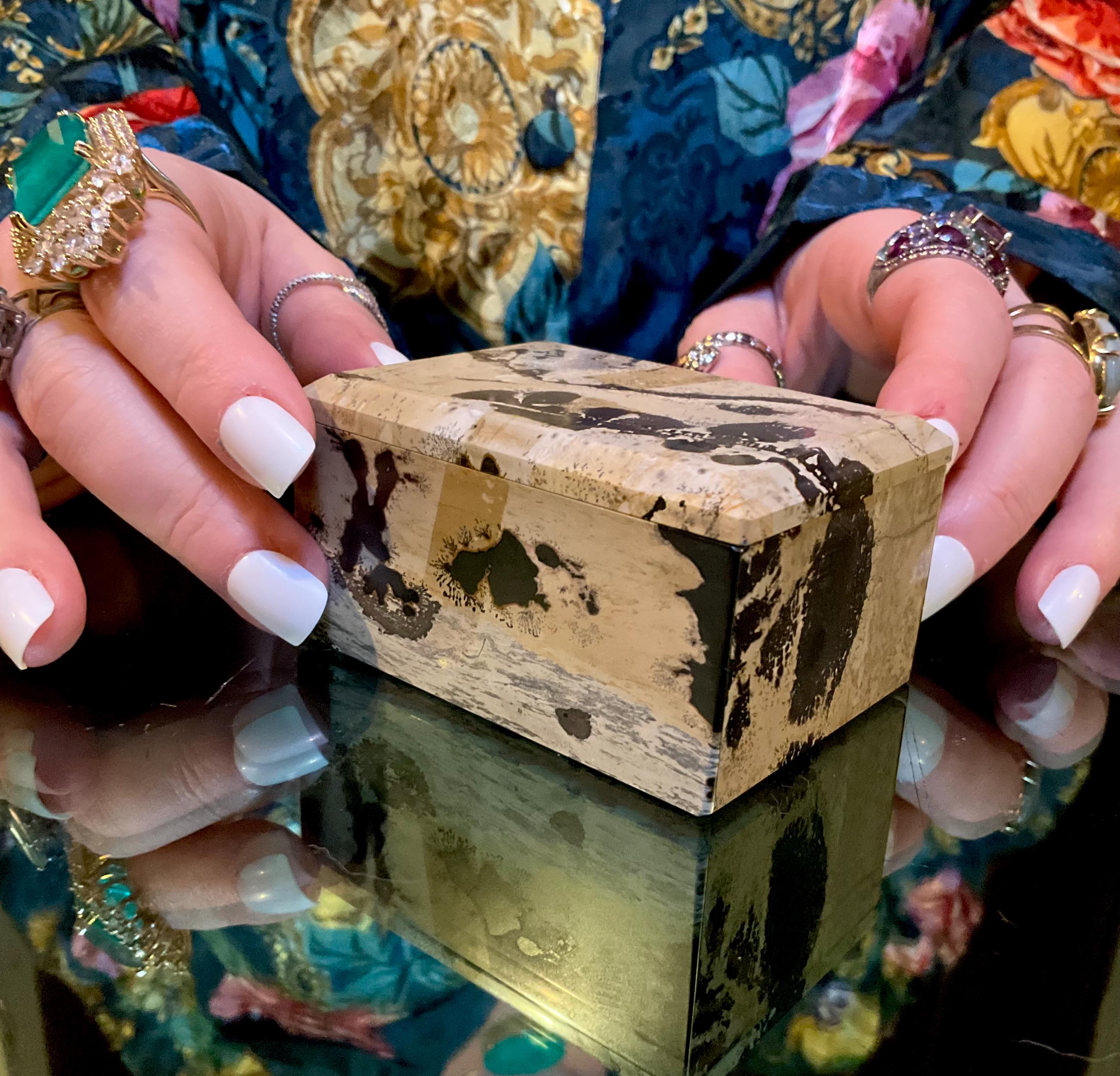 If you love vintage hand carved Vintage Dendritic Jasper, then this beautiful rare one-of-a-kind Jewelry Box is for you.