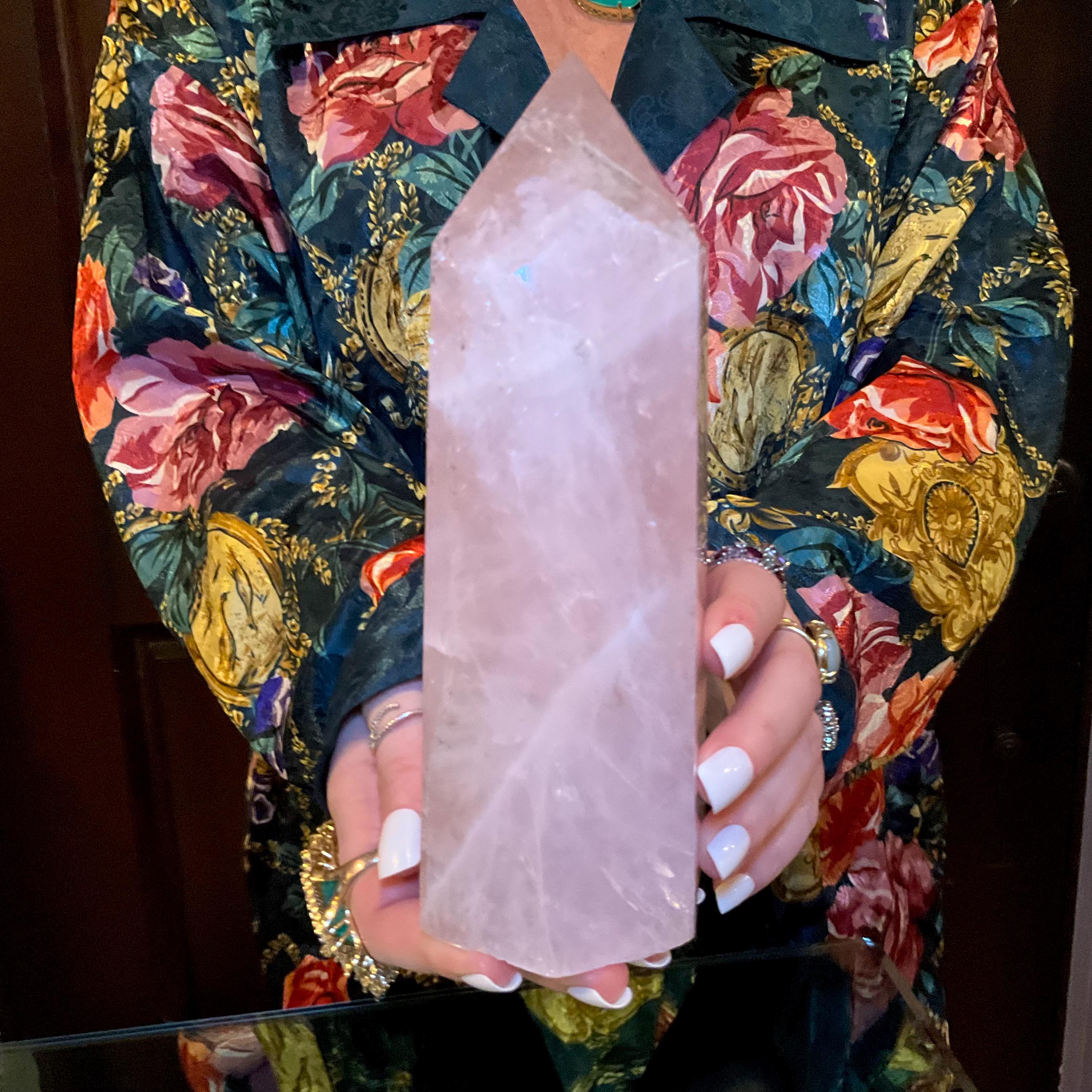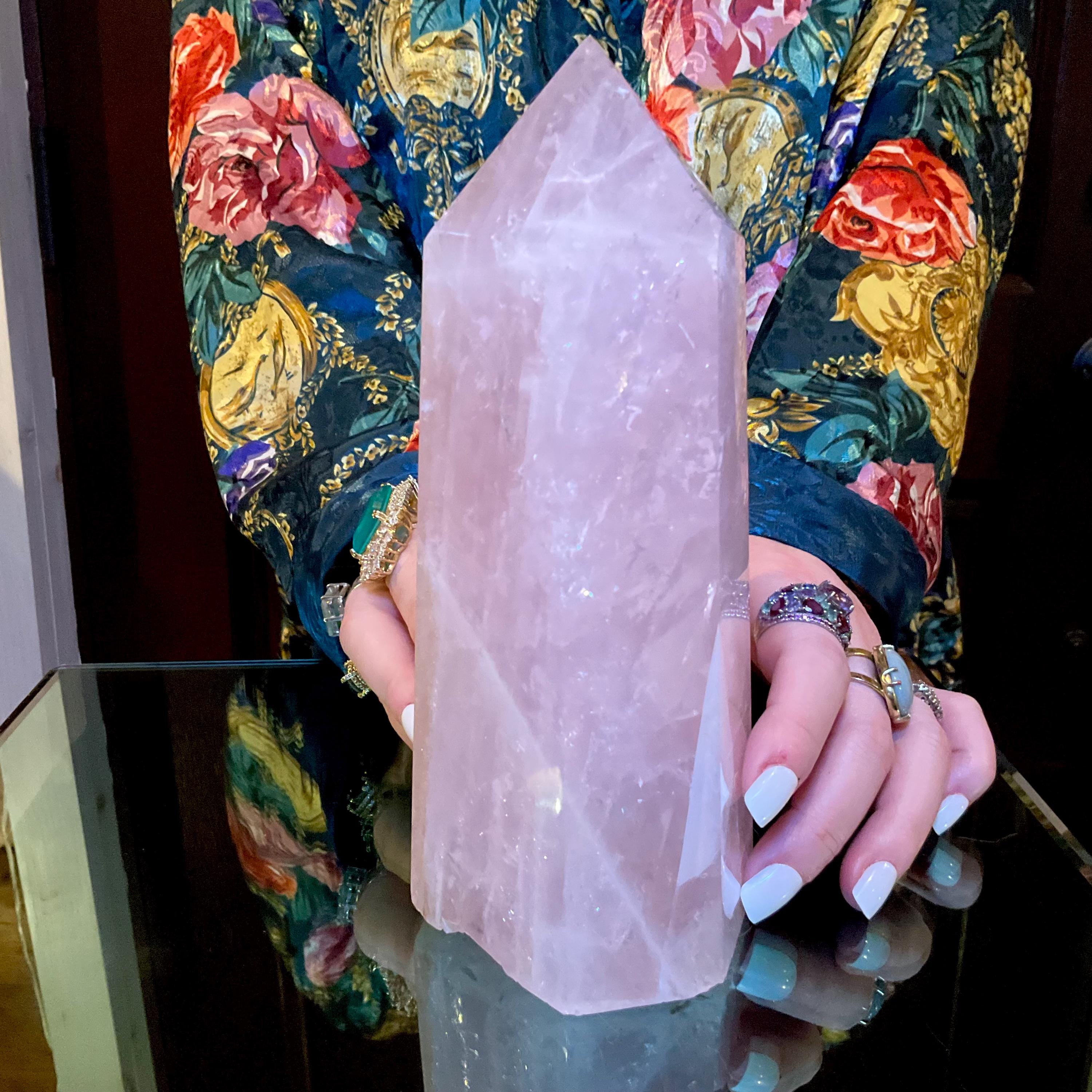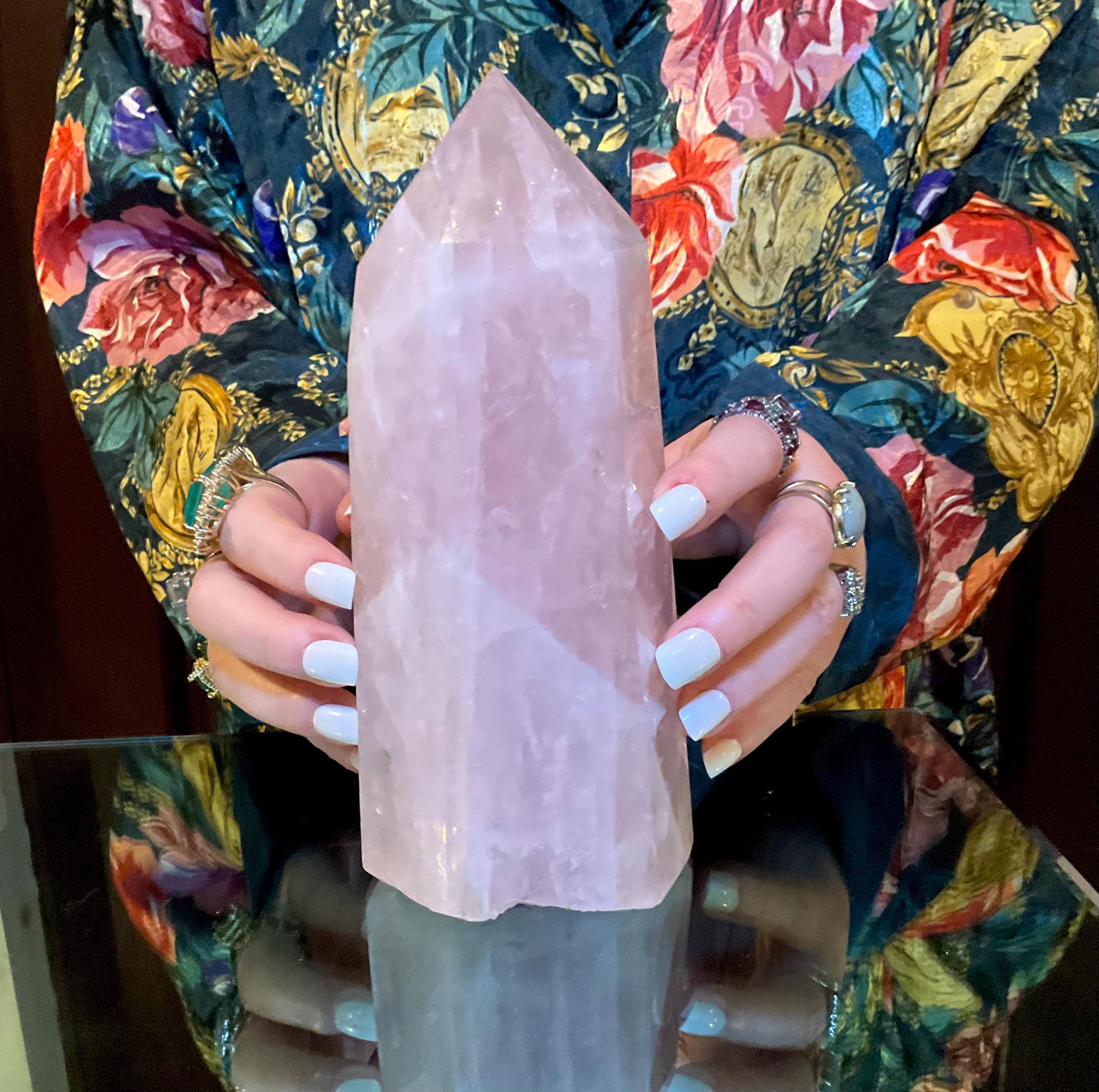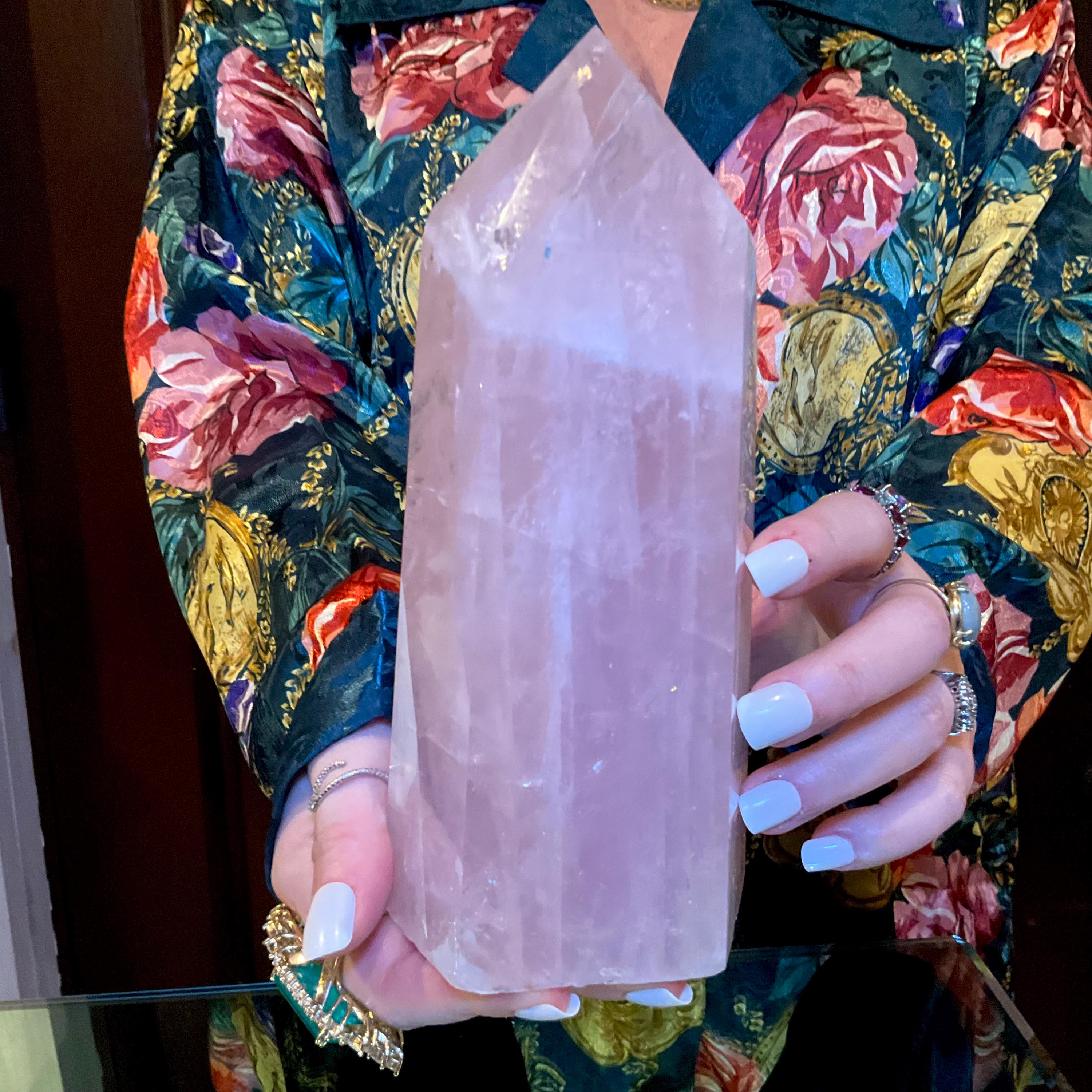 This is such a beautiful specimen of Rose Pink Quartz, polished into a large generator.