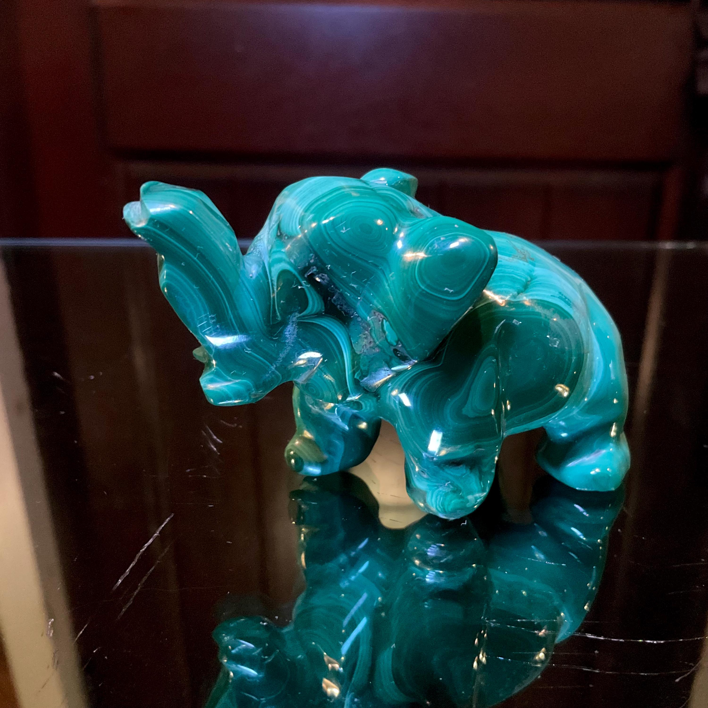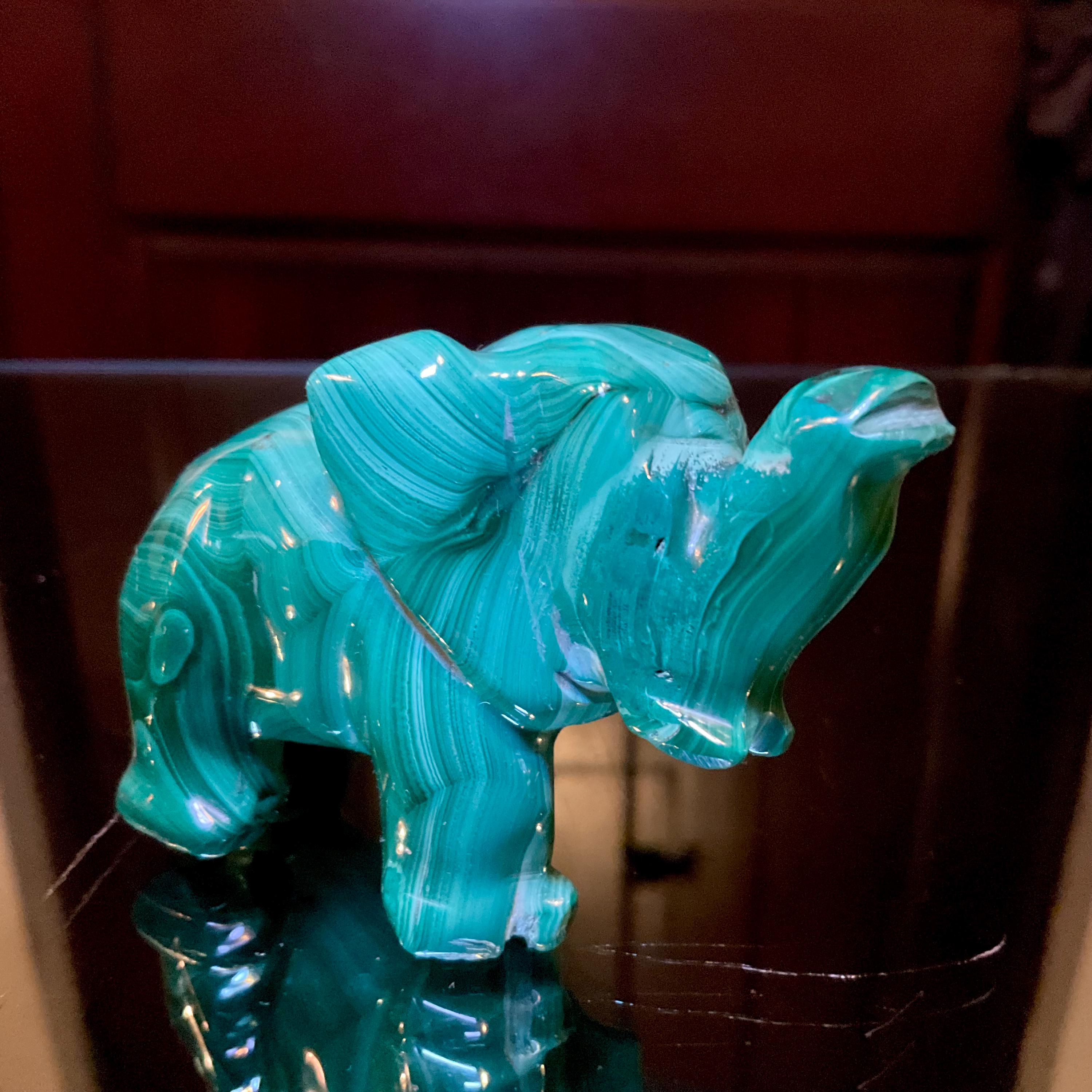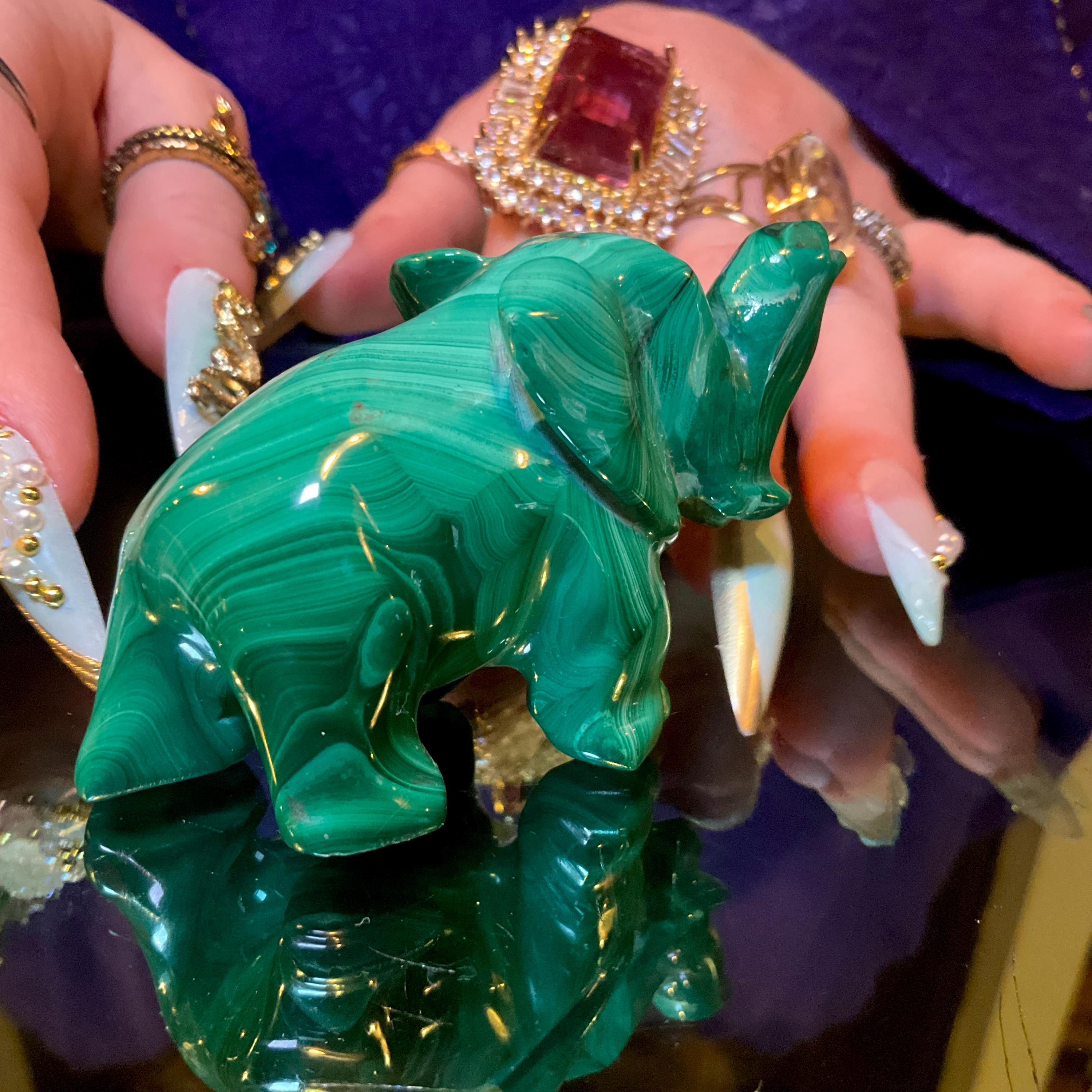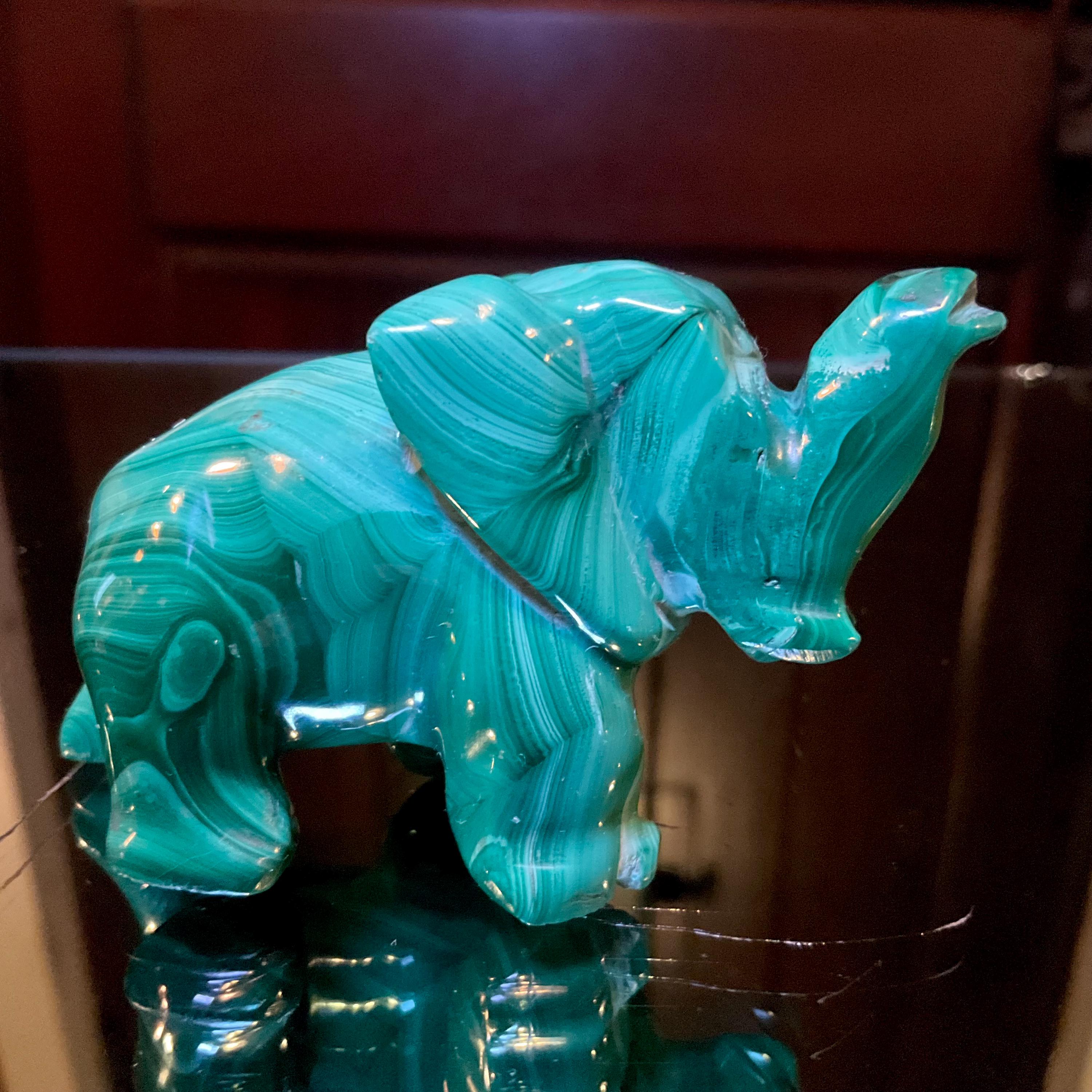 What makes this Malachite Elephant so special is age, patina, and its vintage deco free form style.