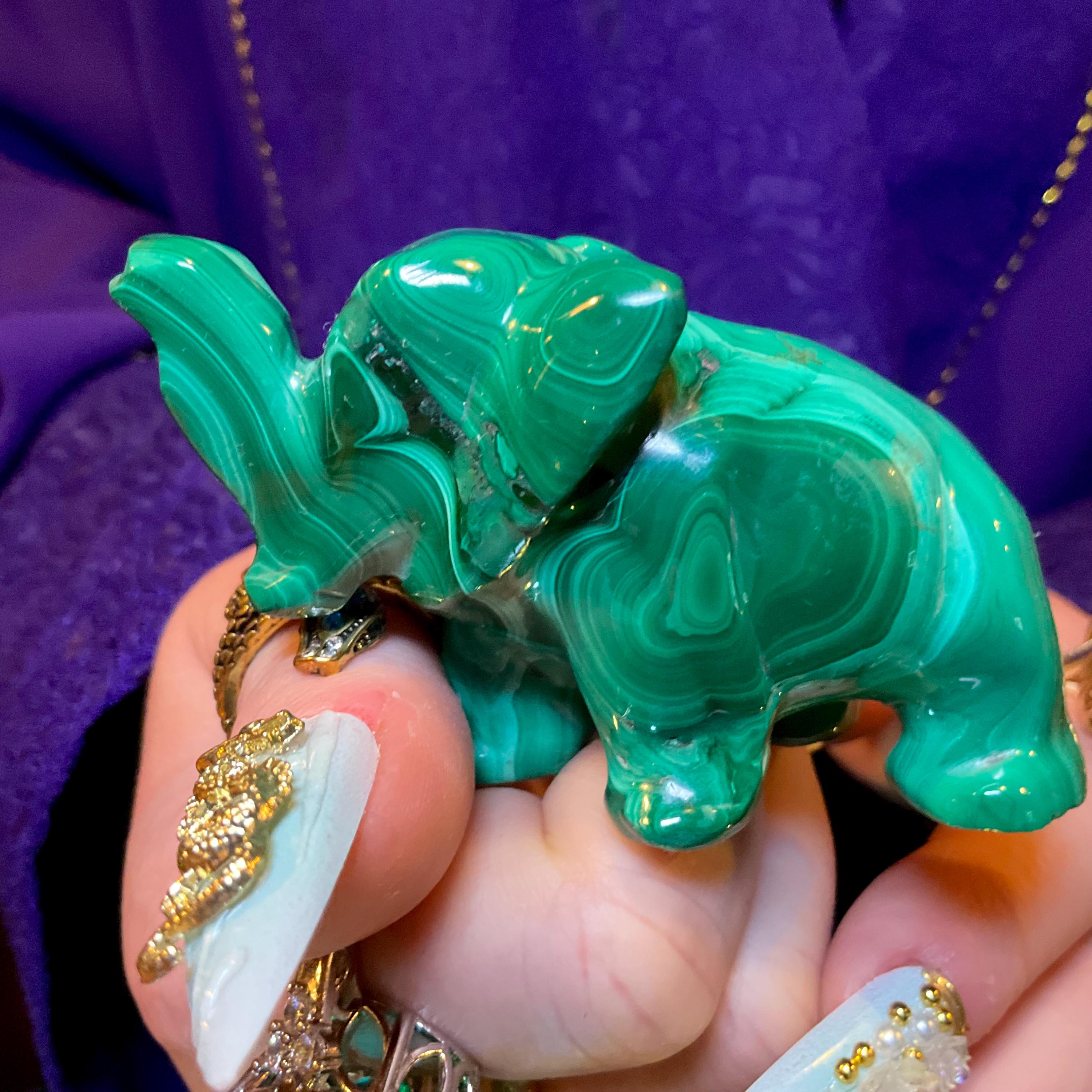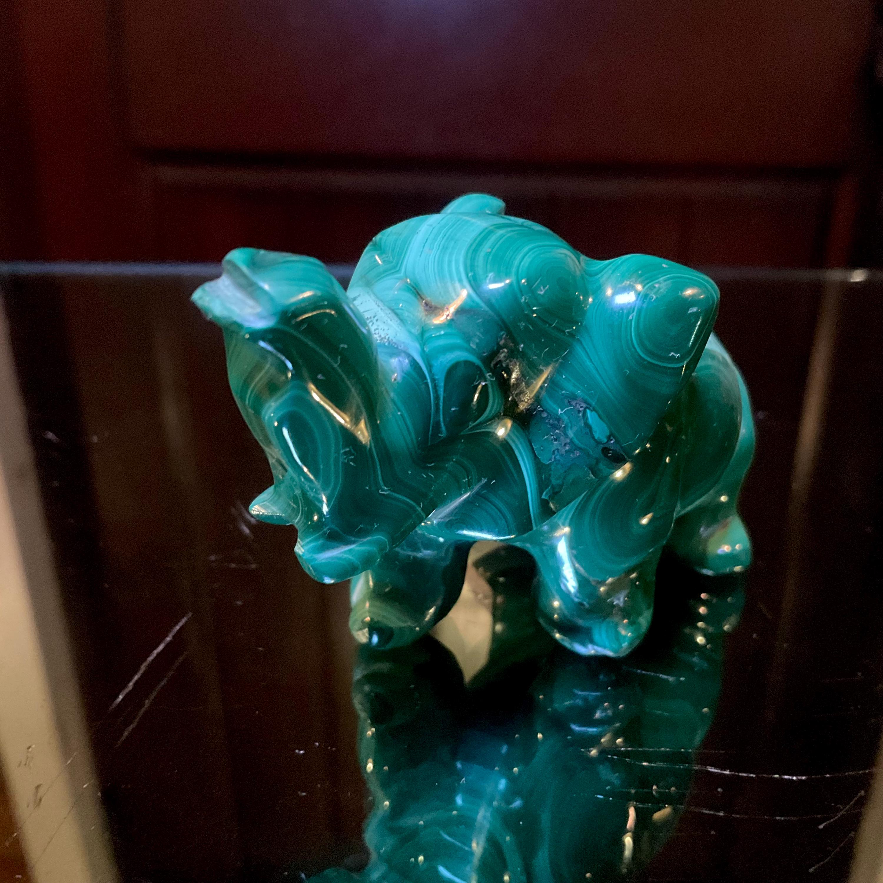If you love vintage hand carved Malachite, then this adorable Elephant is for you.