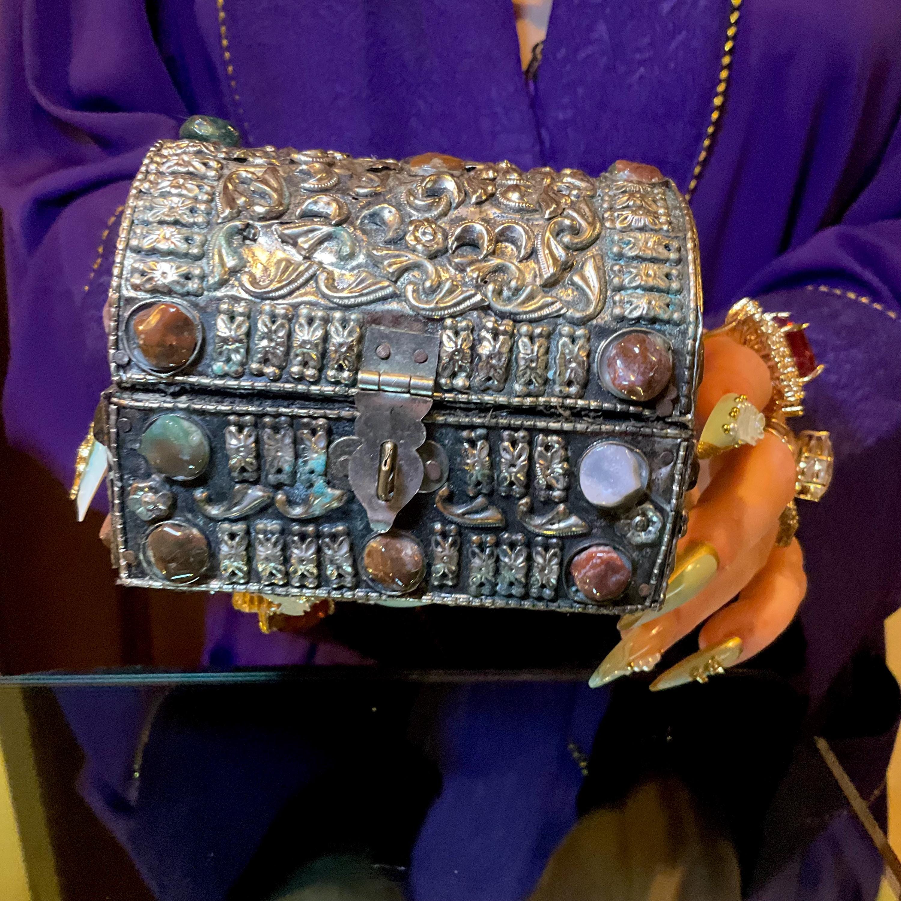 It is a Brass over Moroccan silver vintage jewelry box making it a one-of-a-kind work of art.
