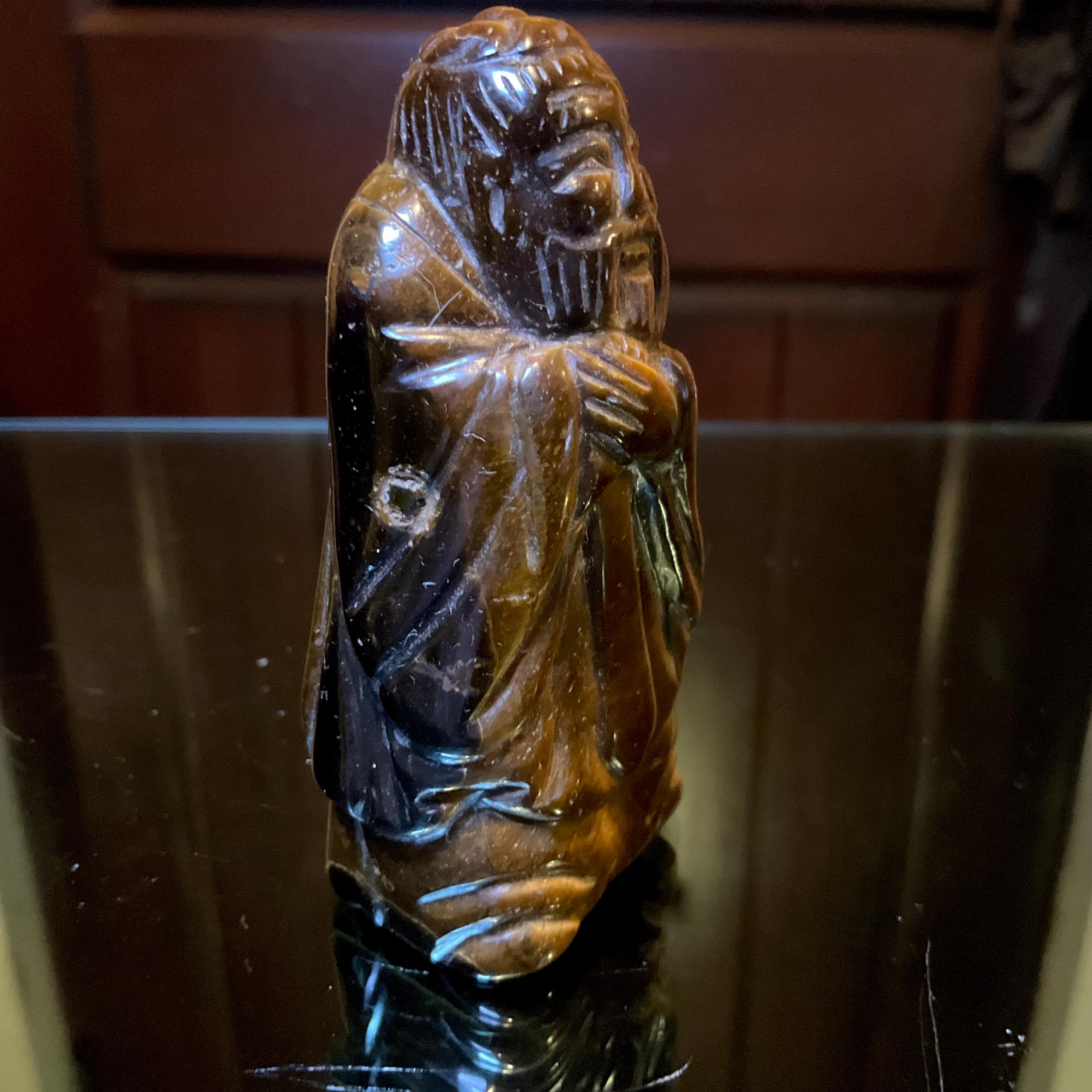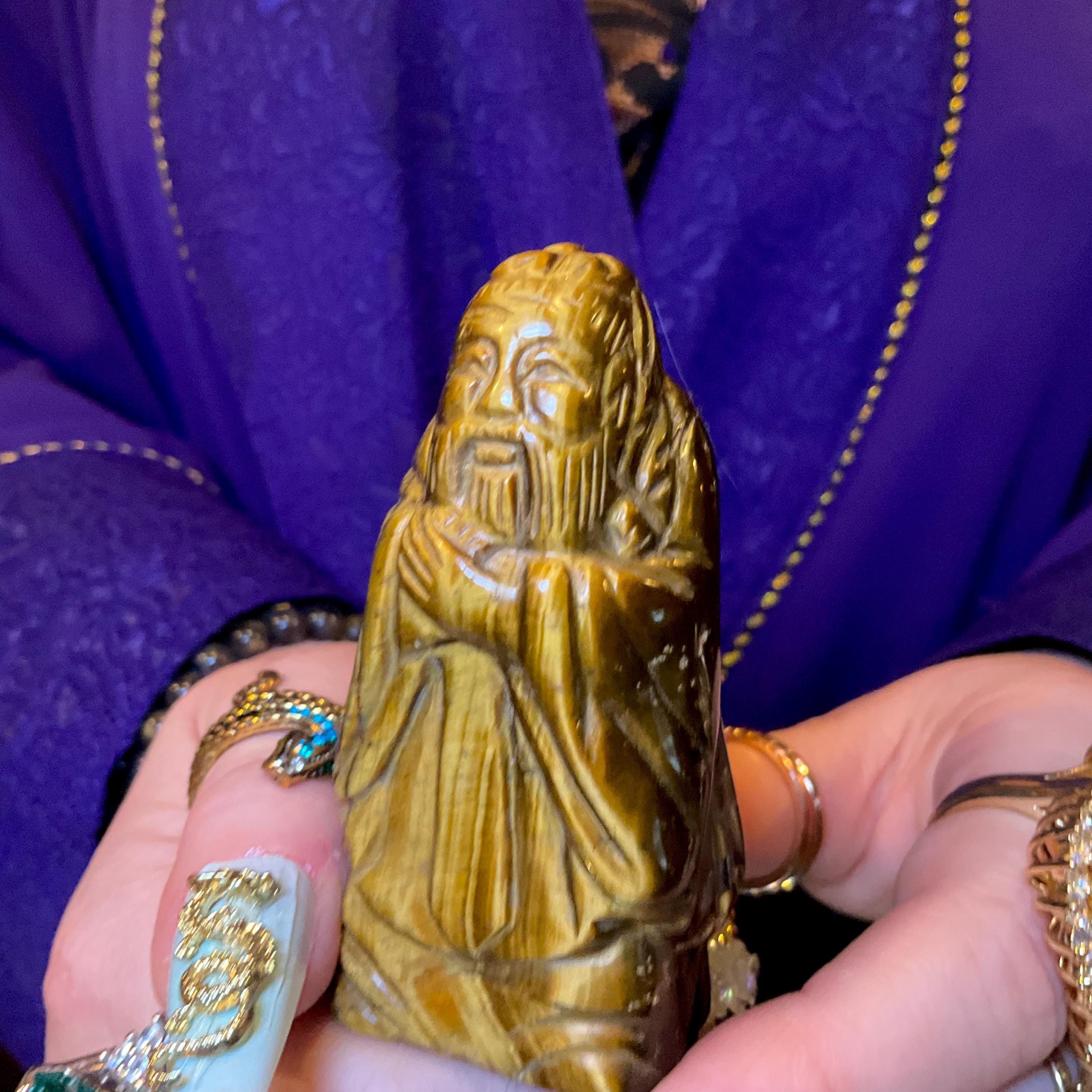 Tigers Eye Wiseman Crystal ~ 3" Tall ~ Vintage Stunning Colors, Display Gemstone ~ Hand Carved & Polished from Japan