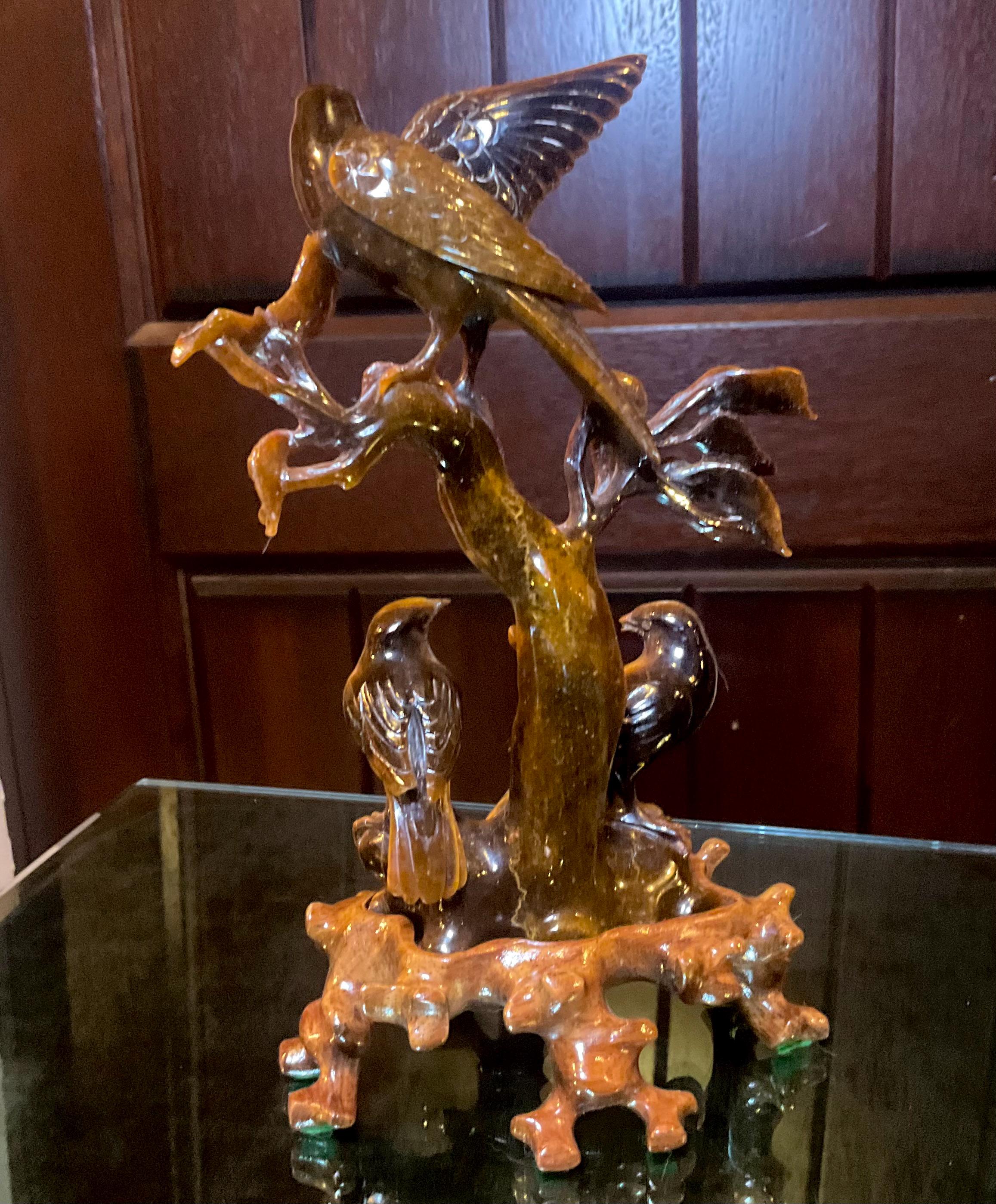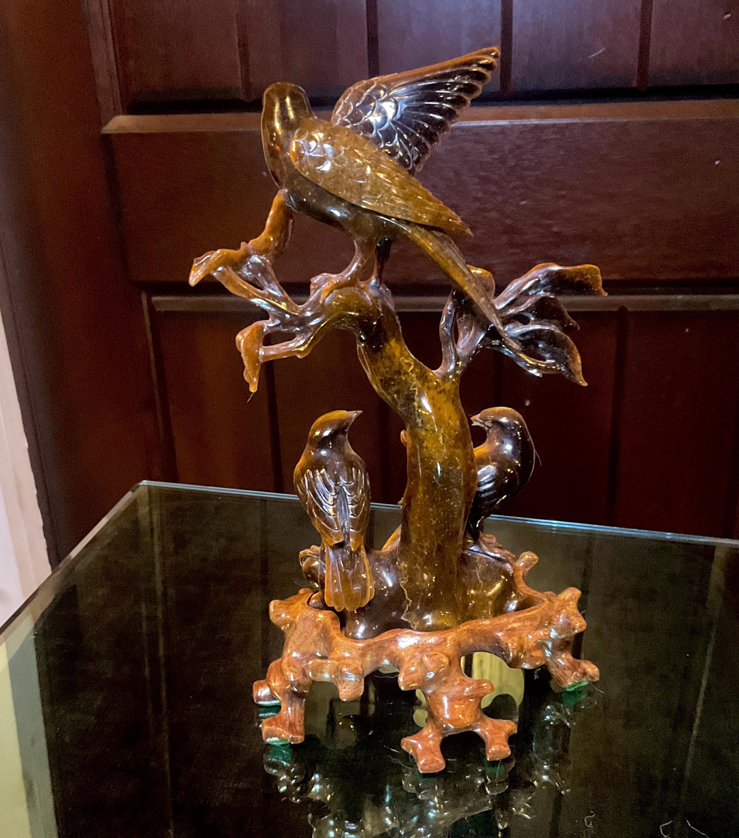 If you love vintage hand carved Tiger's Eye, then this adorable "three birds on branches" is for you.