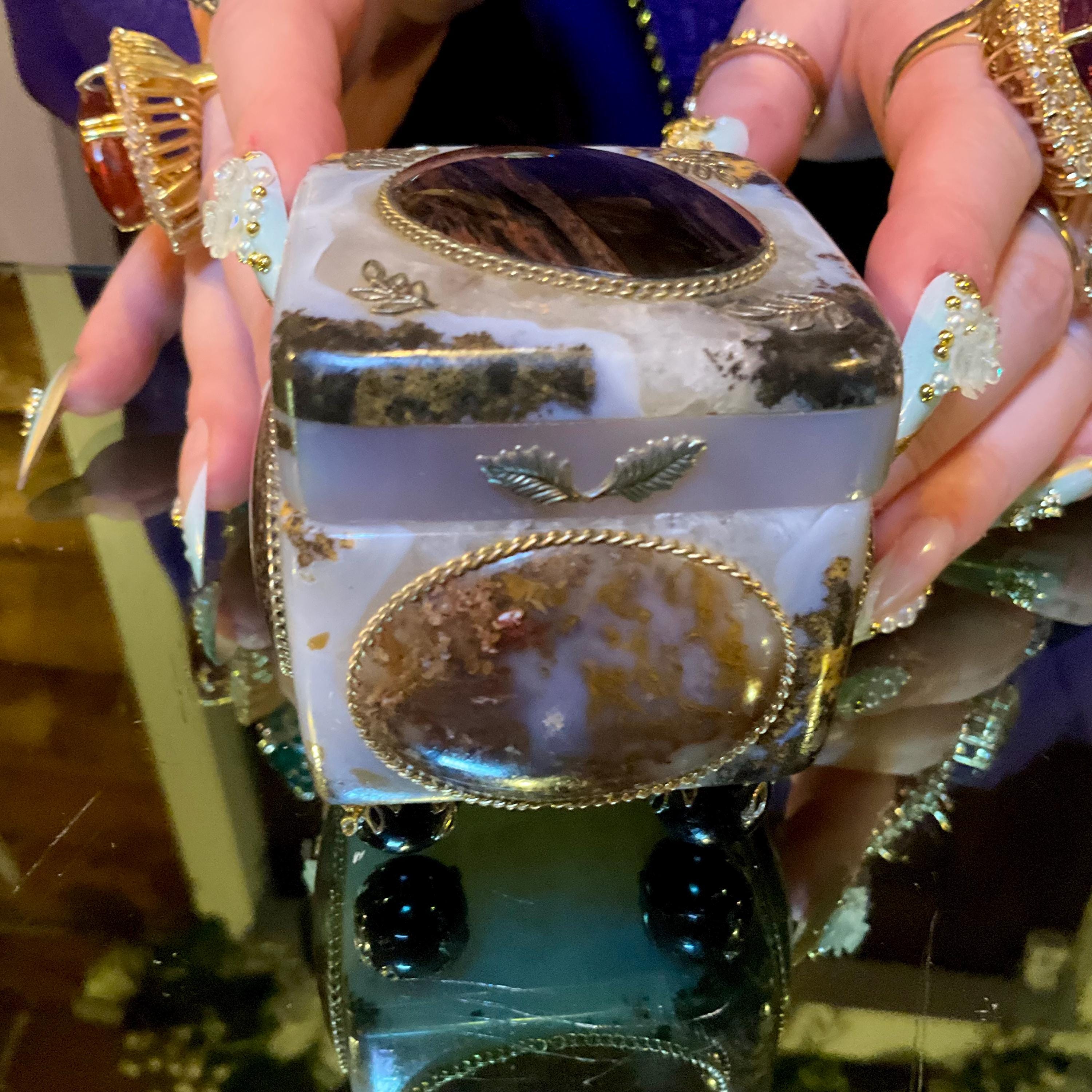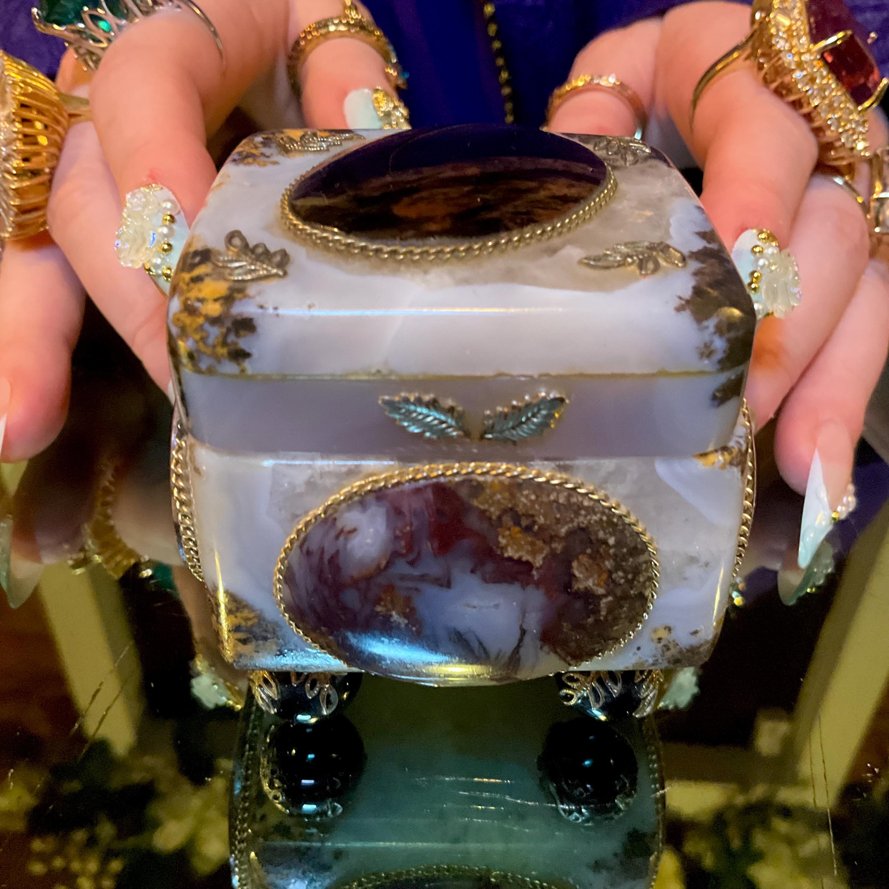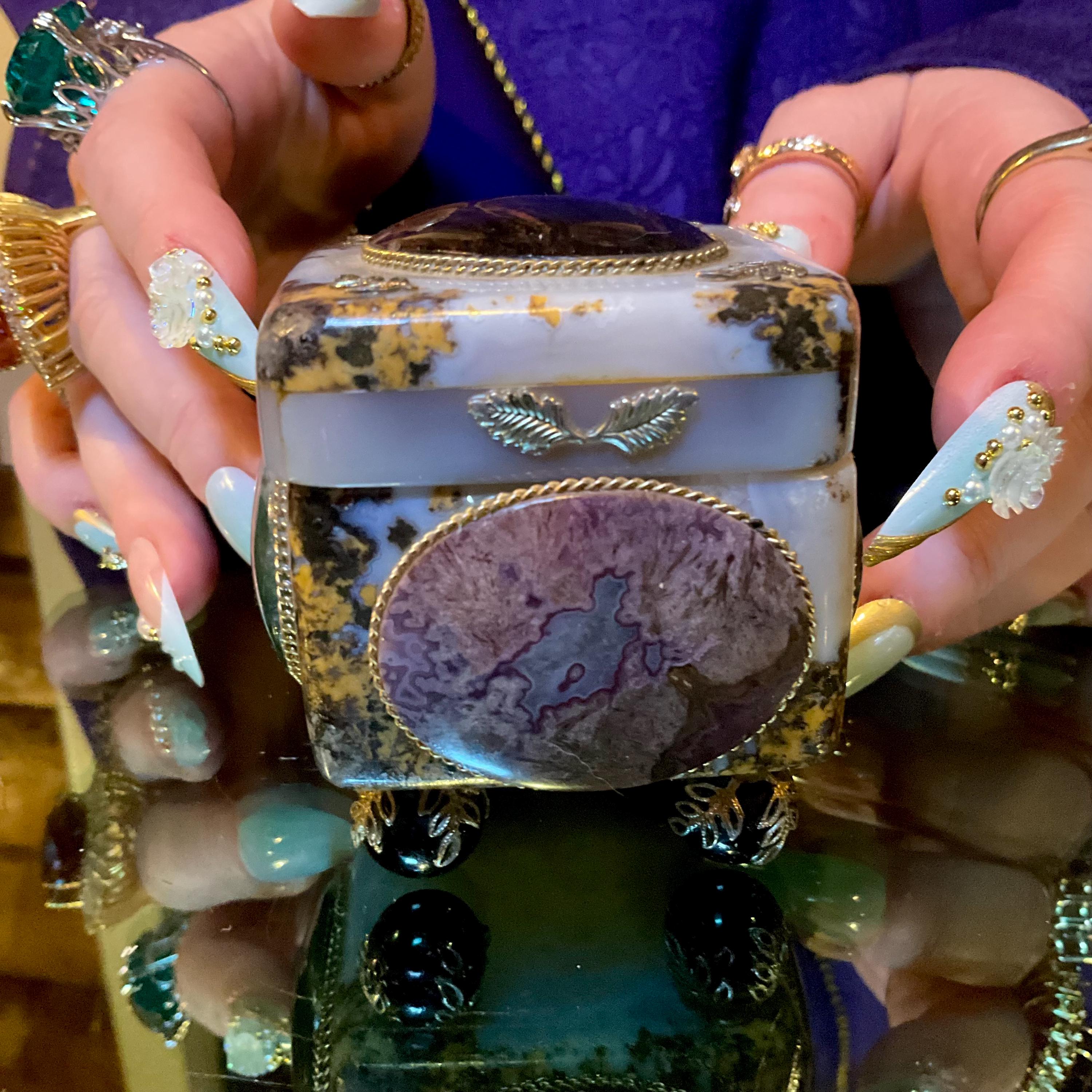 This is a one-of-a-kind crafted Ornate Dendritic Jasper Jewelry Box, and what makes this a fine artesian labor of love is it a true treasure designed by a master craftsman.
