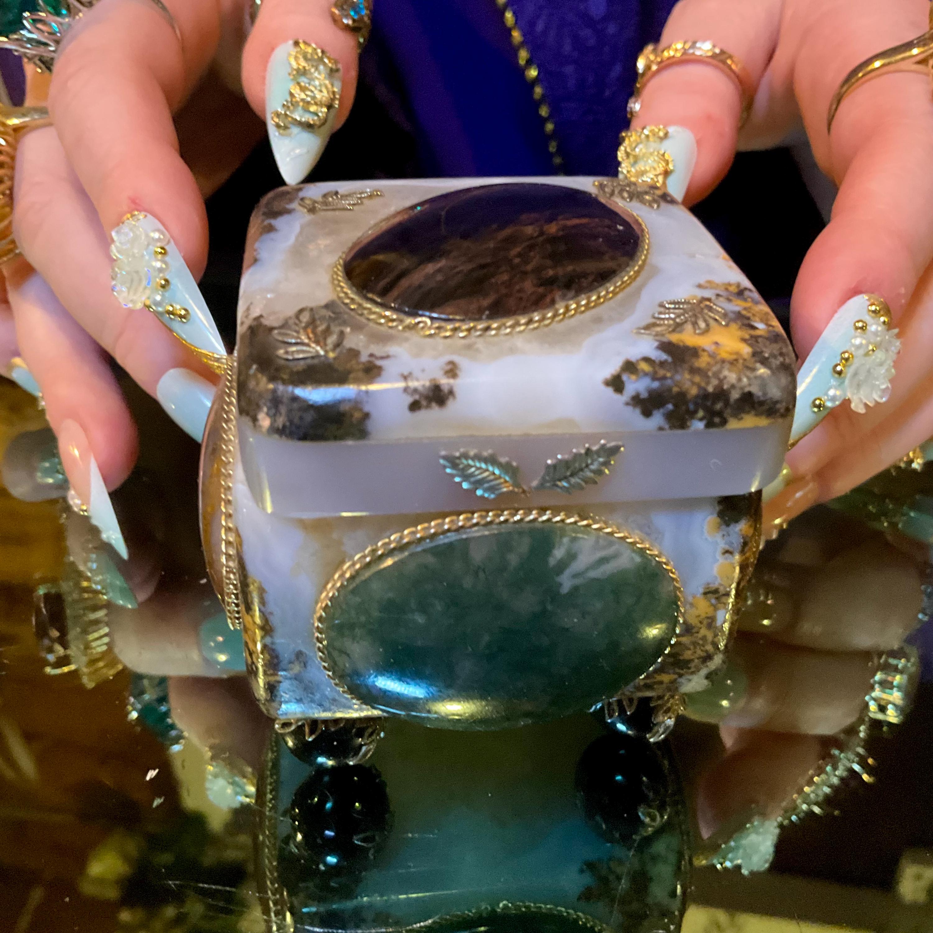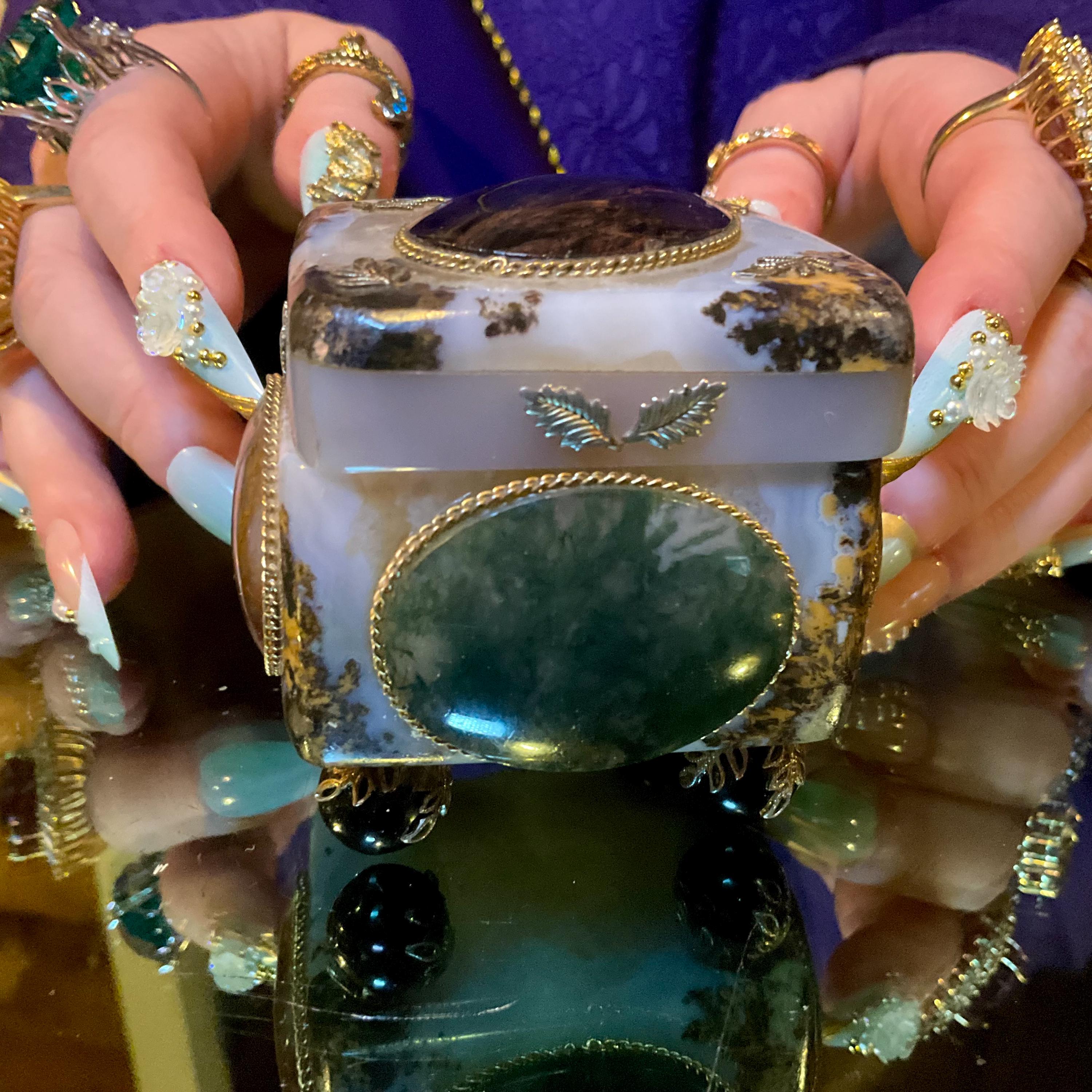 The Dendritic Jasper Jewelry Box is the old style, deep and rich in color very dense and so perfectly detailed.