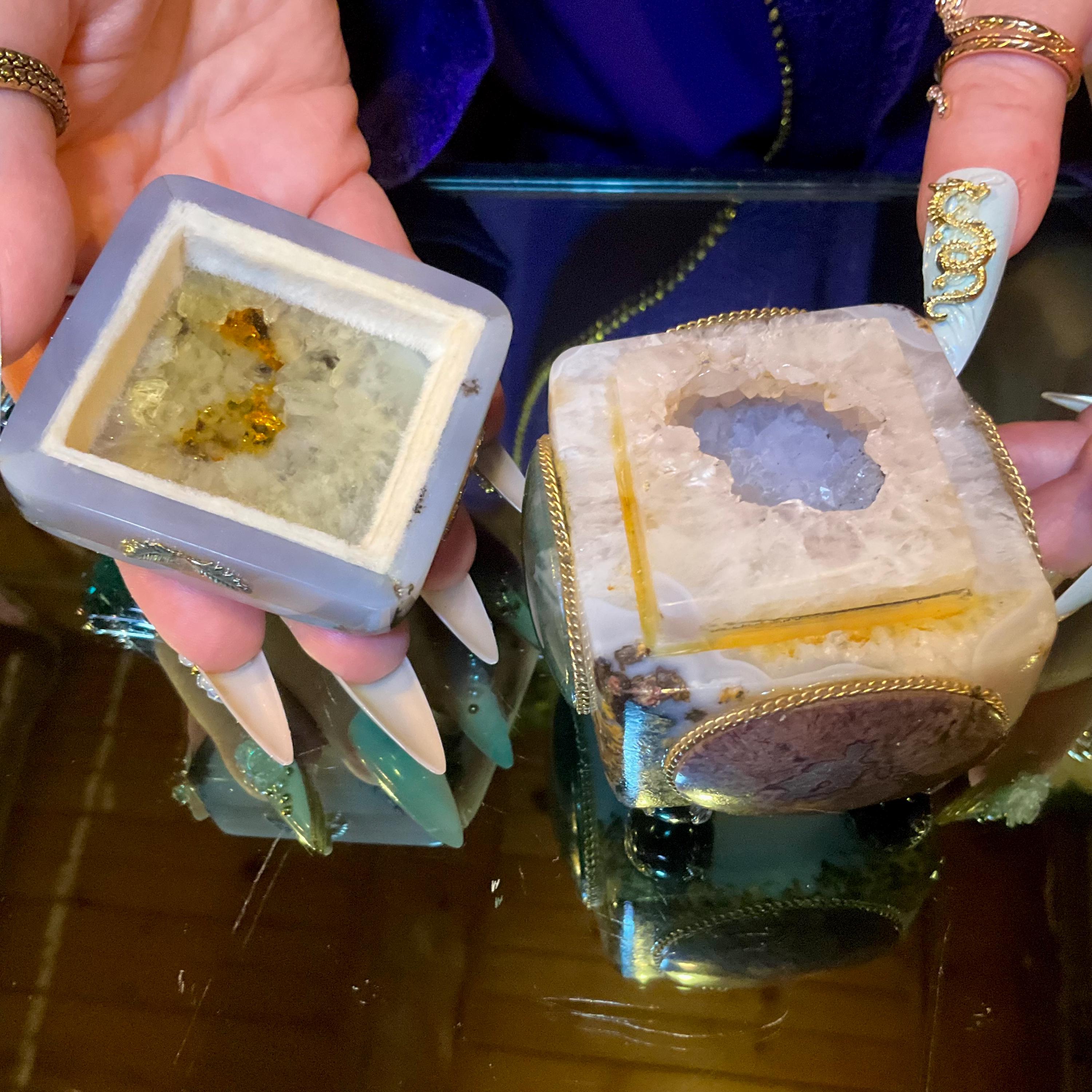 What really makes this box one of a kind is the natural crystal center proving that it was carved from one piece of Agate.