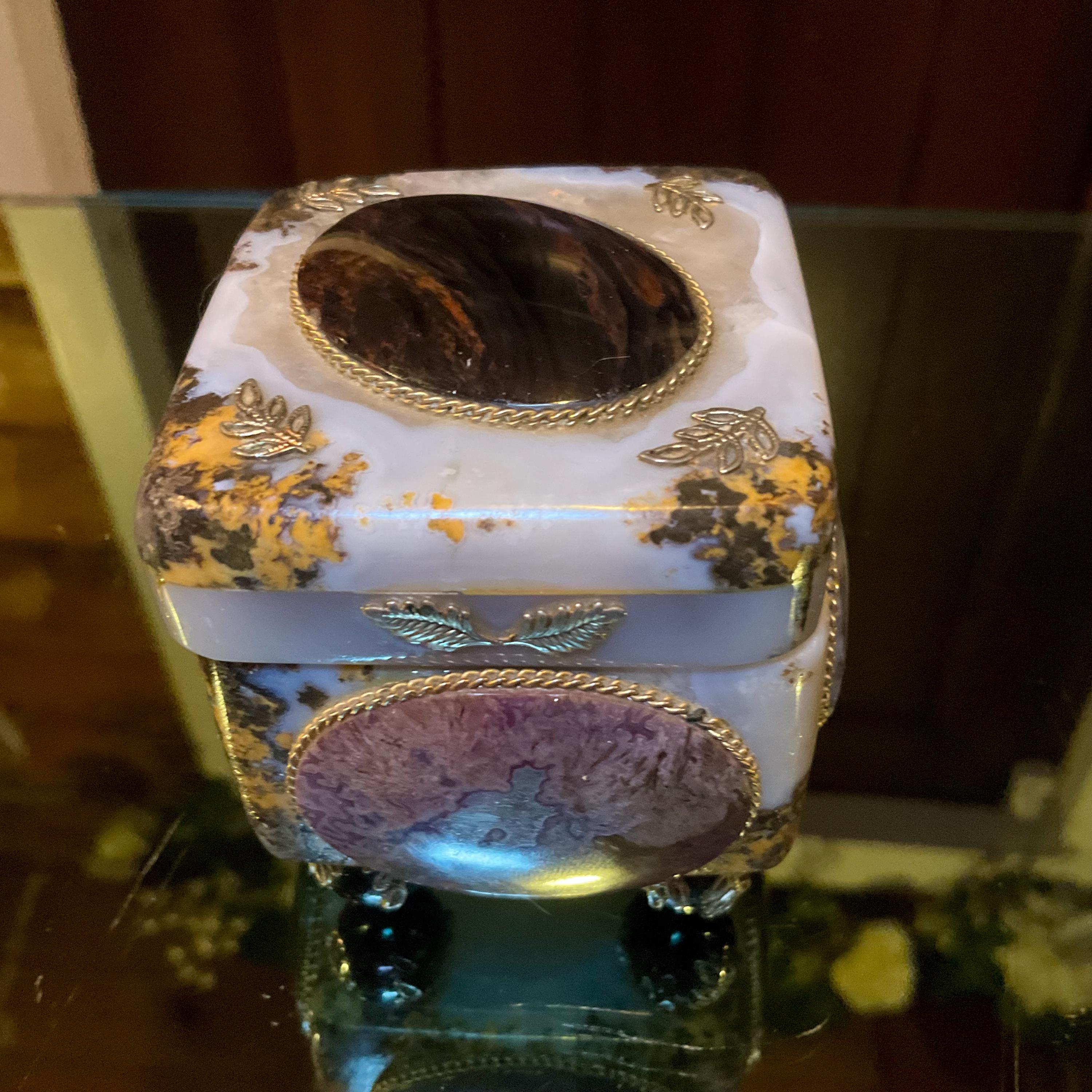 This Jasper Jewelry box is handmade beautifully detailed, and you can imagine how rare it is to get a jewelry box handmade in France with a lid with matching sides making this a true treasure.