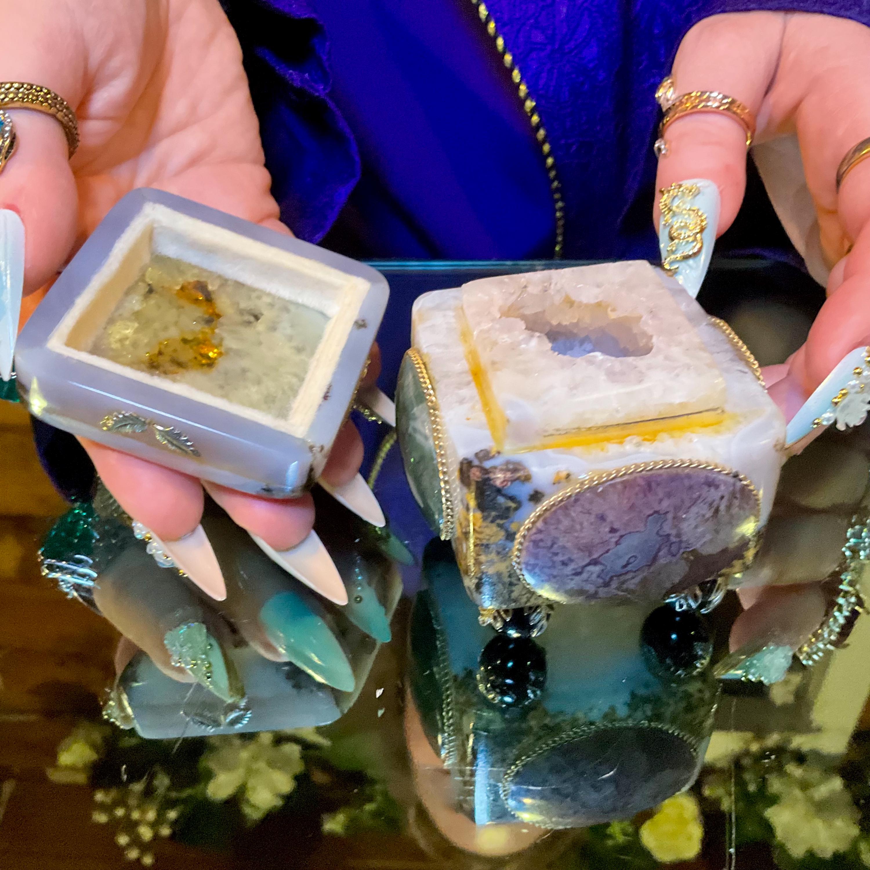 This is a one-of-a-kind carved Jasper Jewelry Box that can also be used as a charging station for your crystals, jewelry or your reiki tools.