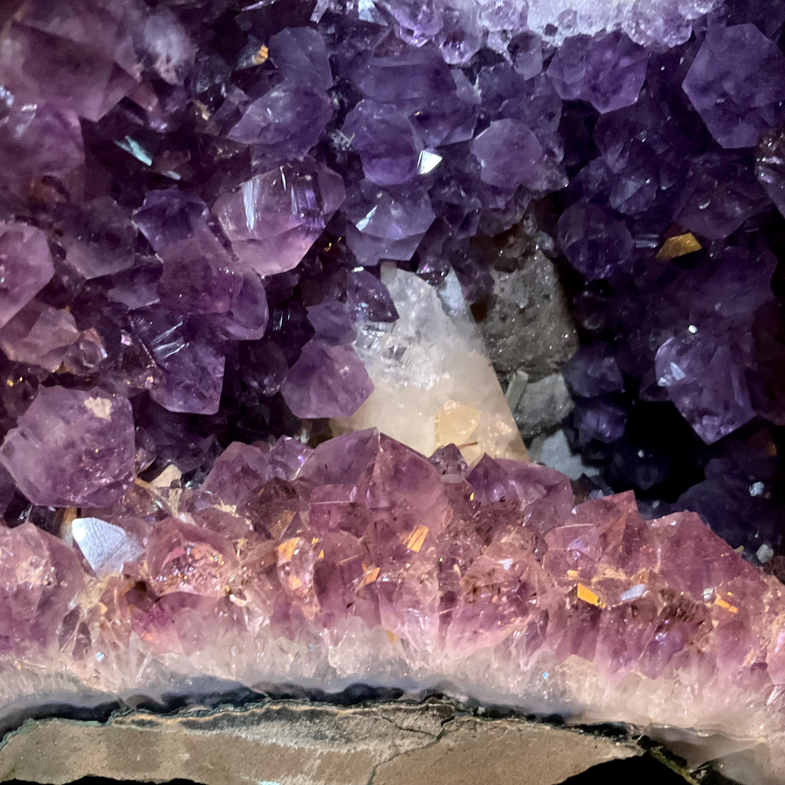 What makes this Amethyst Crystal Cathedral Cluster so unique is how the electric colors blend so naturally.