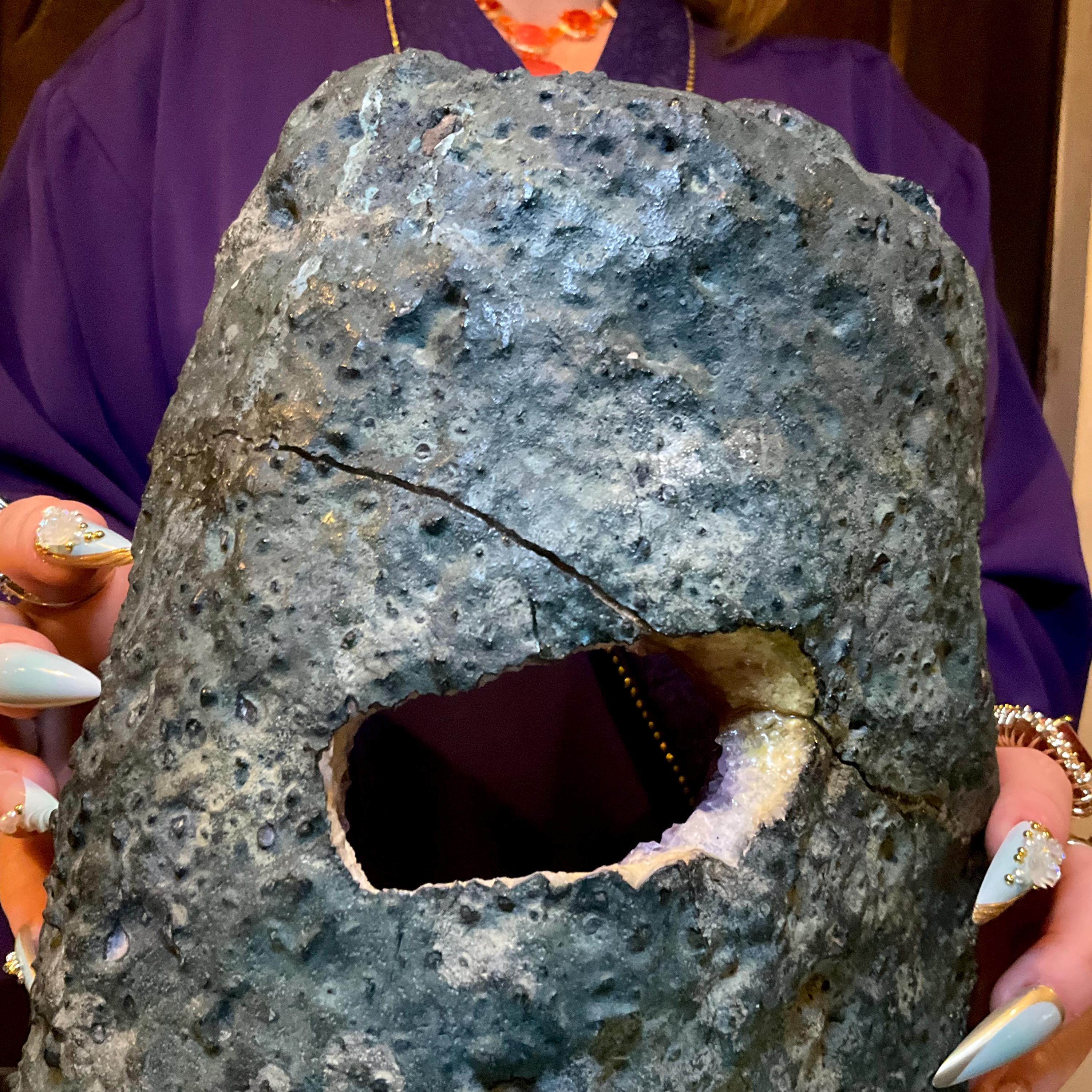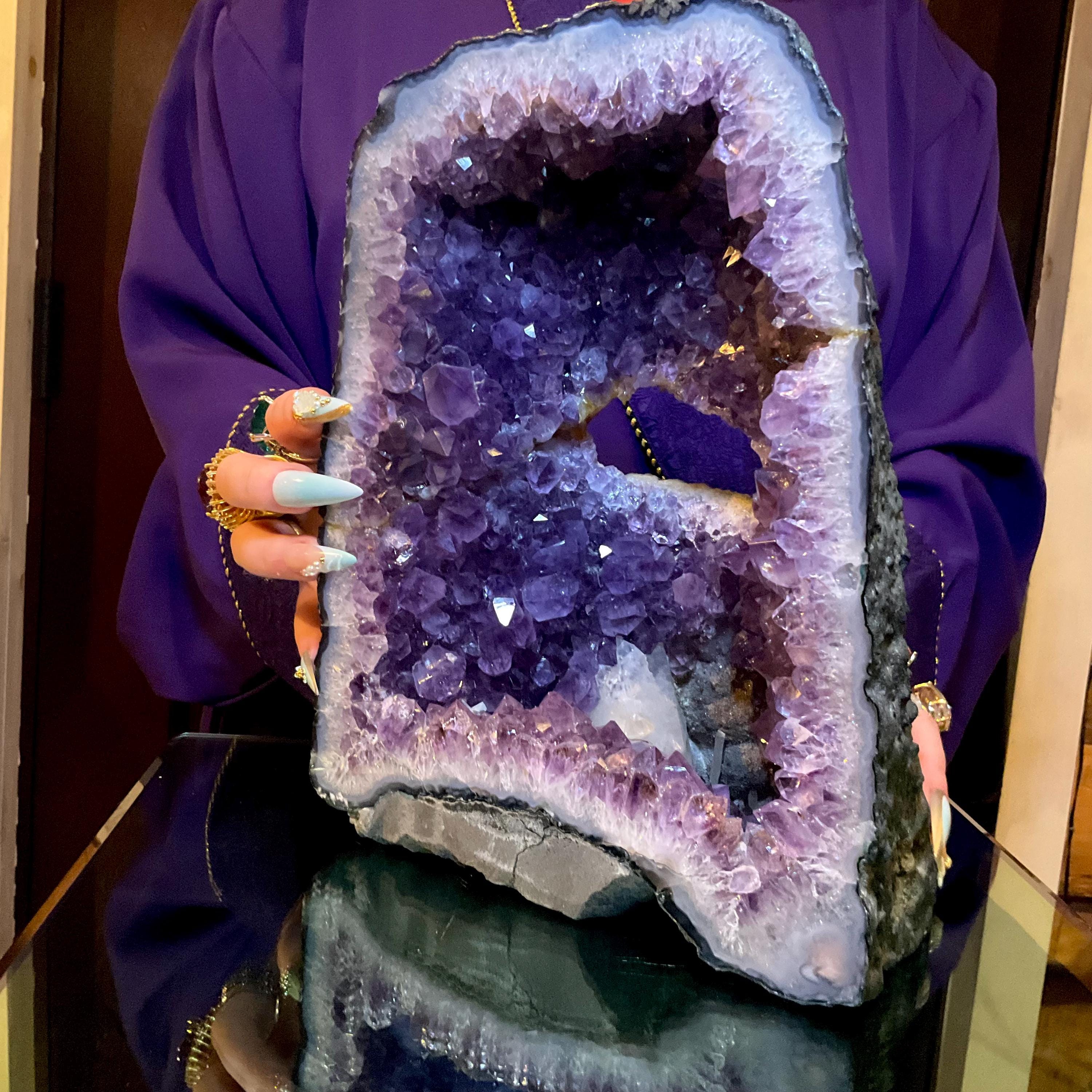 This is a one-of-a-kind Amethyst Crystal Cluster perfect in every way; there is a crack on the back of the cluster that does not affect the display and does not go through to the front.