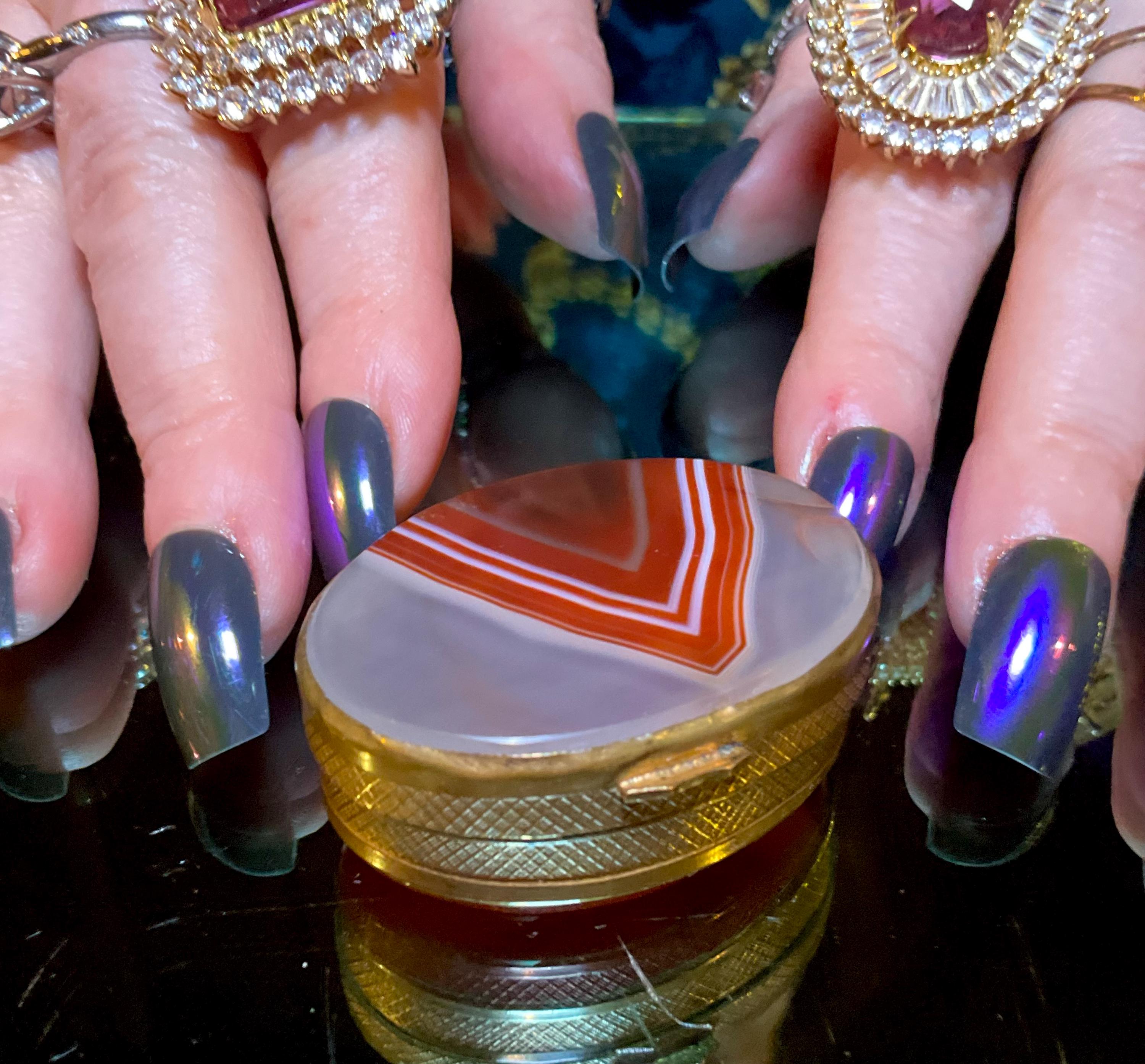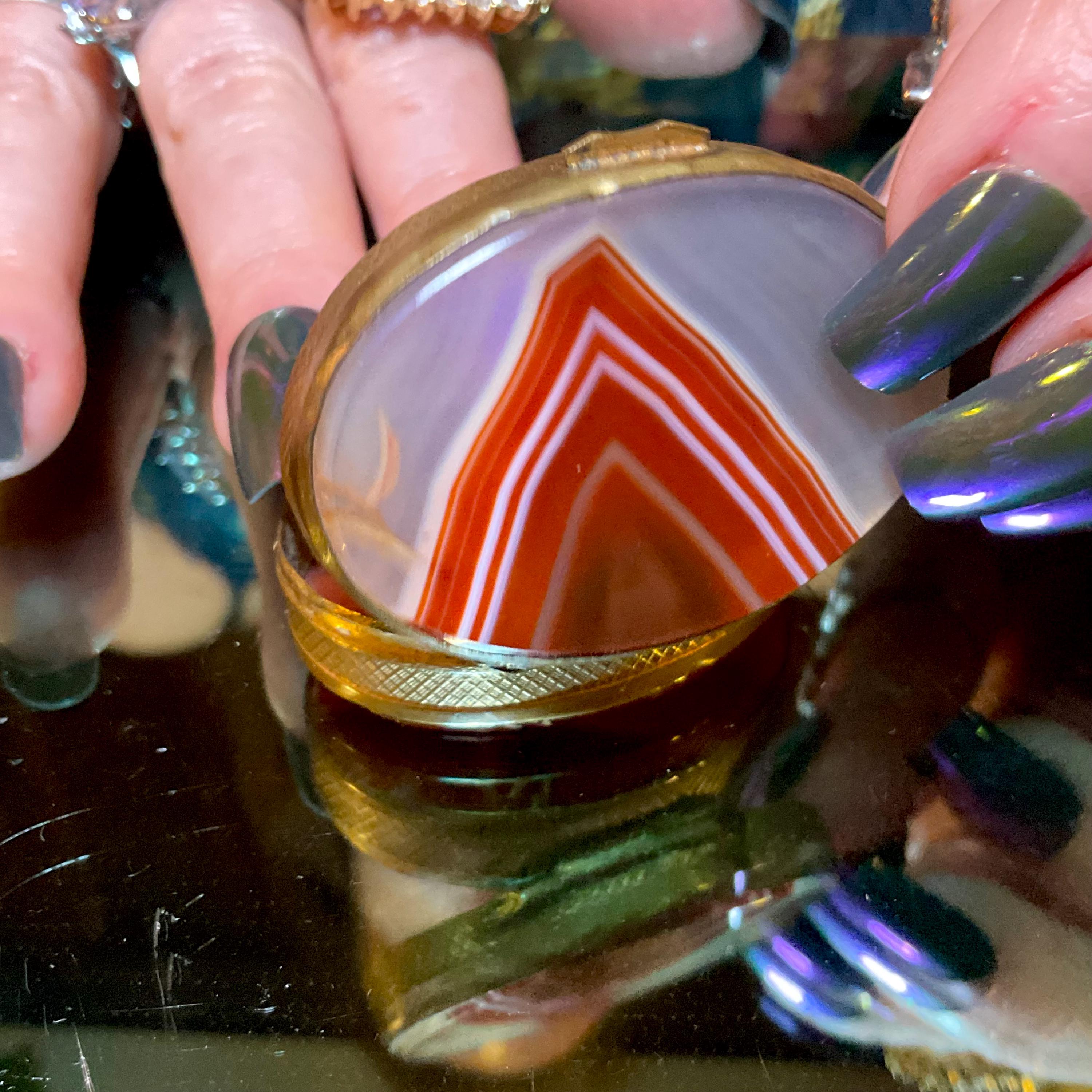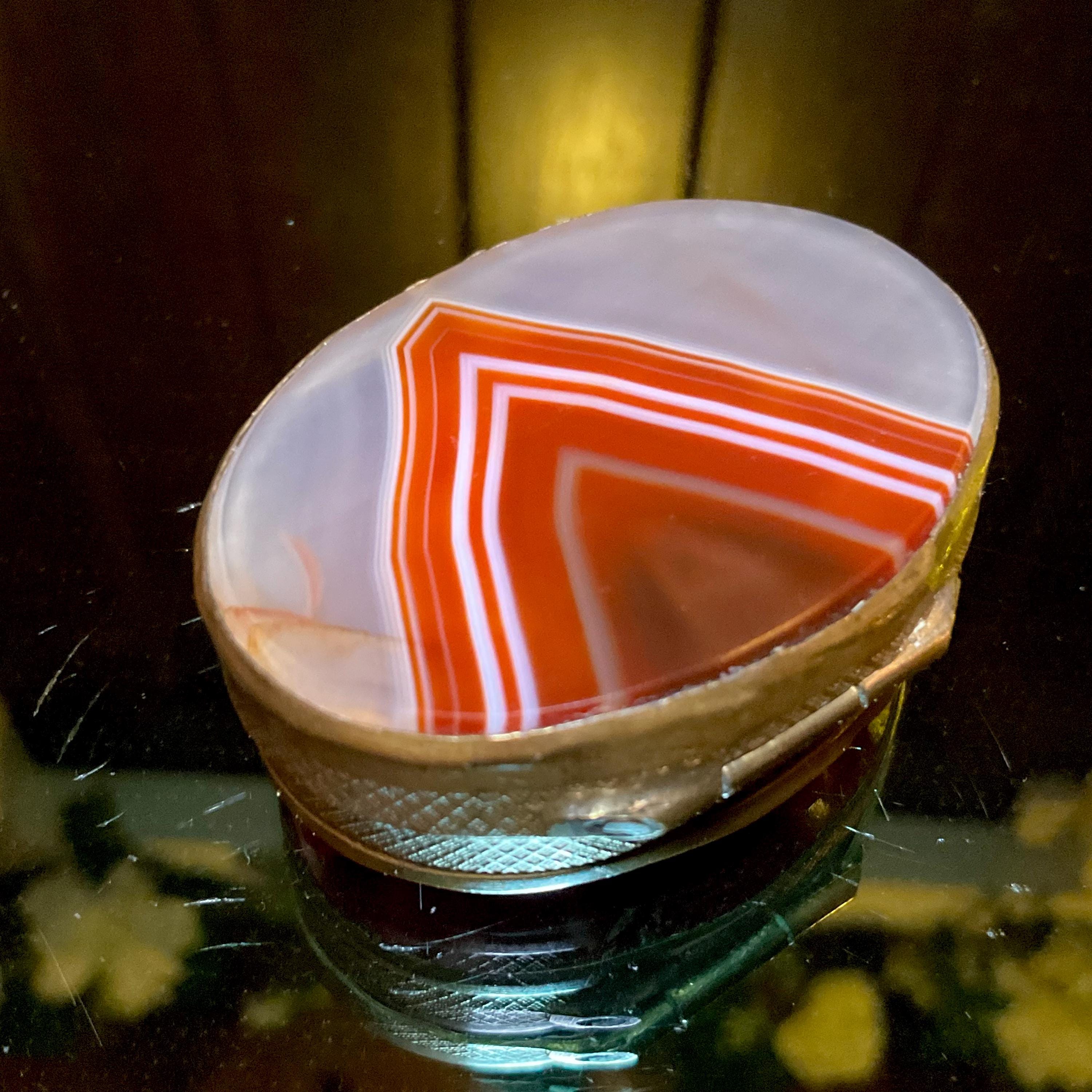 Banded Agate Carnelian Sided Pill Box / Snuff Box France 1880's ~ 2" Long ~ Beautiful Natural Color, Luminosity, And Transparency