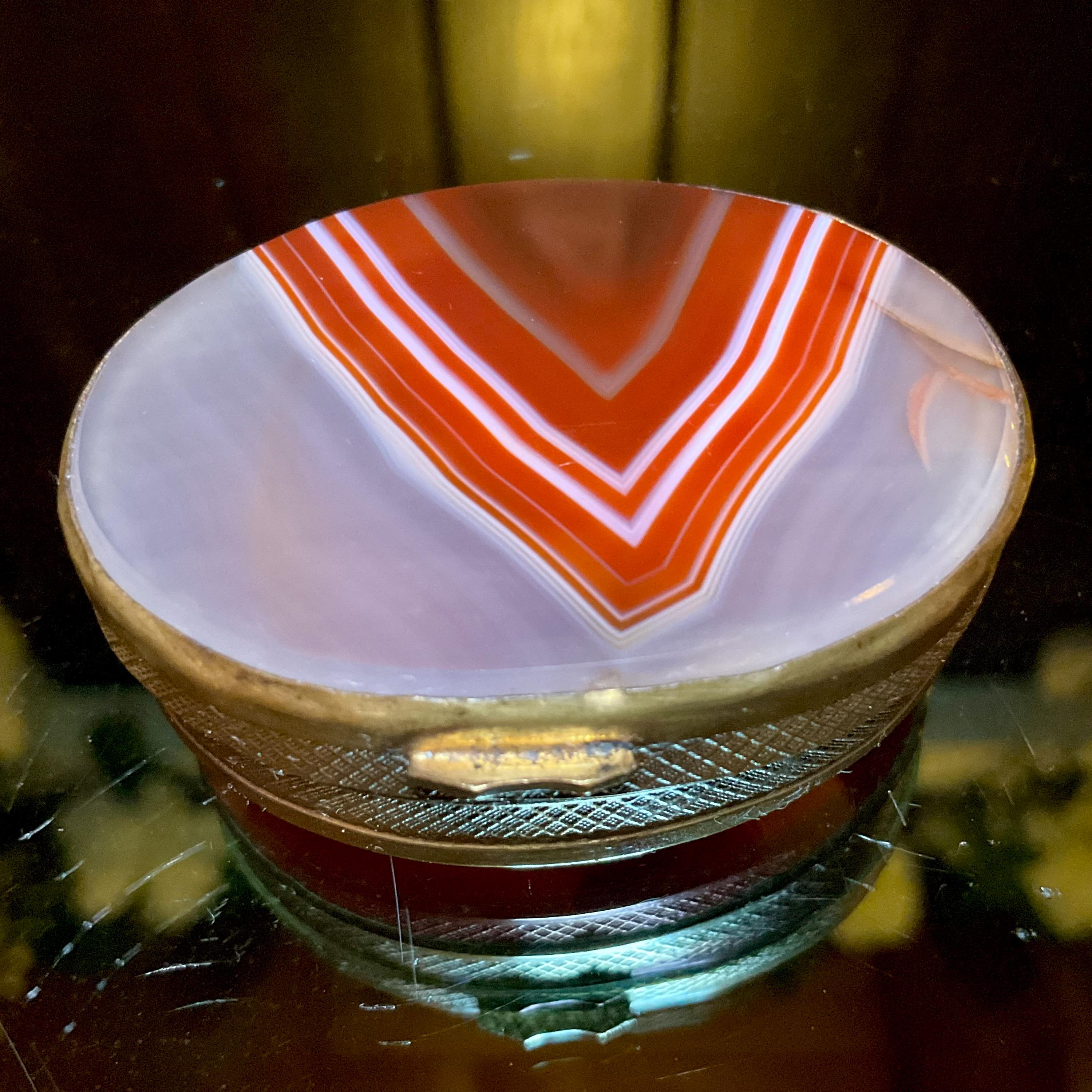 This Banded Agate Carnelian Double Sided Snuff/Pill Box has gorgeous swirling red, white, gray and orange natural inclusion patterns.