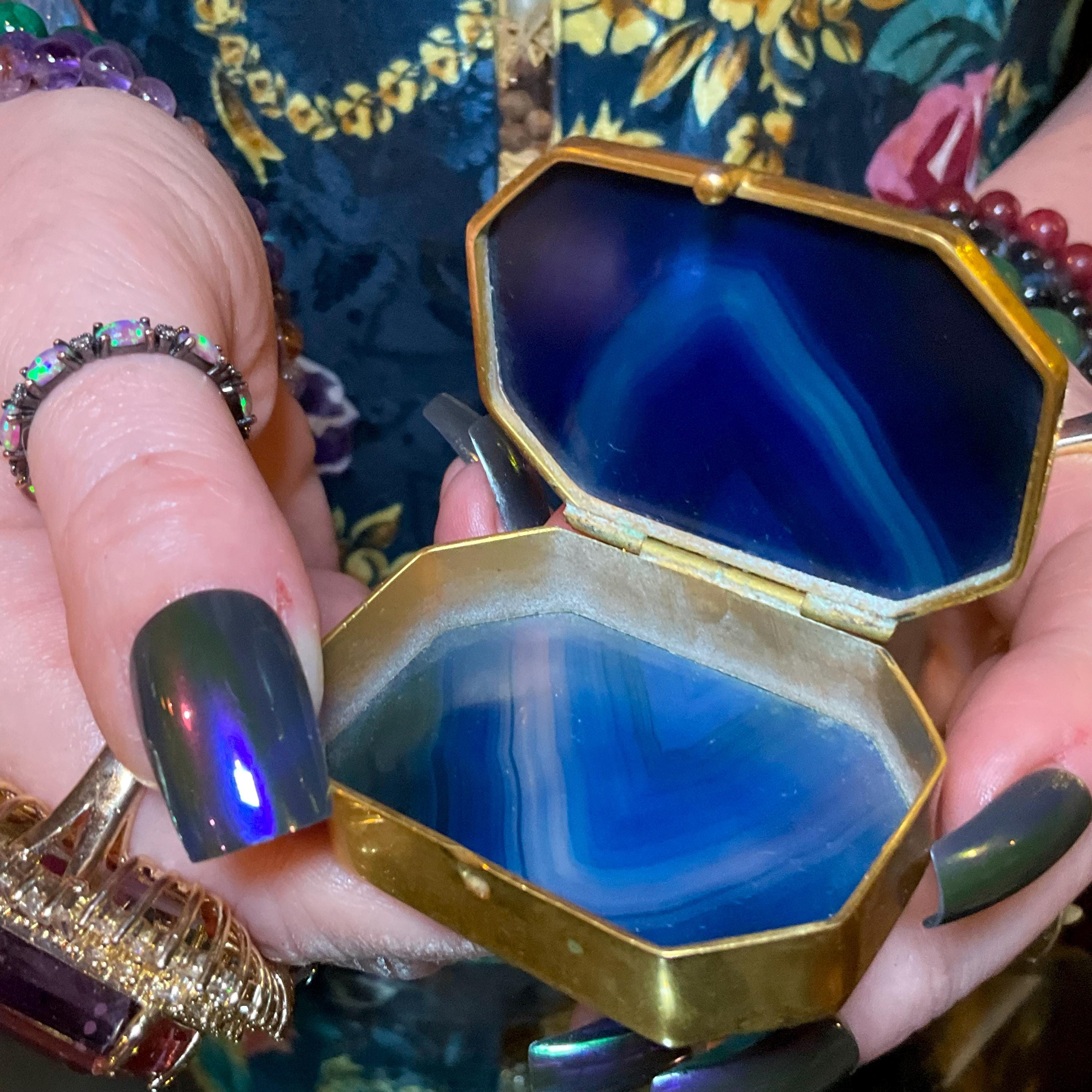 If you love vintage hand carved Agate, then this beautiful Blue Banded Agate Pill/Trinket Box is for you.