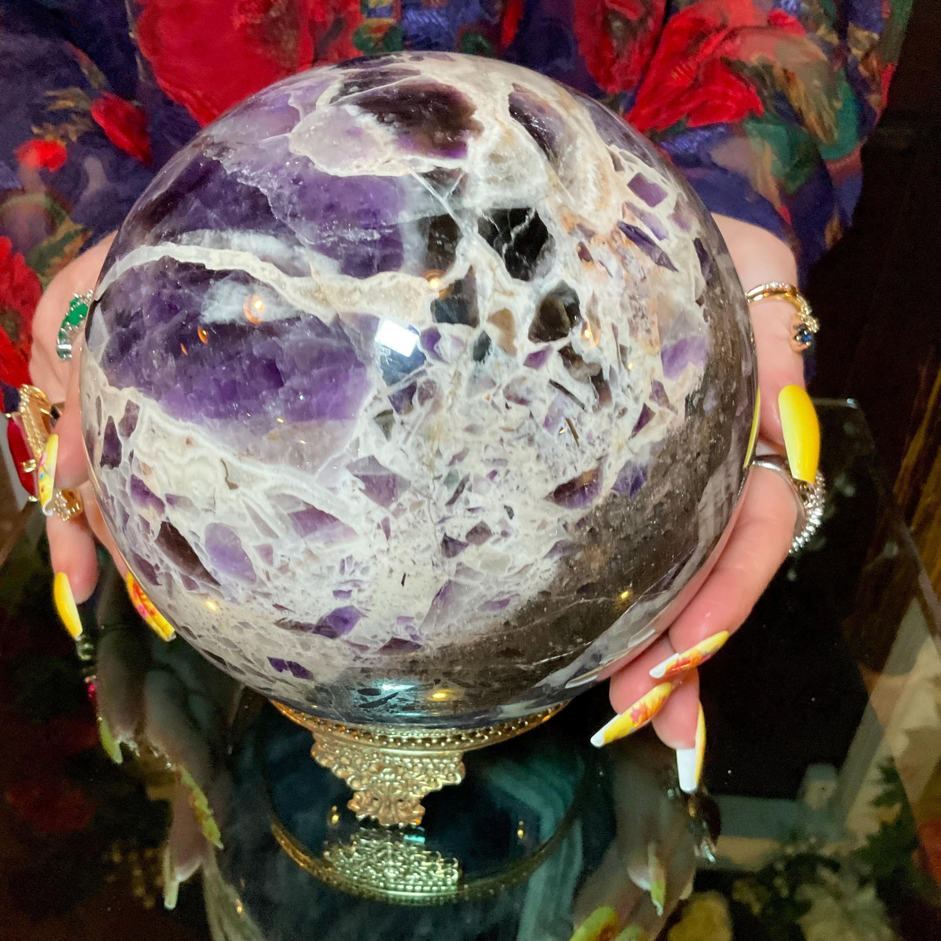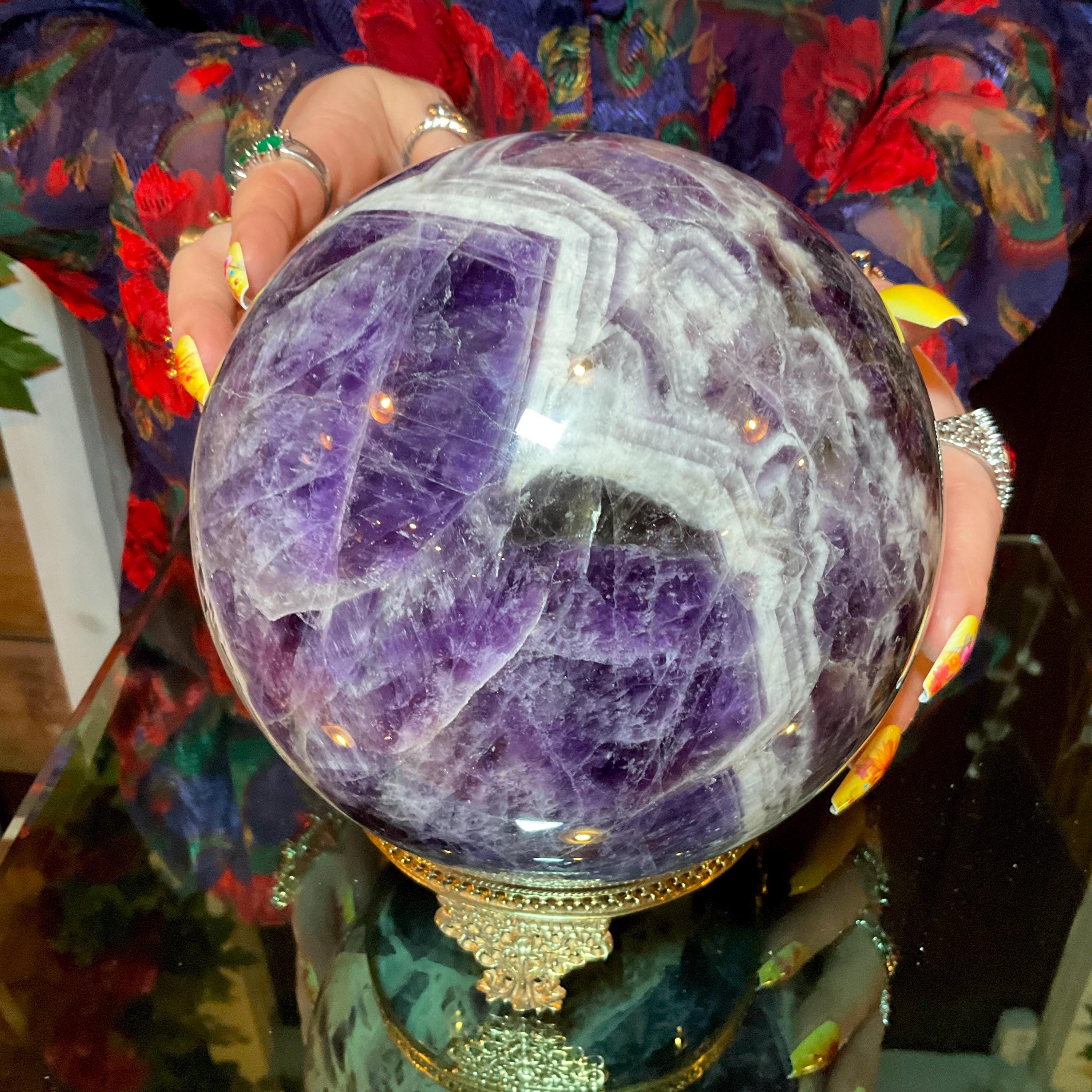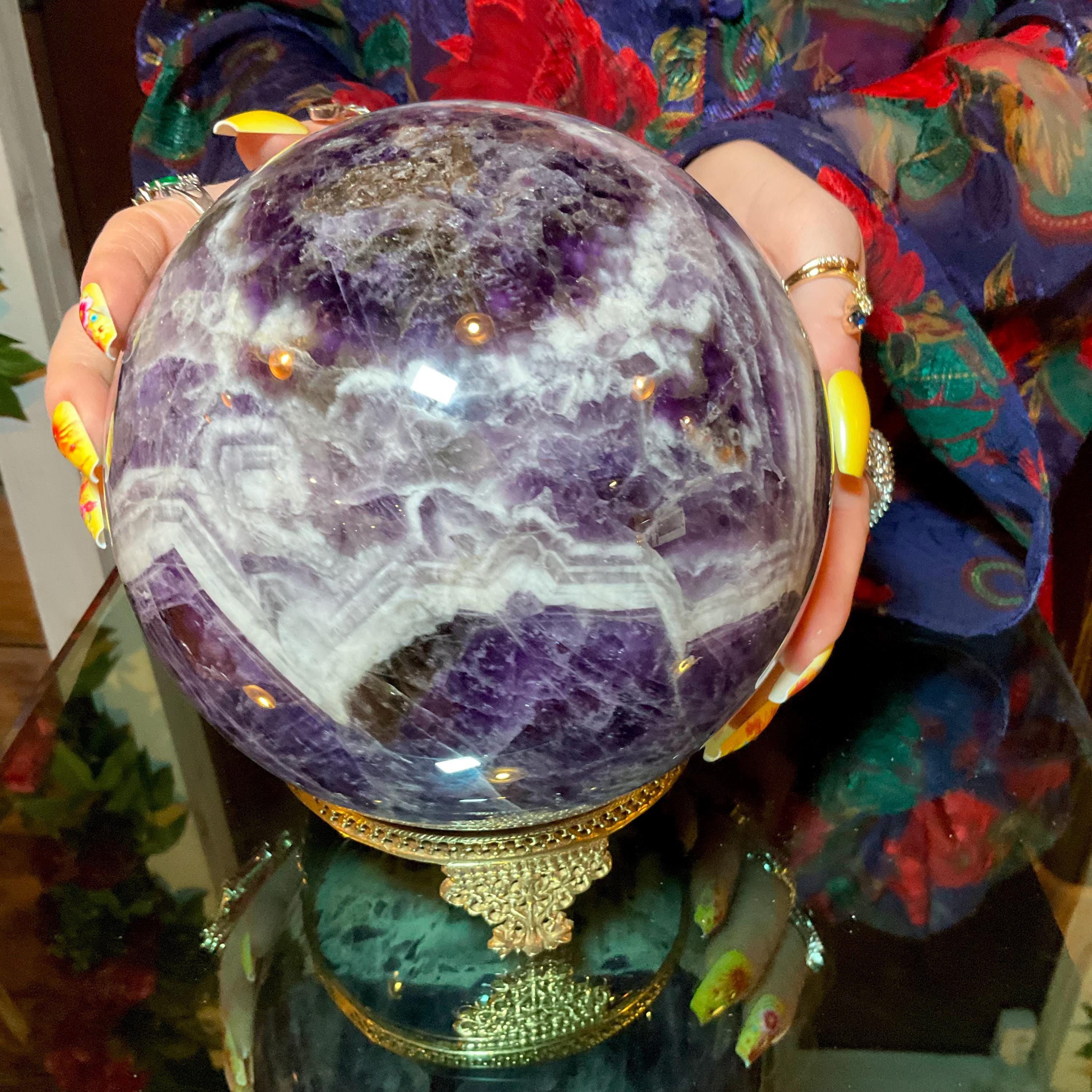 Amethyst Crystal Ball with Display Stand ~ Large 12 Lb. 12 oz. ~ 6" Wide ~ Purple and White Colors ~ Fast & Free Shipping, USA+ Global Shipping