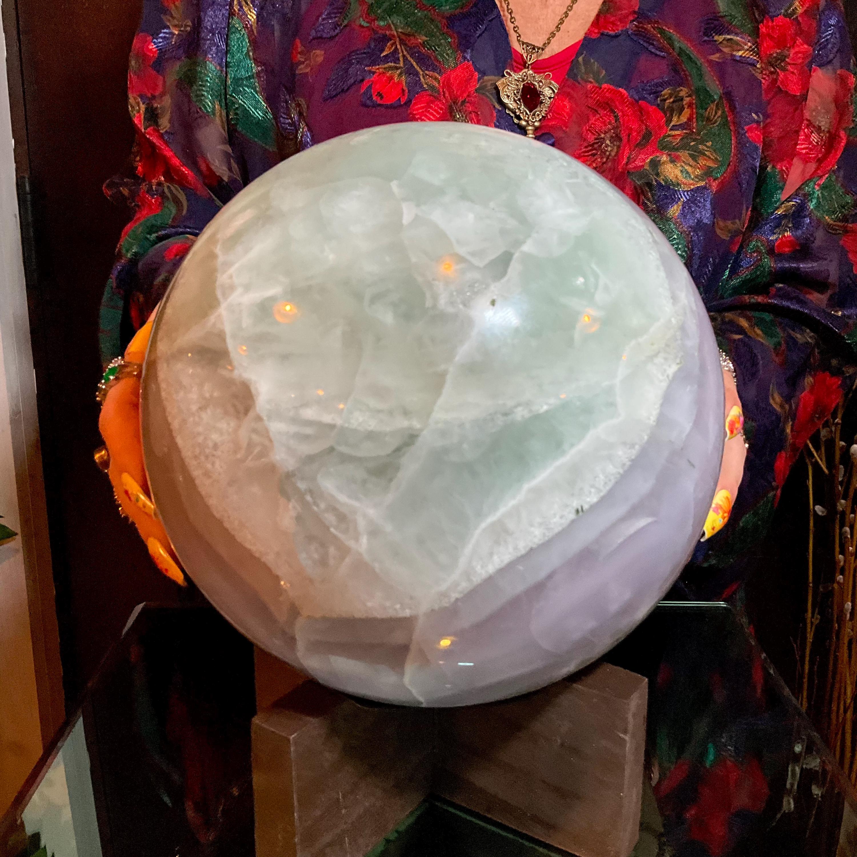 Rainbow Fluorite Crystal Ball ~ Large 26 Lb. ~ 8" Wide ~ Transparent Purple and Green Beautiful Colors, Altar Display ~ Fast Shipping