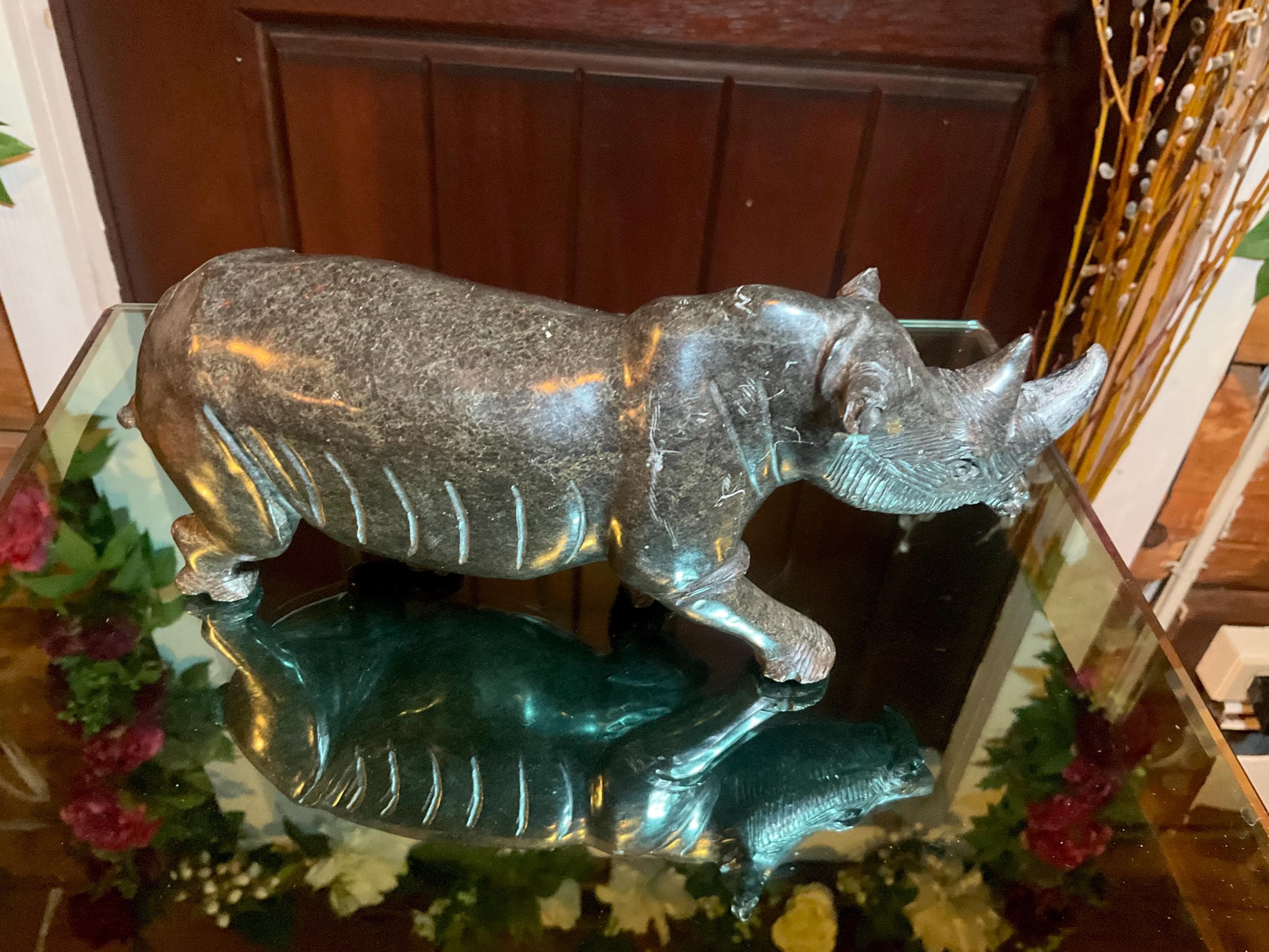 The Rhinoceros weighs, 2 pounds 12 ounces and it is beautifully hand carved a long time ago and you will never see another one like this.