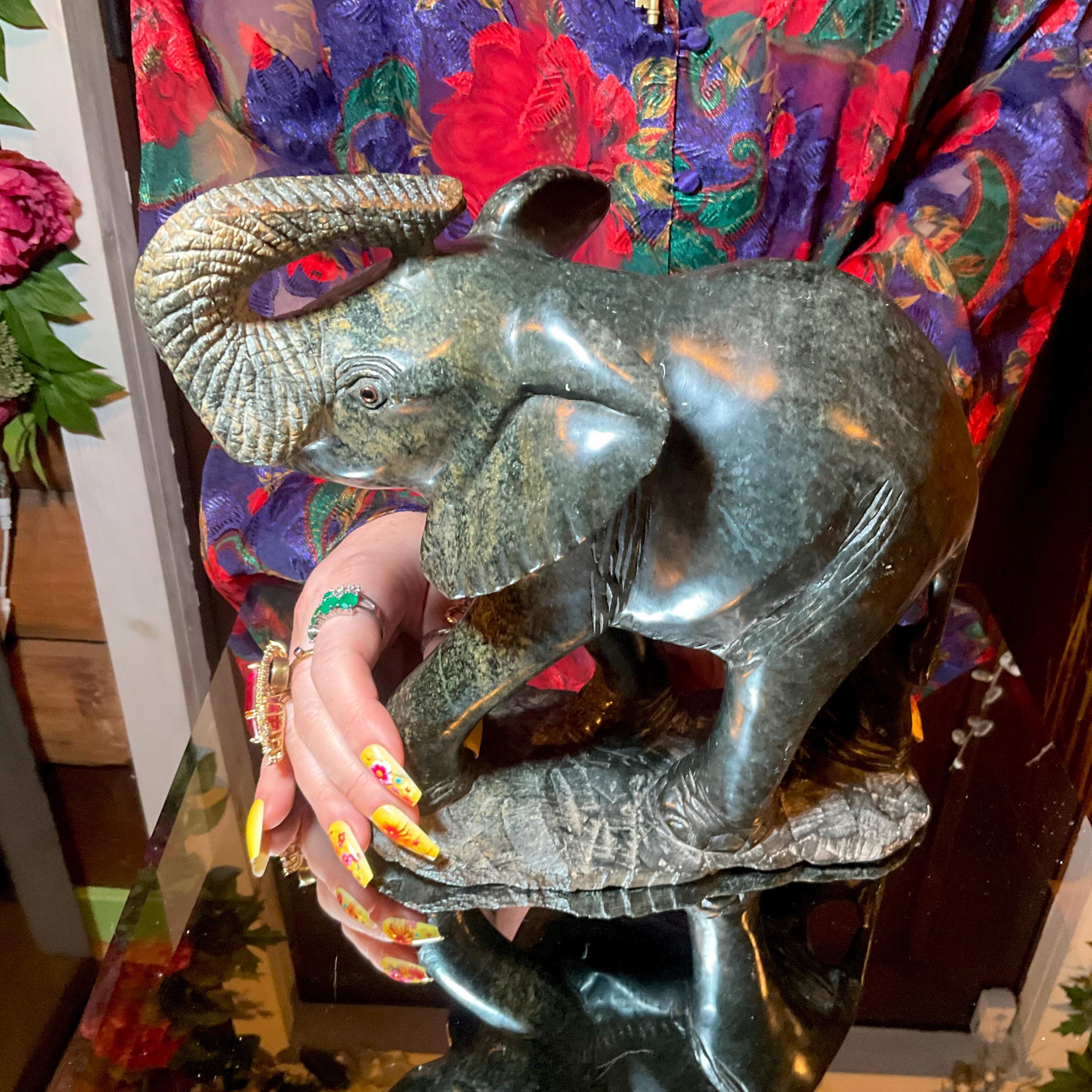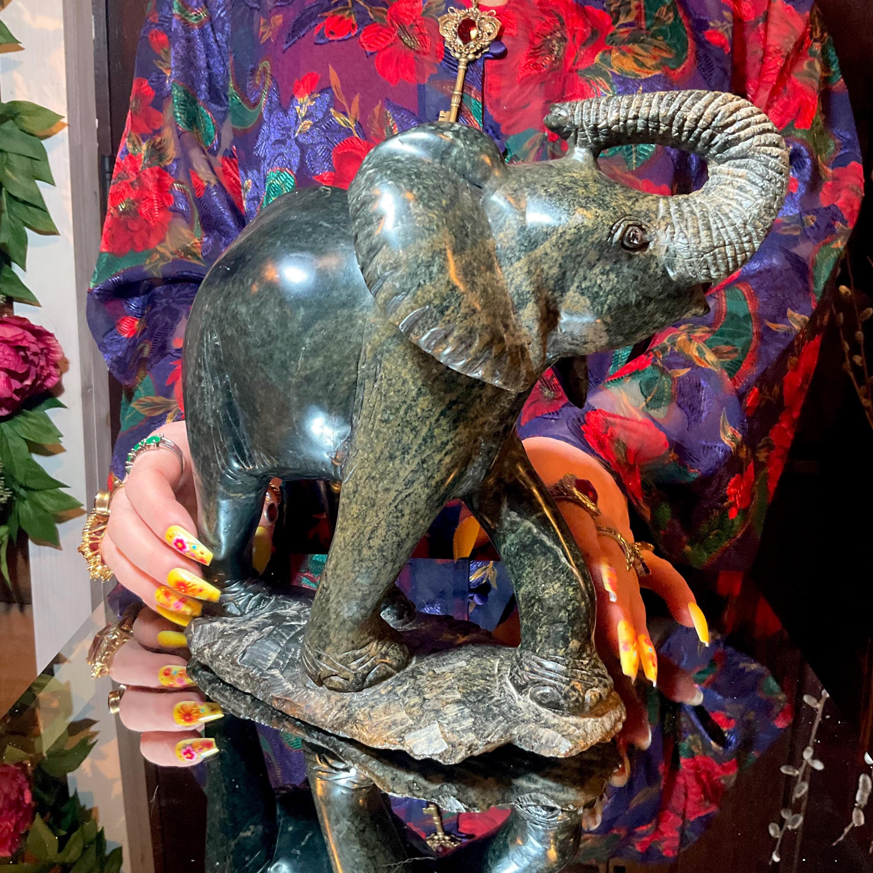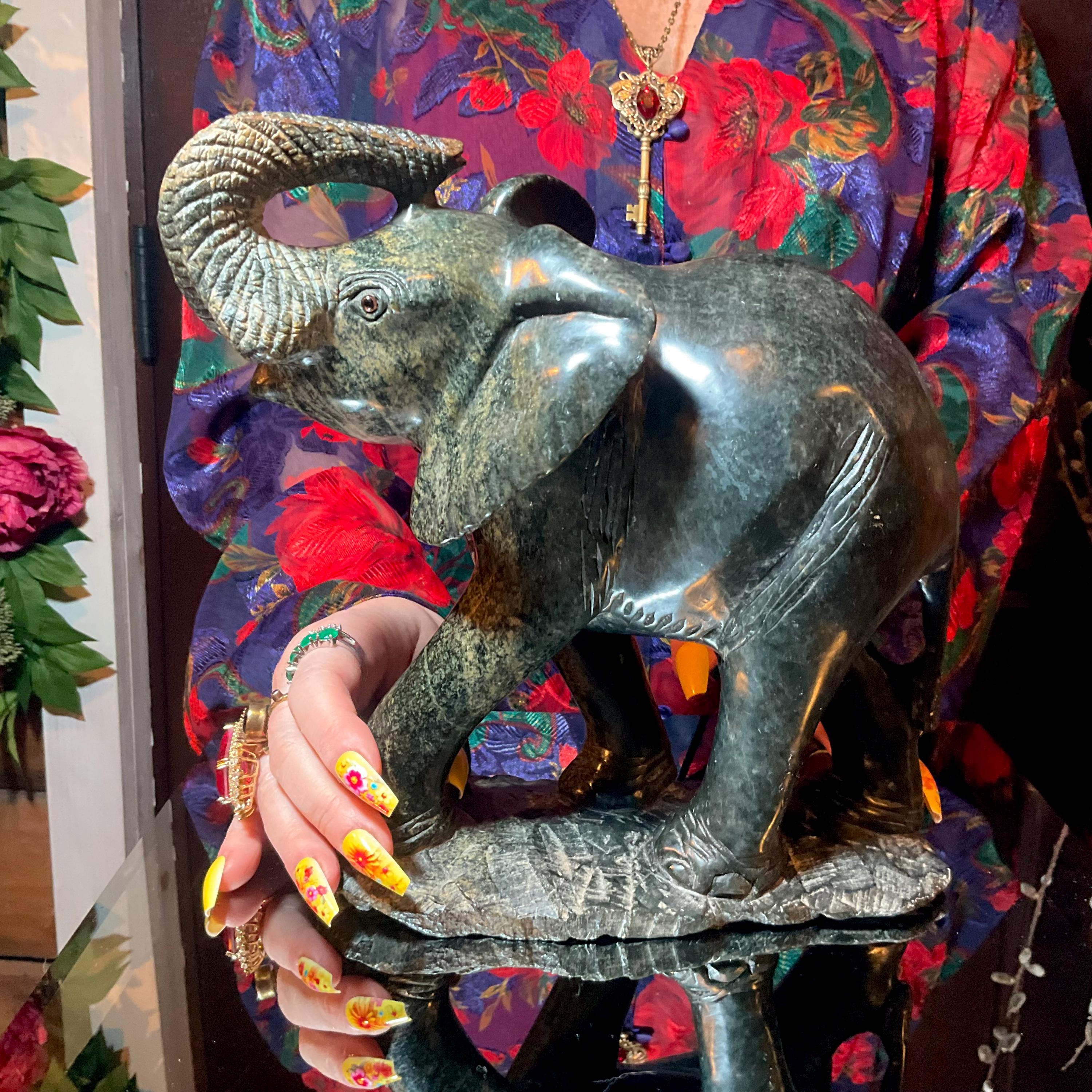 If you love vintage hand carved Verdite, then this Elephant is for you.