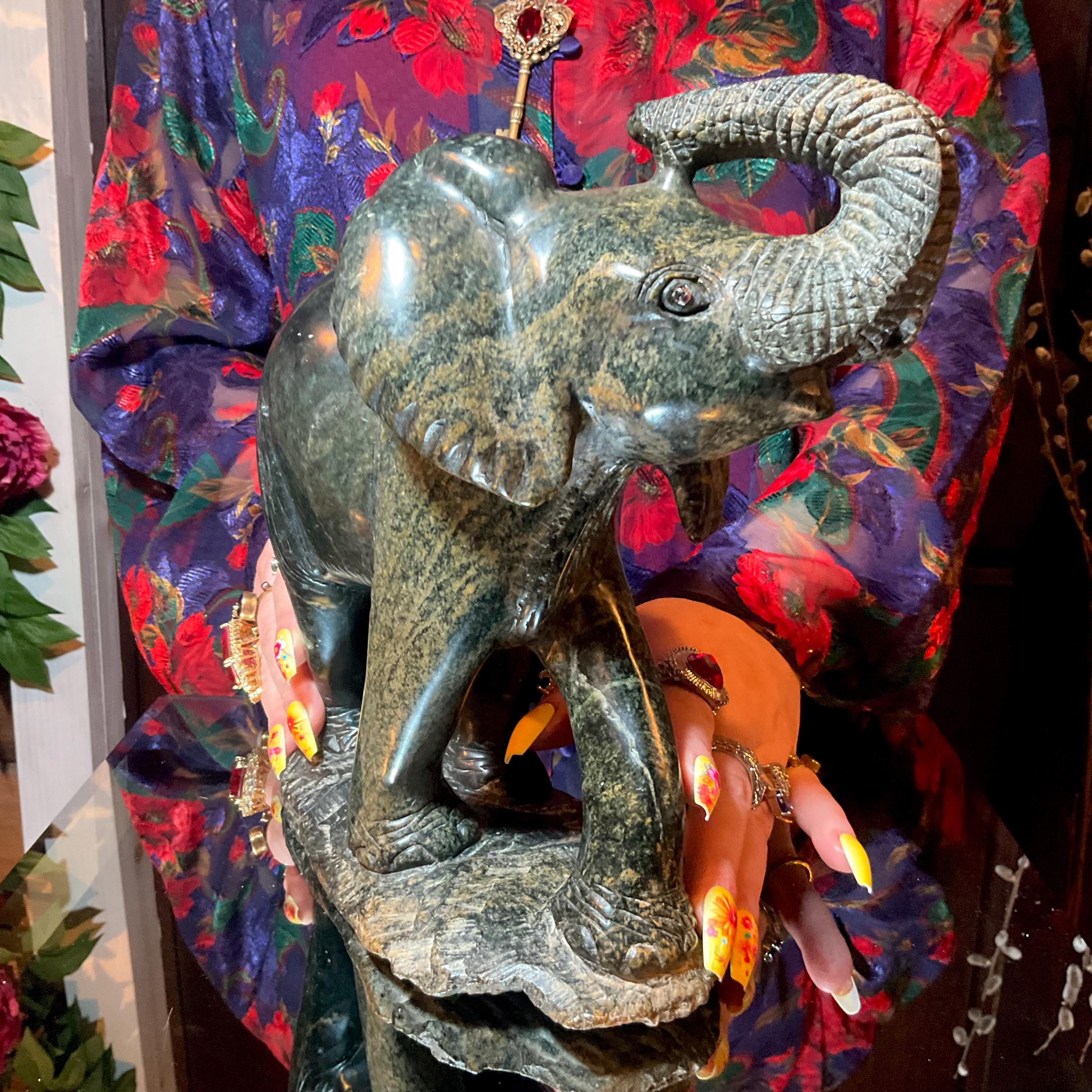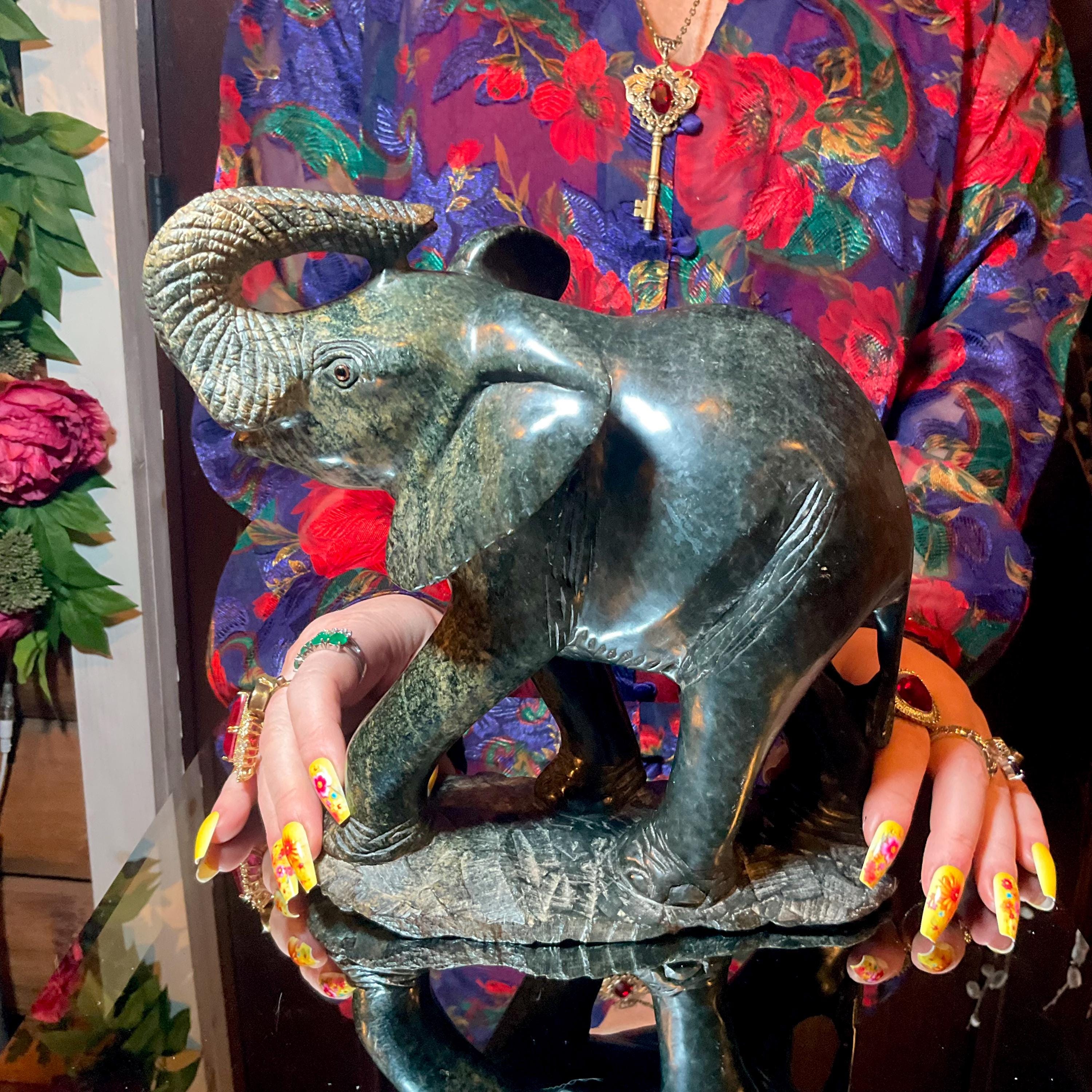 Vintage Hand Carved Verdite Elephant Large 9 Lb. 7 oz. ~ 9" Long ~ Hand Carved ~ Animal Totem, Altar, Reiki Display