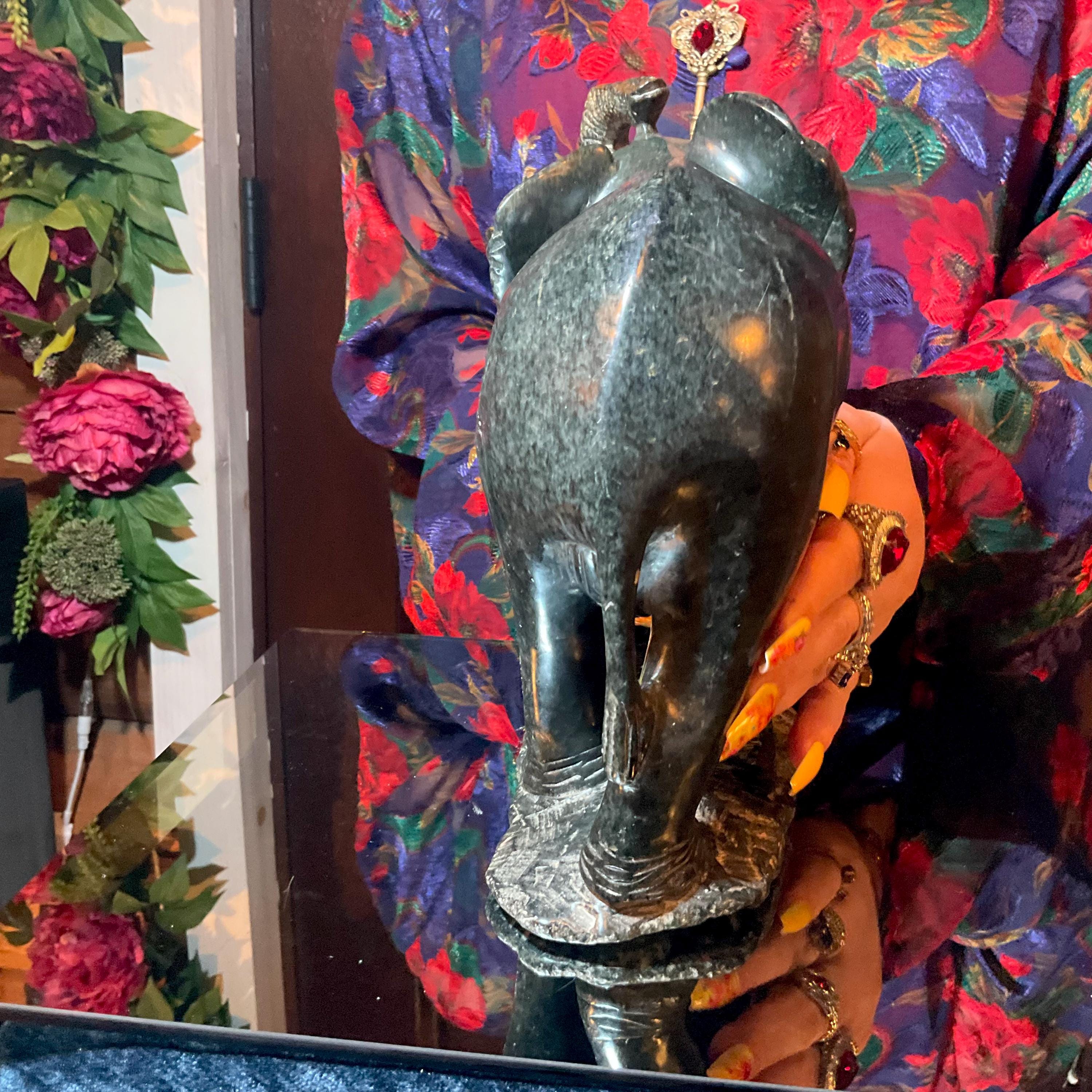 What makes this Verdite Elephant so special is age, patina, and its vintage deco free form style.