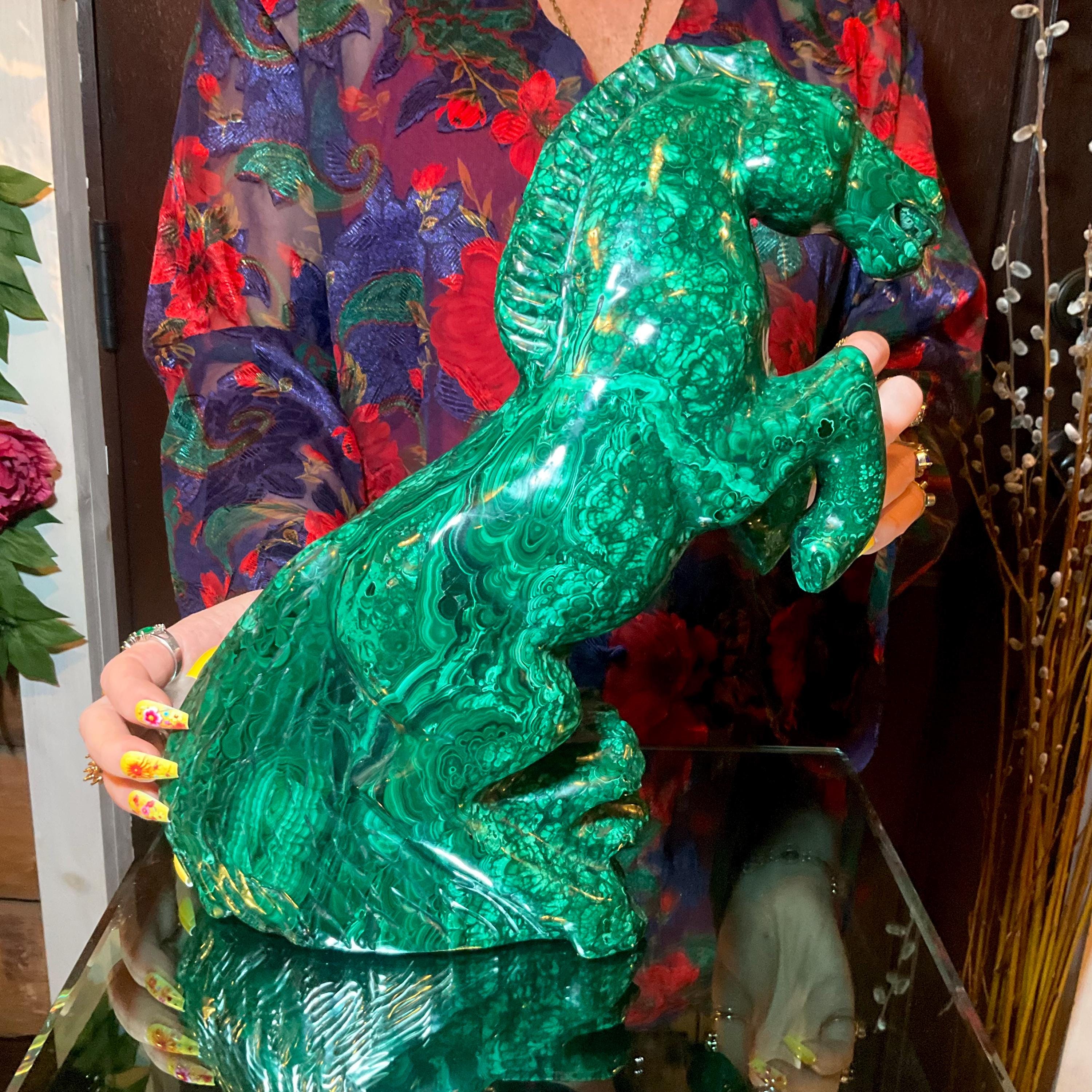 Malachite Horse Large 19 Lb. ~ 12" Long ~ Vintage Hand Carved & Polished in Congo ~ Animal Totem, Altar, Reiki Display