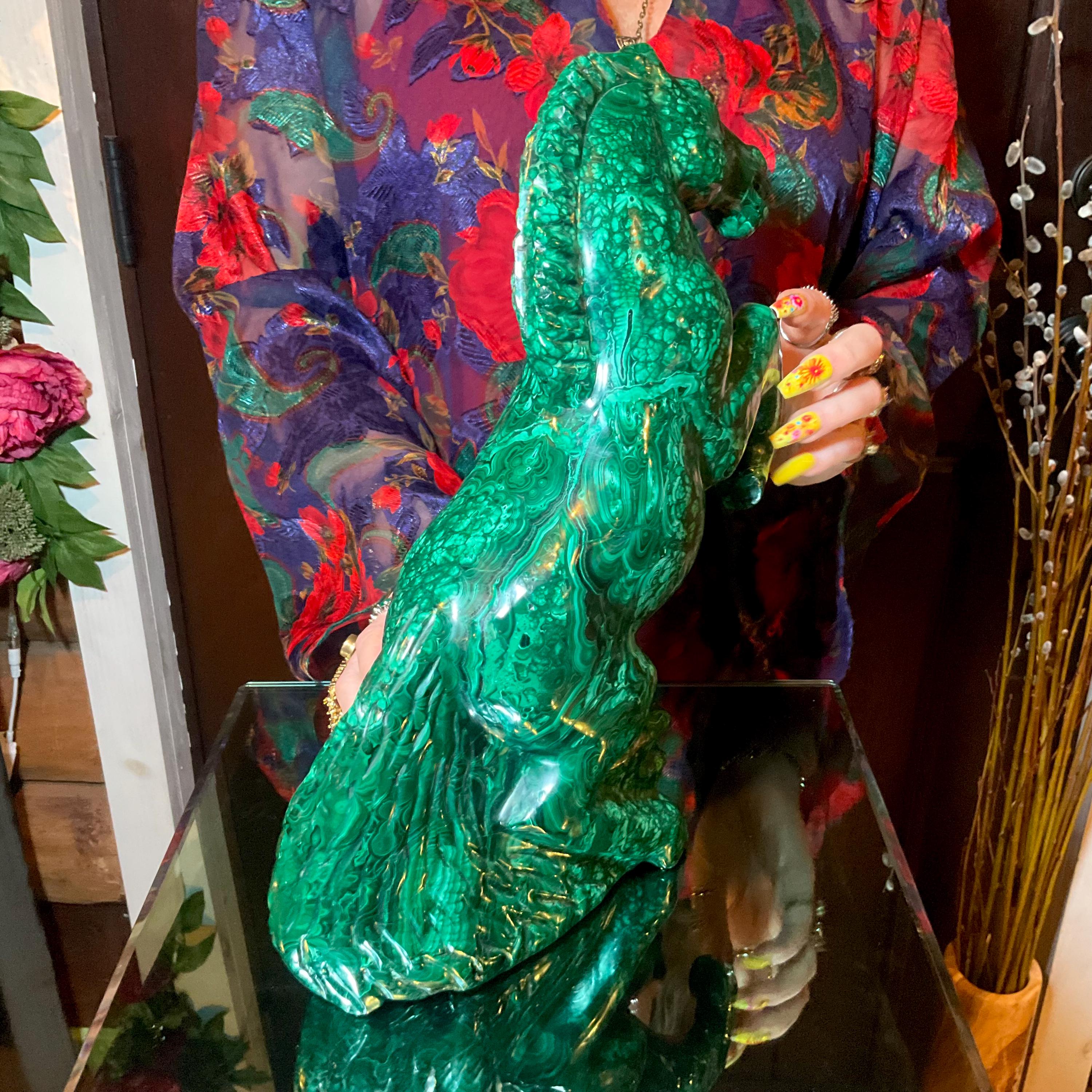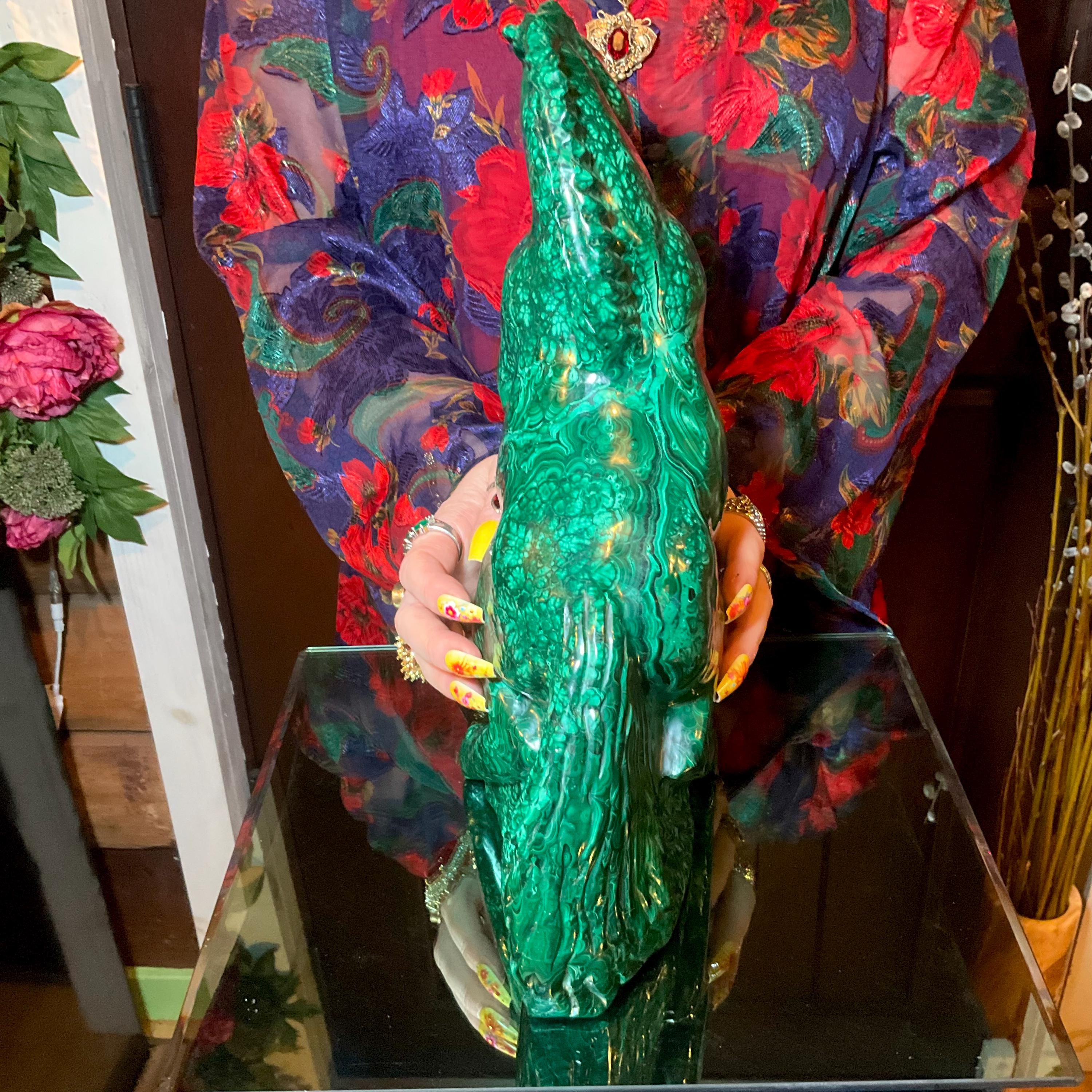 This piece of vintage Congo Malachite is so beautiful, so thick and its natural patina is not like the modern Malachite from China ~ its colors are so rich, and the detail of the stone is hand carved, making it a one-of-a-kind creation.