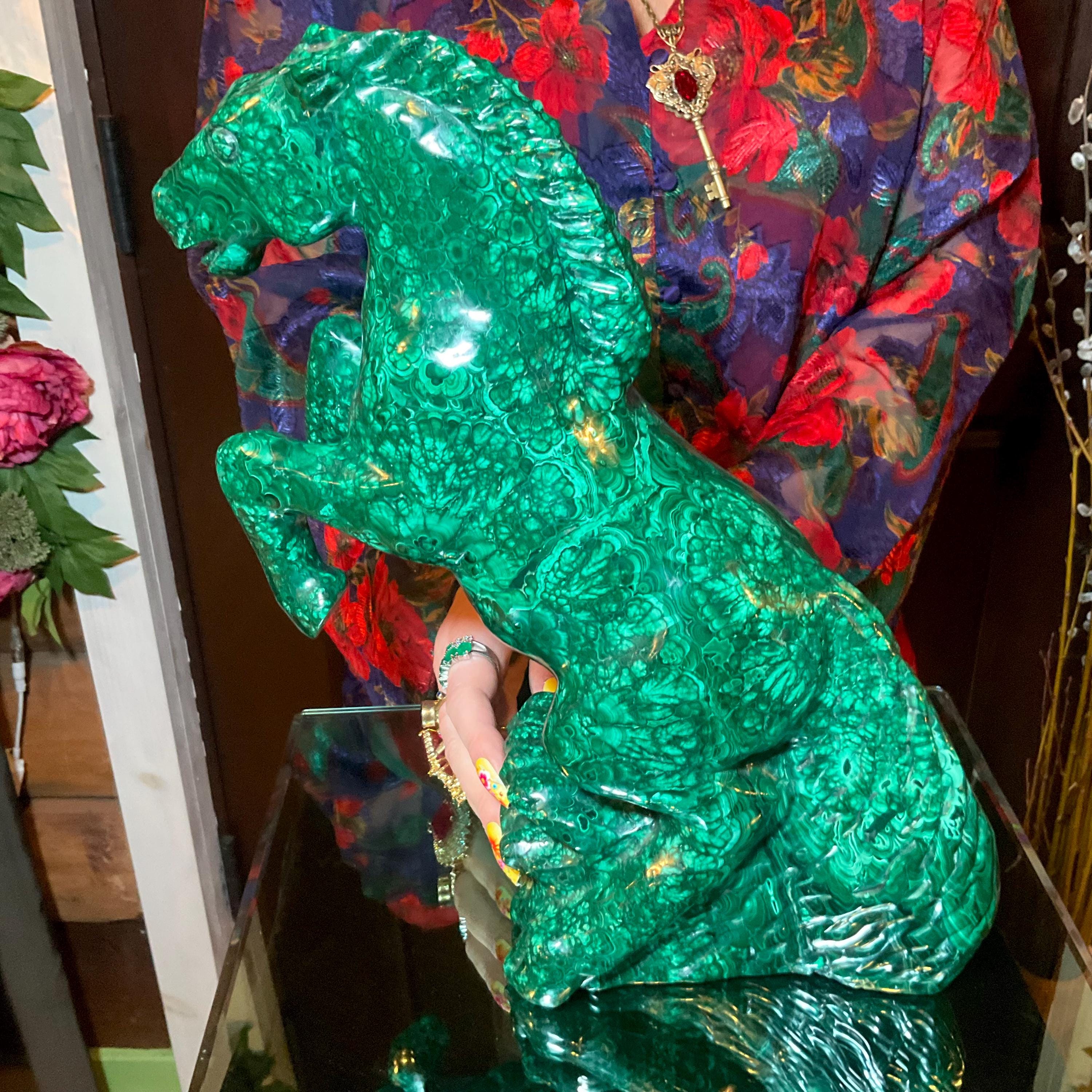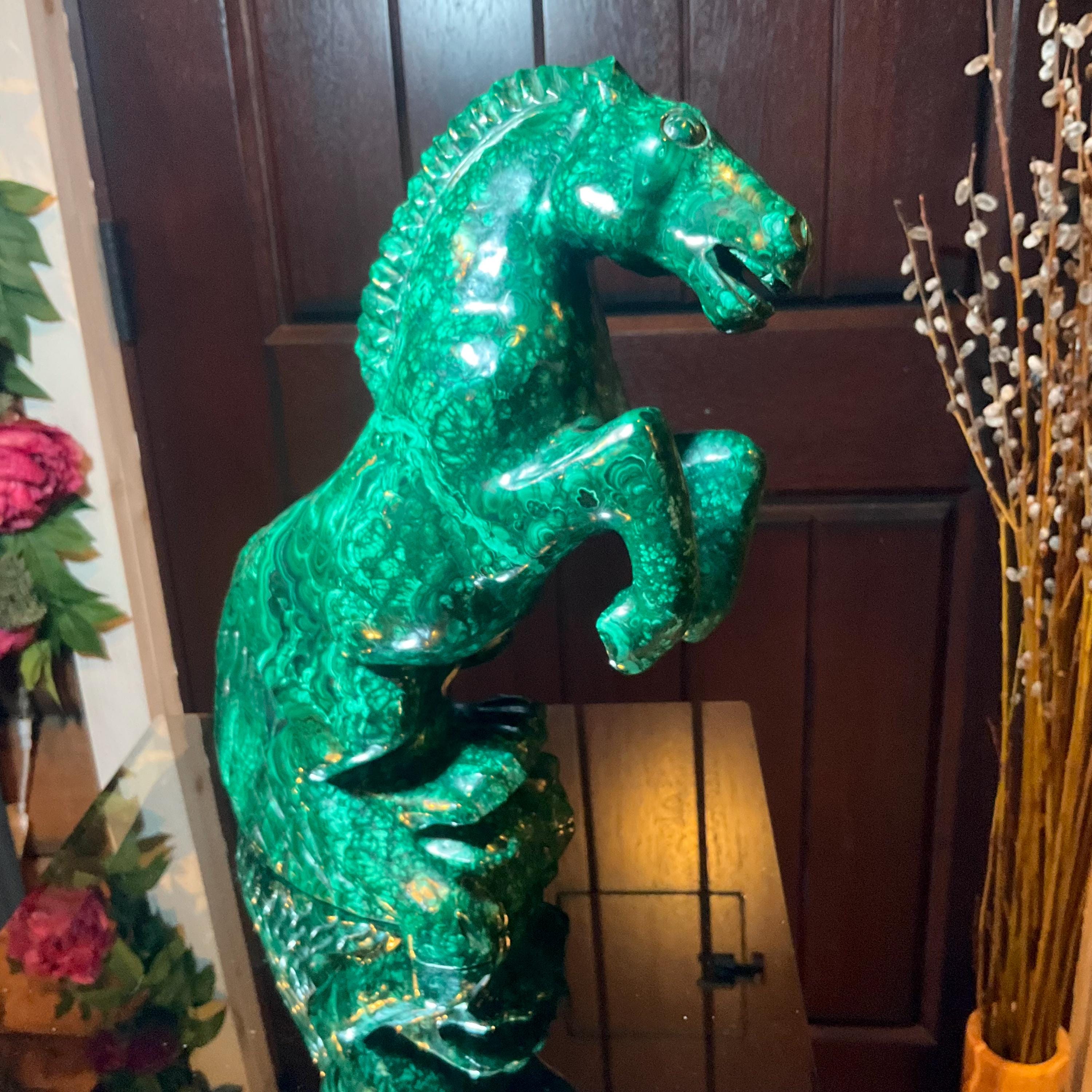 If you love vintage hand carved Malachite, then this Horse is for you.