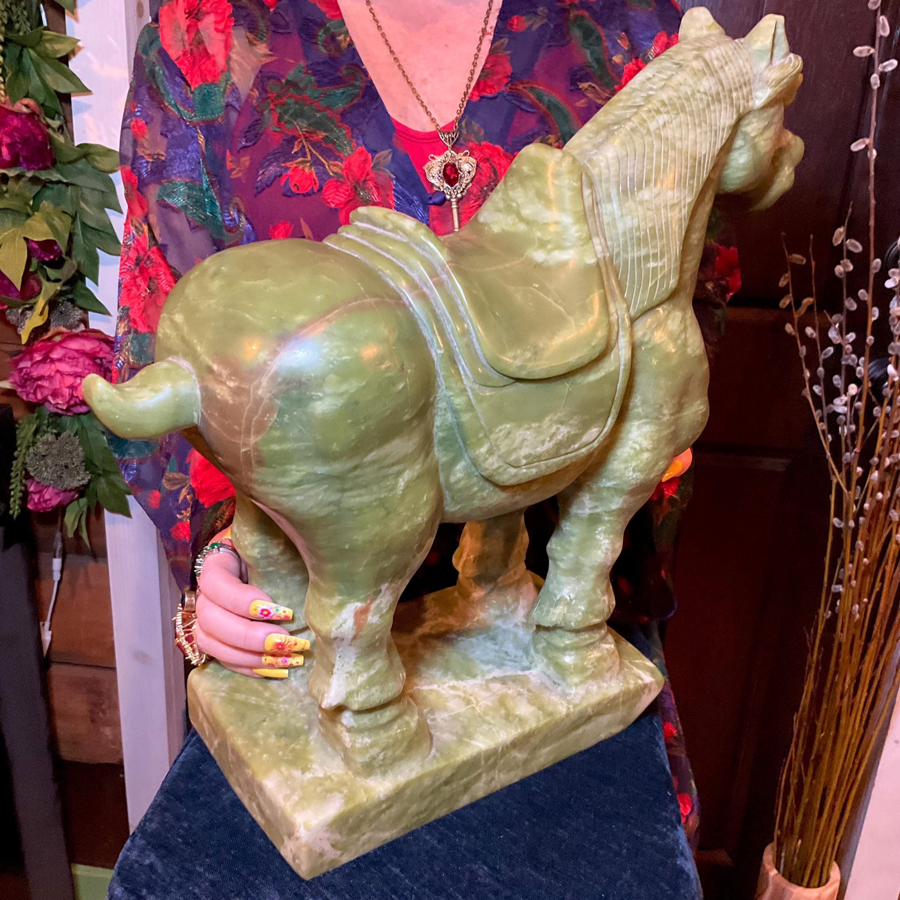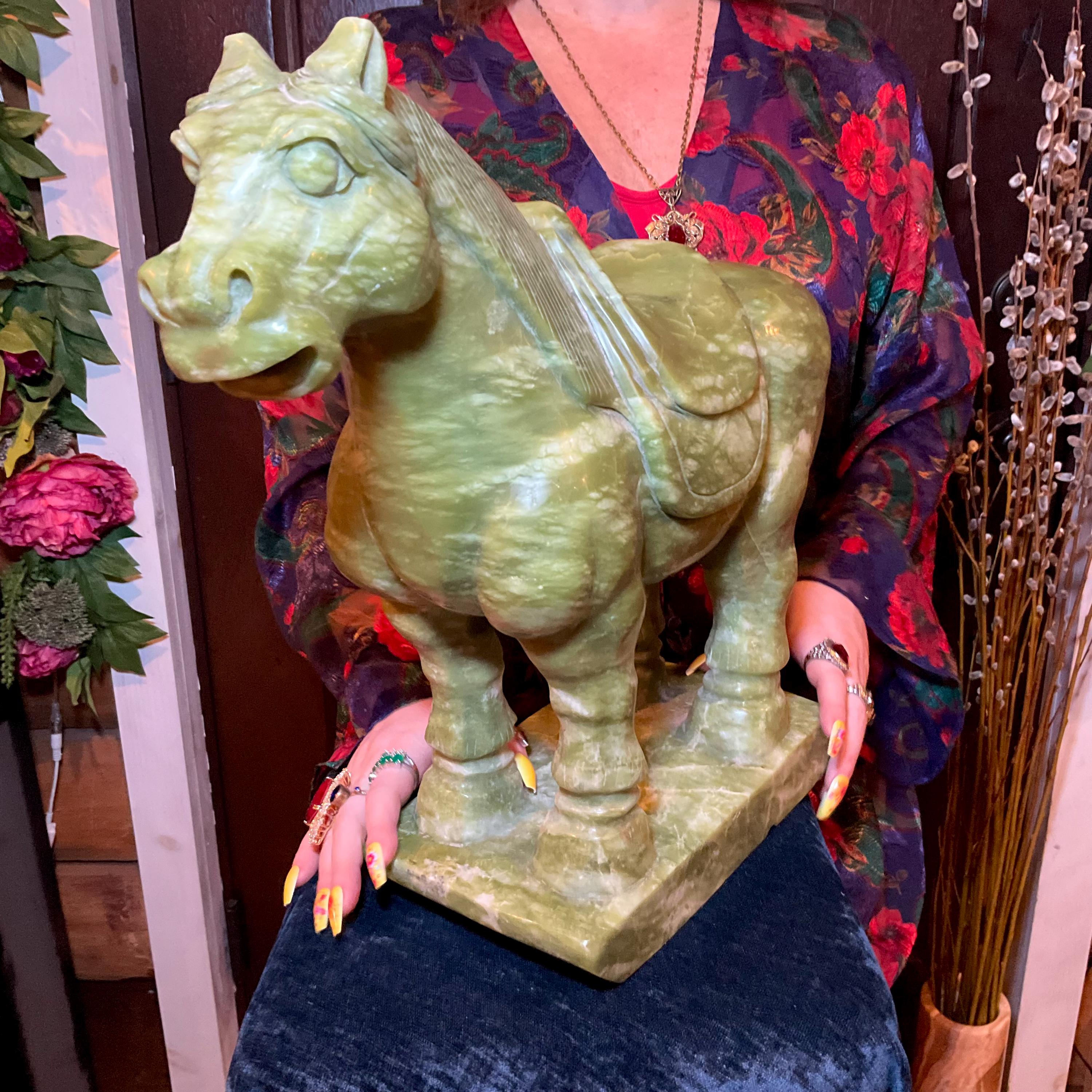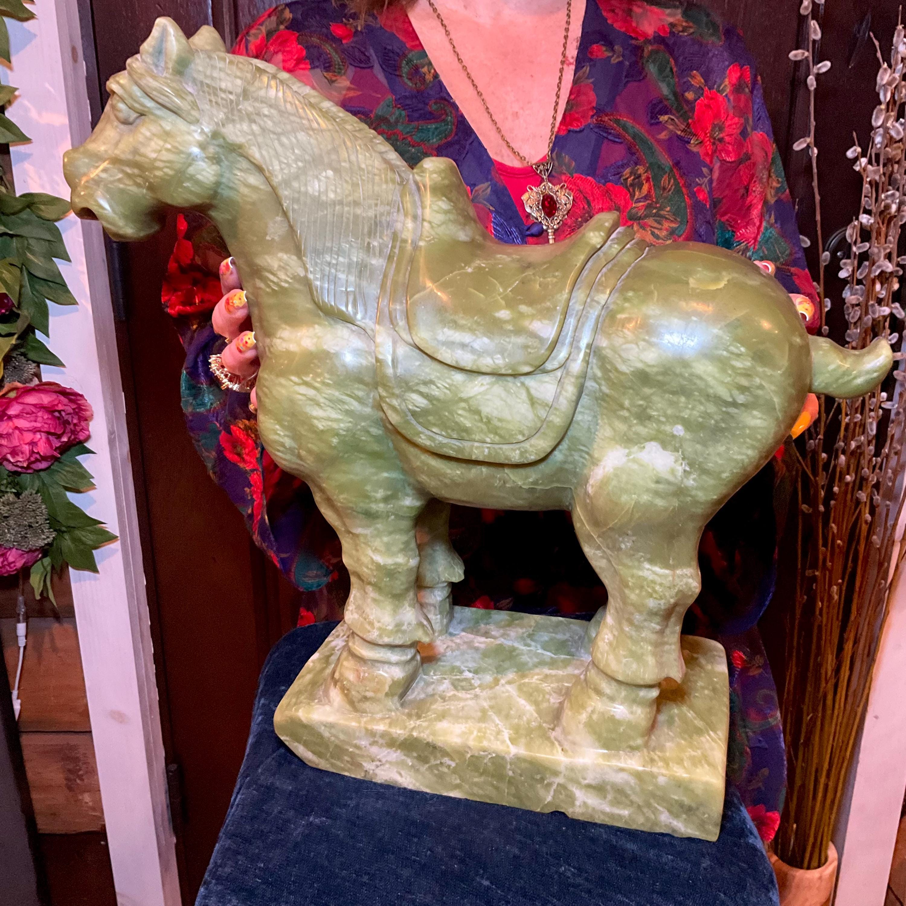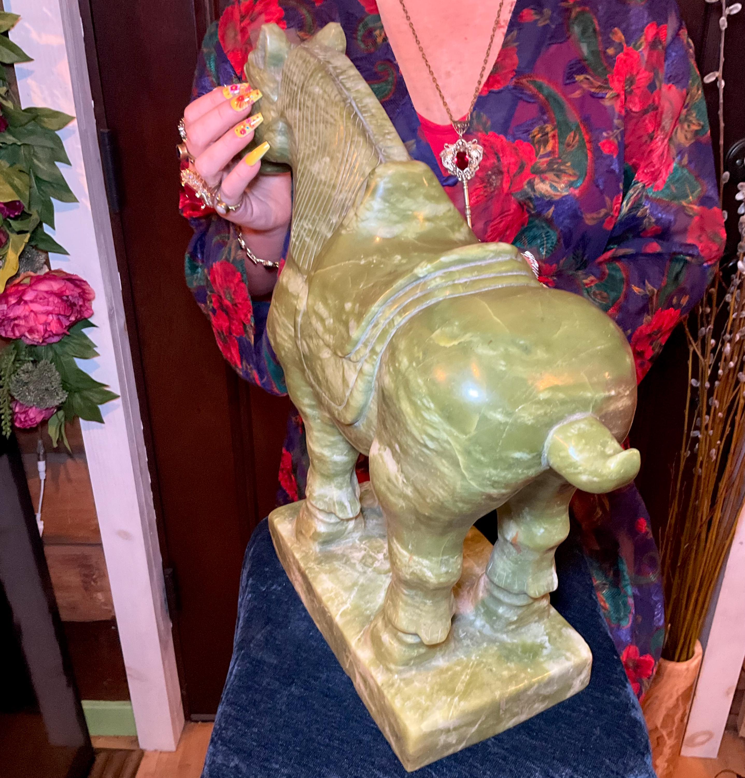 Jadeite Horse Large 42 Lb. ~ 16" Tall ~ Vintage Hand Carved Amazing Detail ~Stunning Display Specimen ~ Gorgeous Green Mineral Animal Totem, Altar, Reiki Display