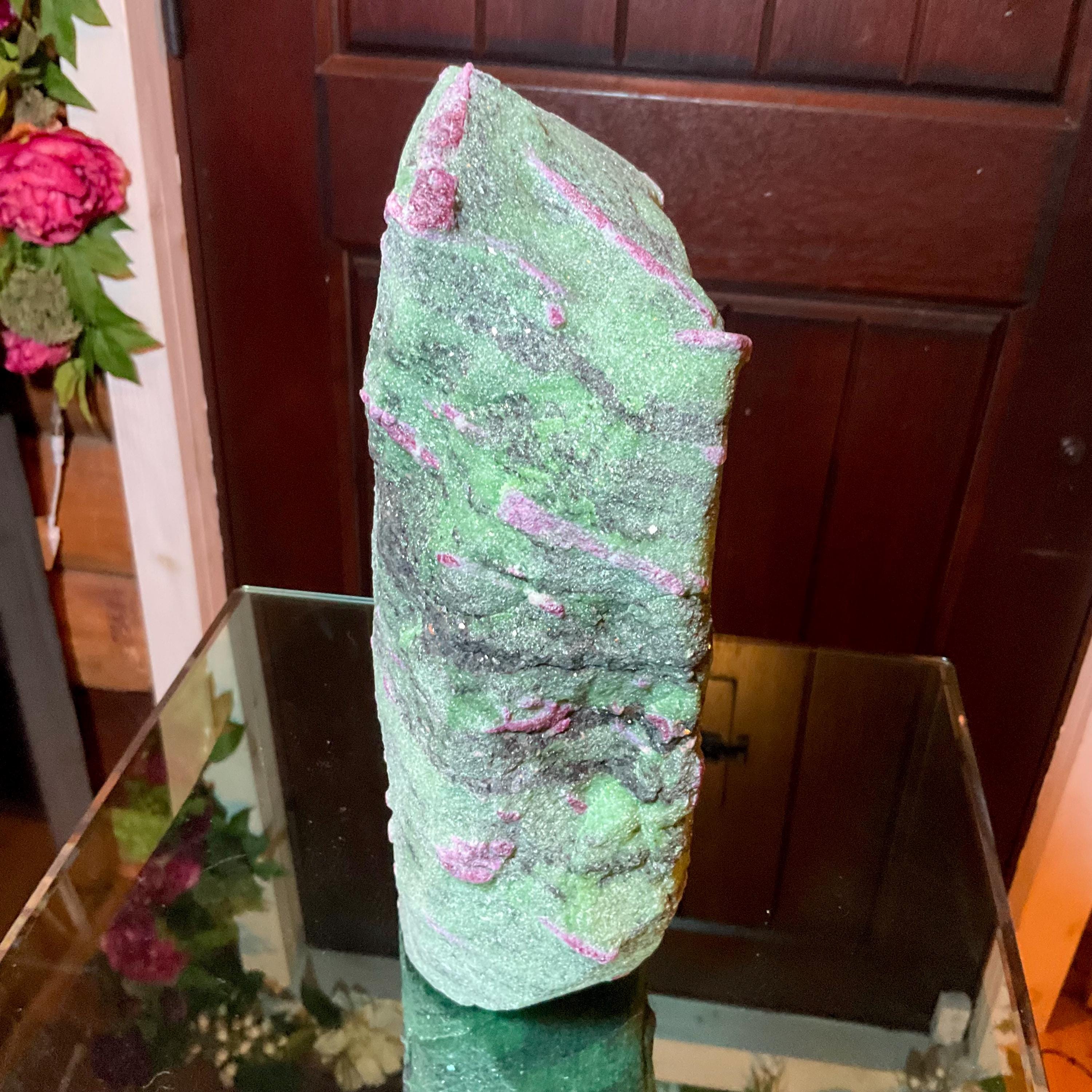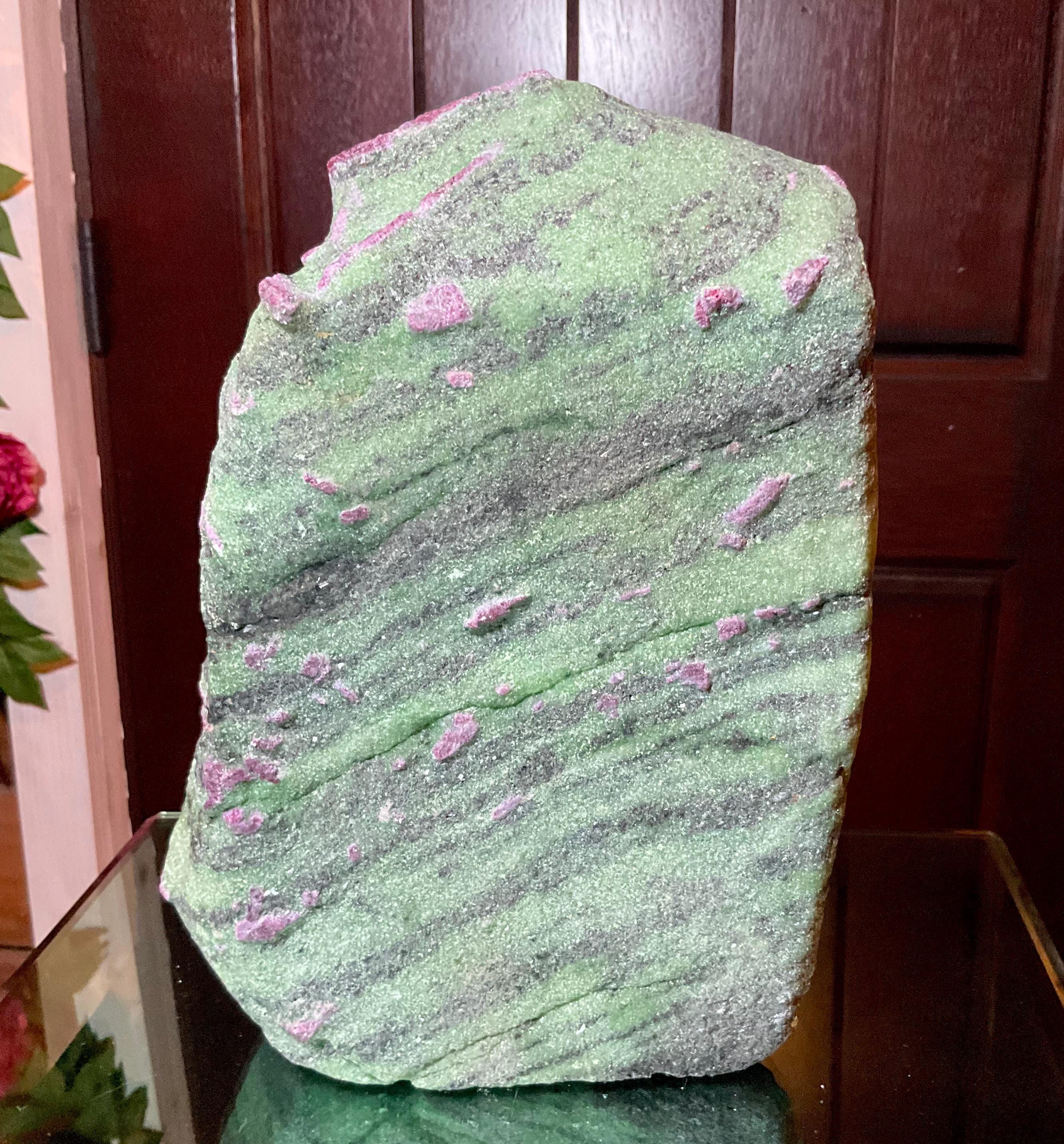 Polished to perfection, and unbelievable Patterns throughout ~ this Ruby Zoisite crystal Cluster is perfection, so interesting.
