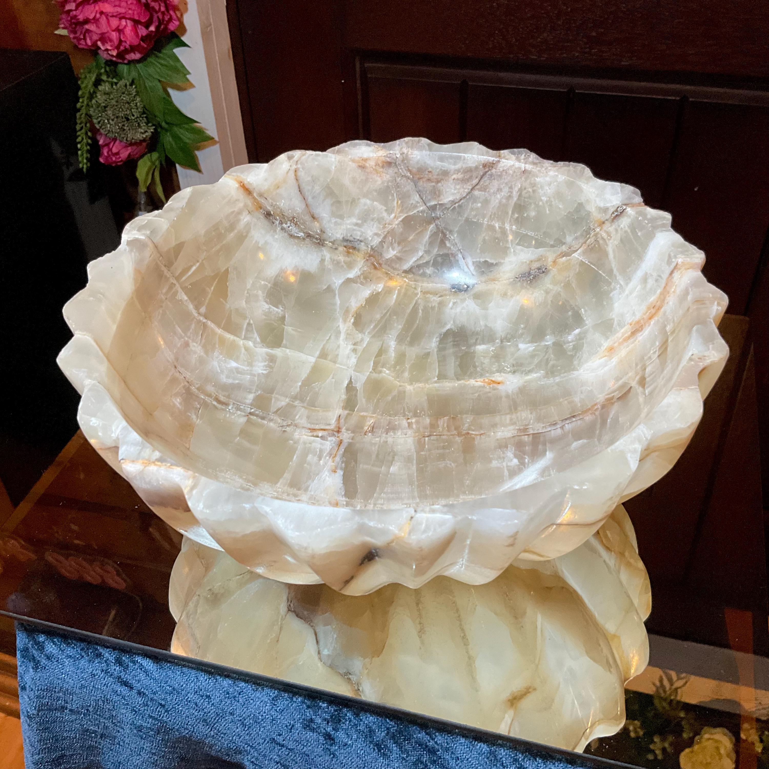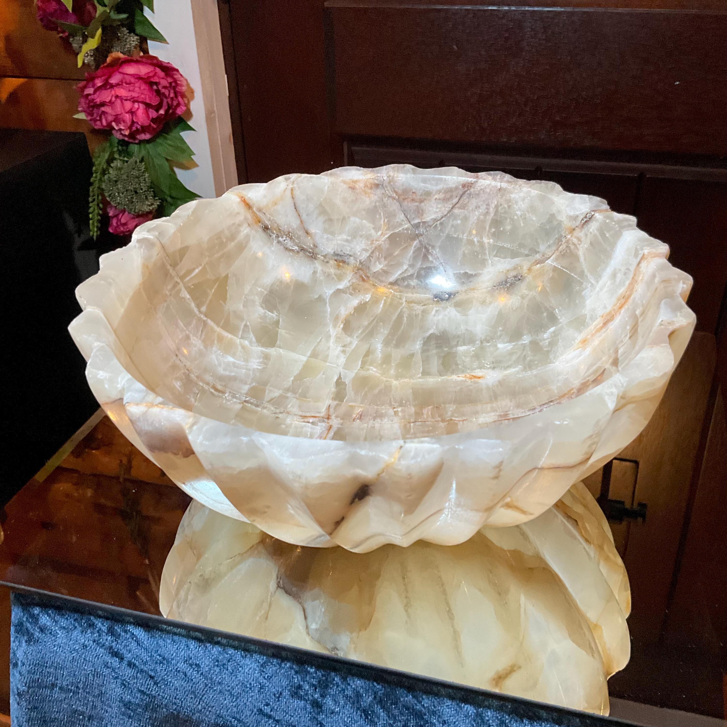 This natural White Calcite Bowl is so beautiful, so thick and its natural patina are so rich, and this magnificent Calcite natural stone bowl is hand carved making it a one-of-a-kind creation.