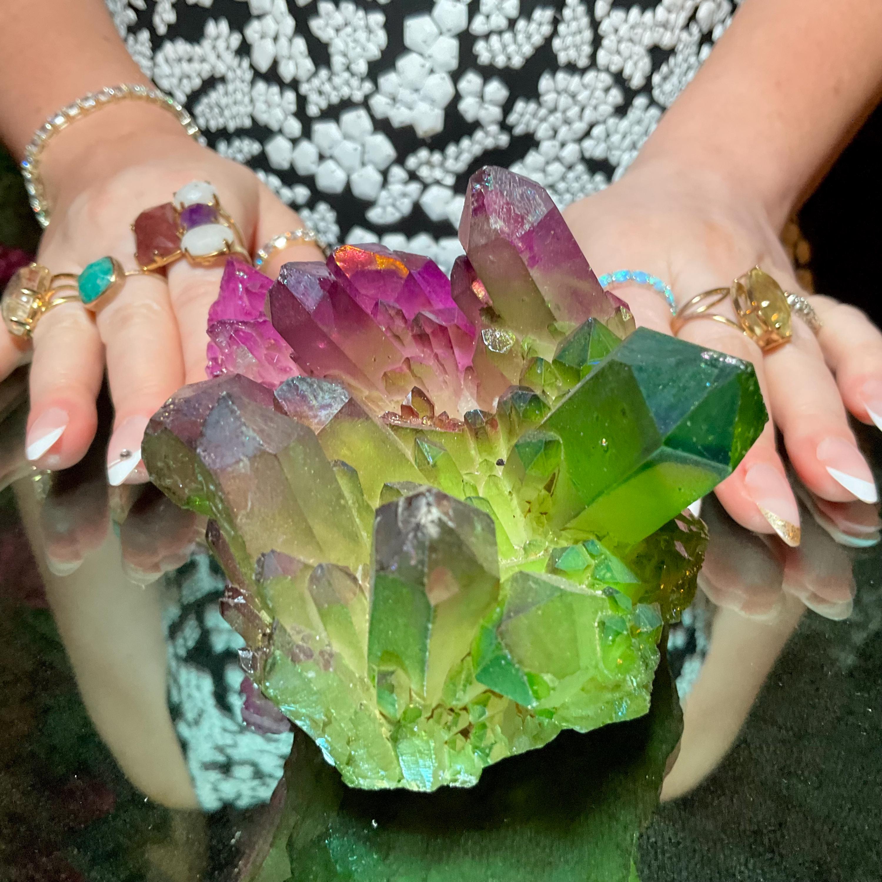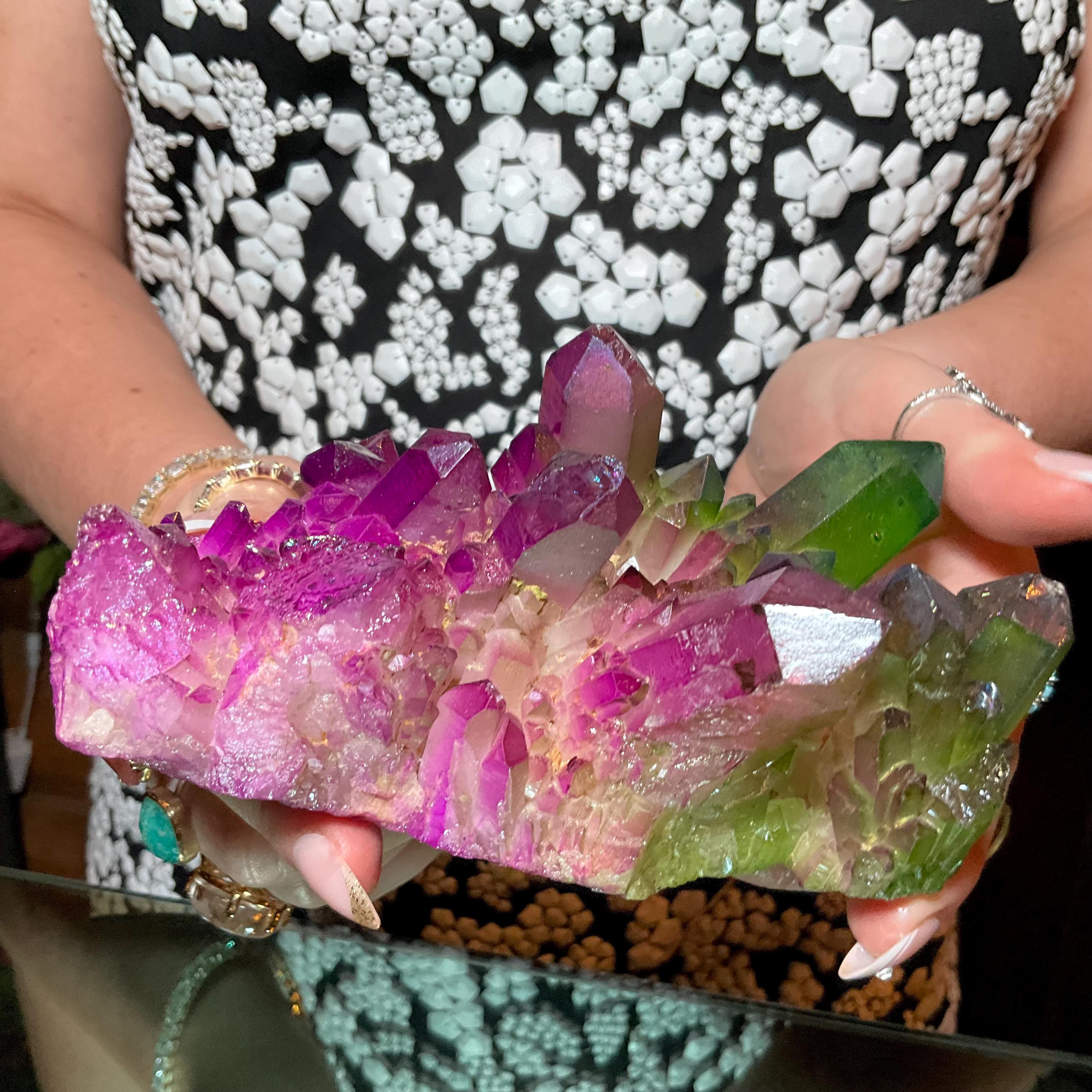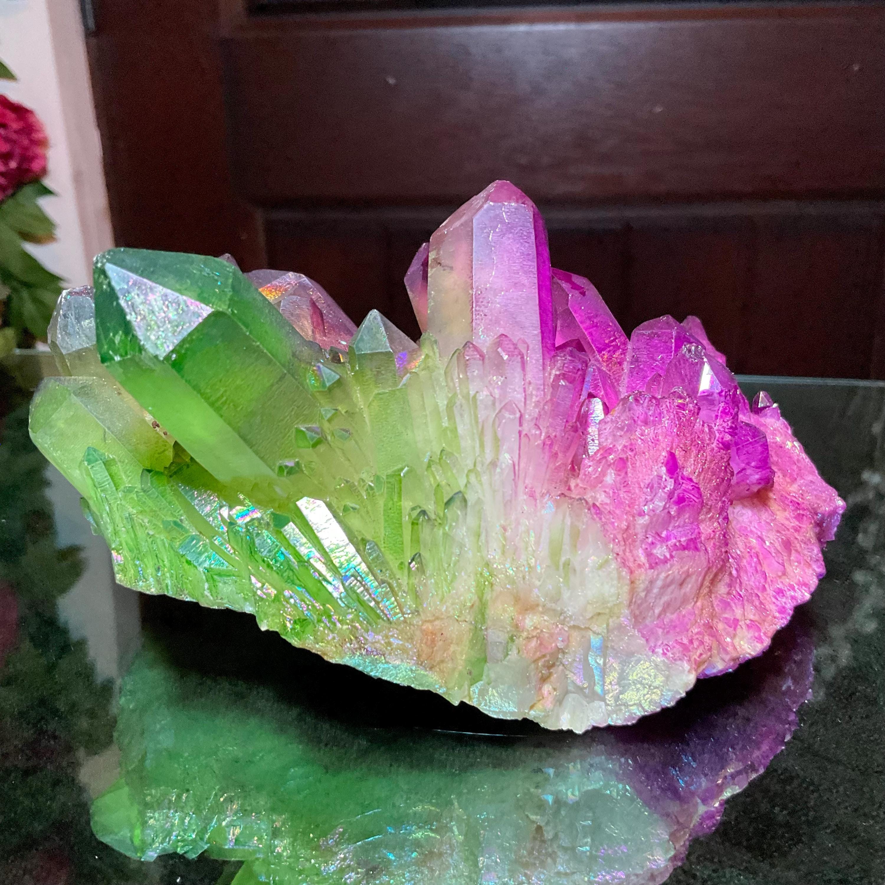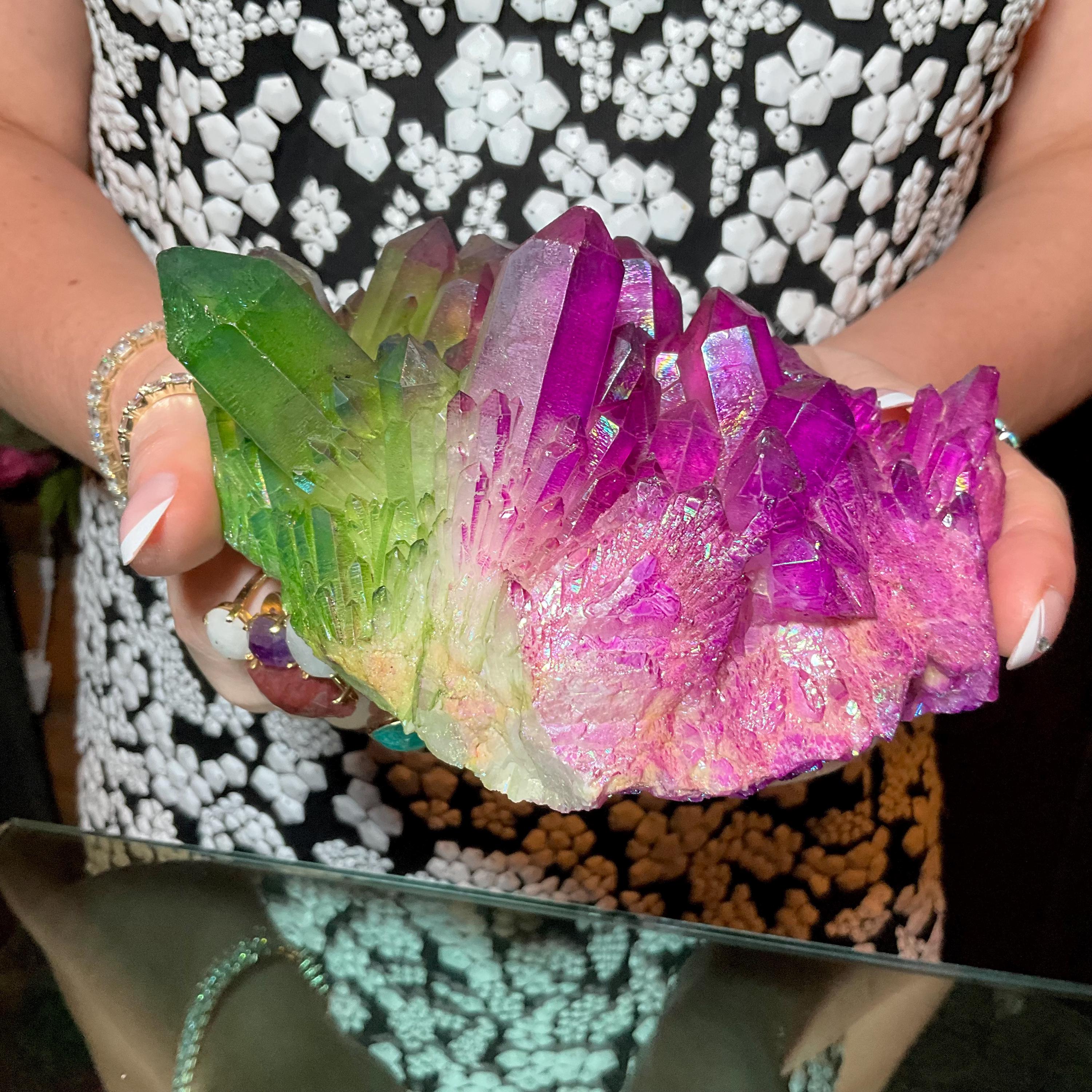 Purple & Green Aura Quartz Crystal Cluster ~ Large 1 lb. 10 oz. ~ 5" Long ~ Rainbow Iridescent Electric Points ~ Fast Free Shipping, USA