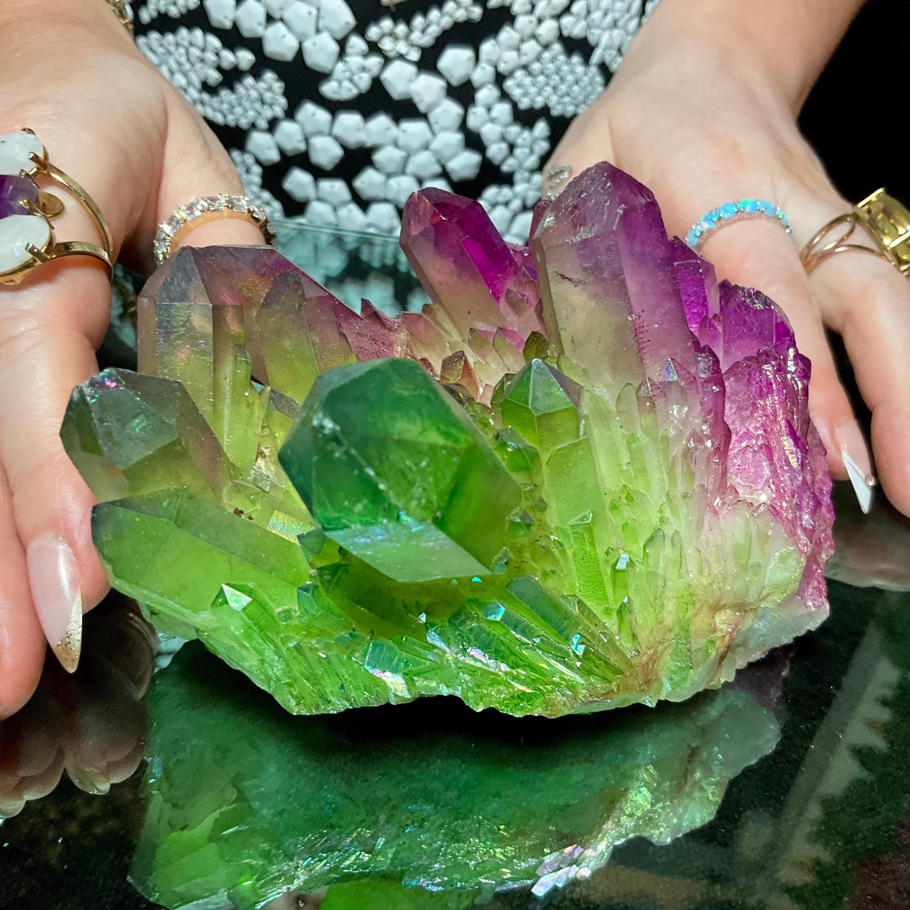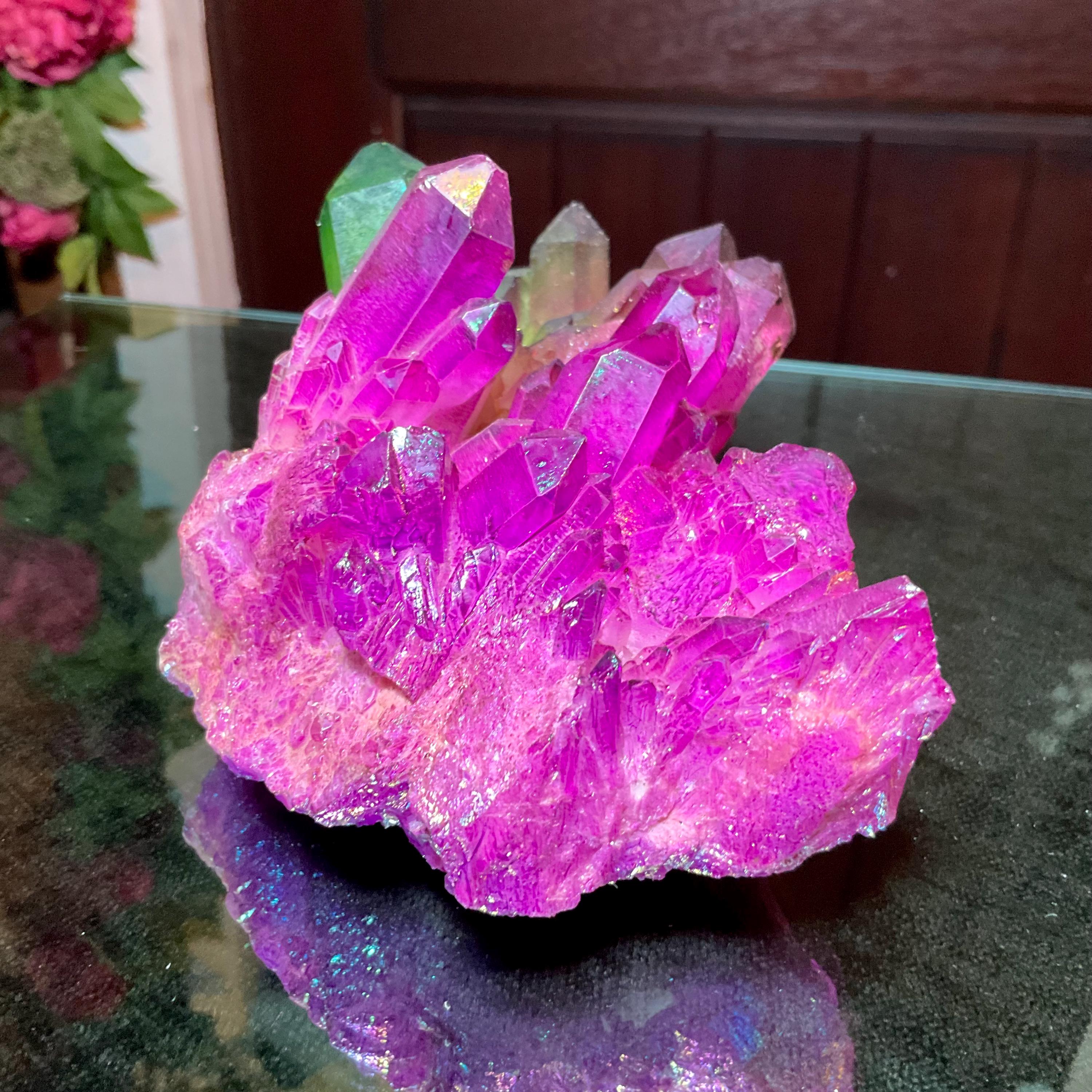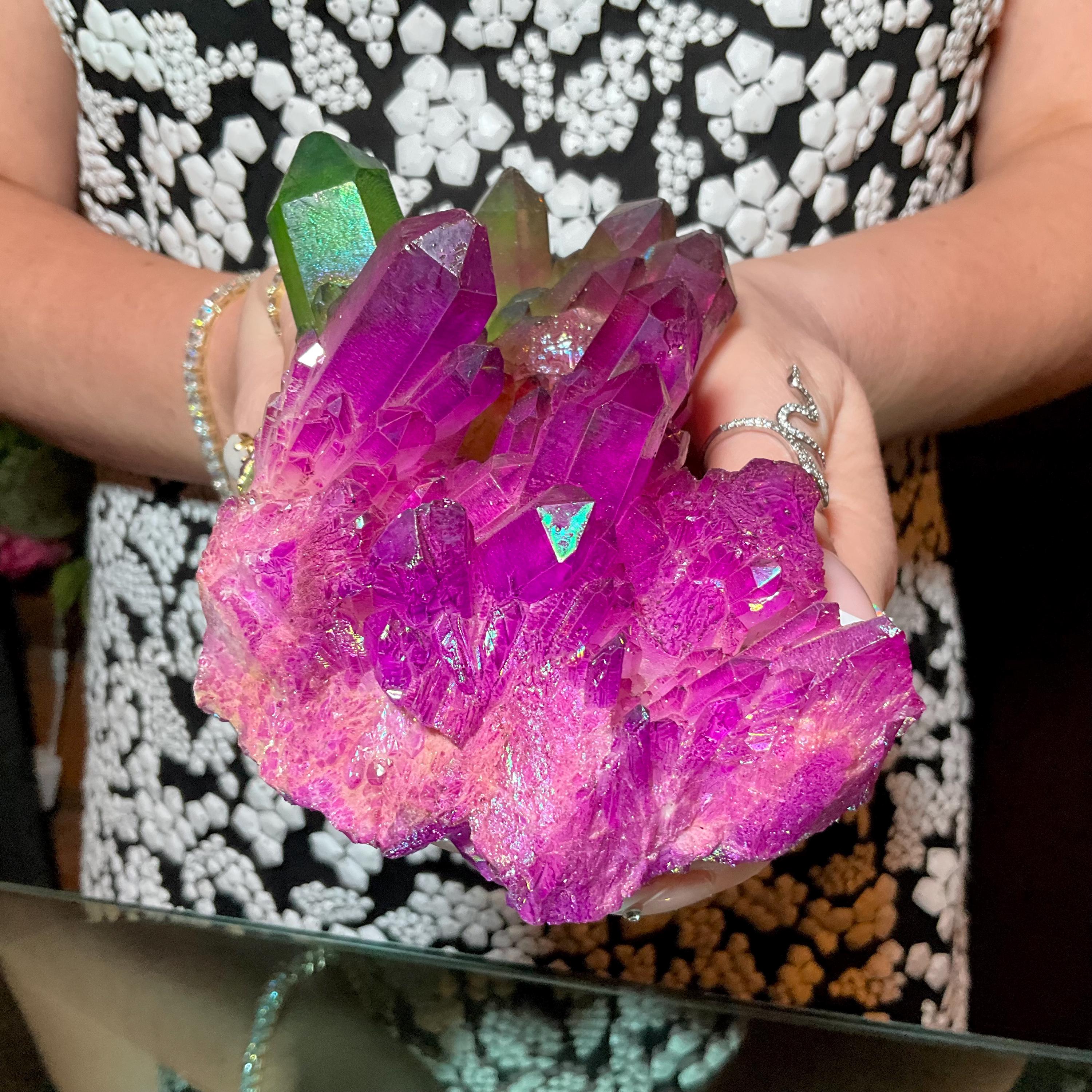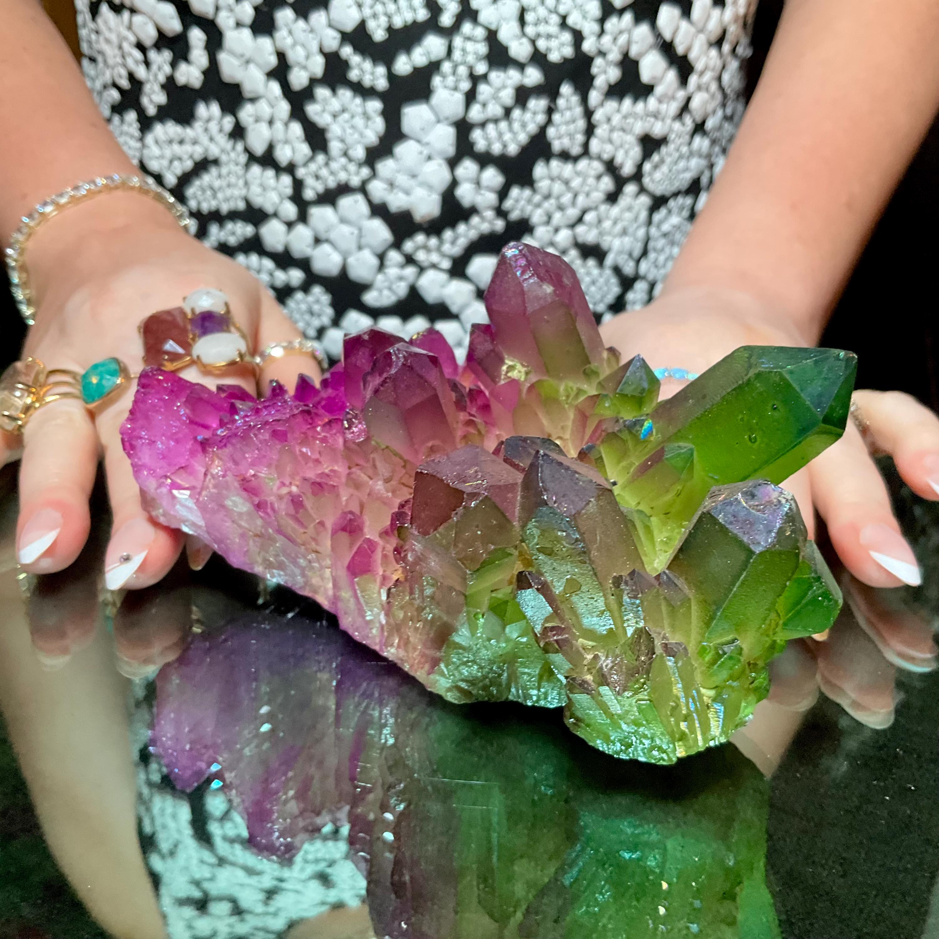 Purple & Green Aura Quartz Crystal Cluster ~ Large 1 lb. 10 oz. ~ 5" Long ~ Rainbow Iridescent Electric Points ~ Fast Free Shipping, USA