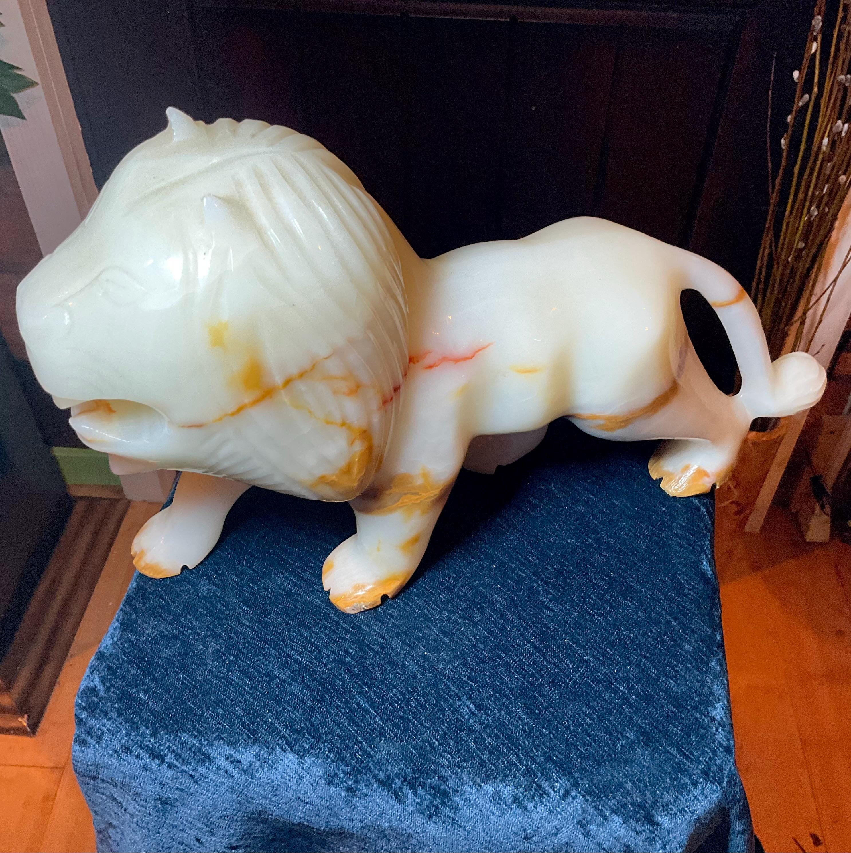 Vintage White Onyx African Lion Big 13 Lb. 8 oz.~ 15" Long ~ Hand Carved Museum Quality ~ Swirling White Colors