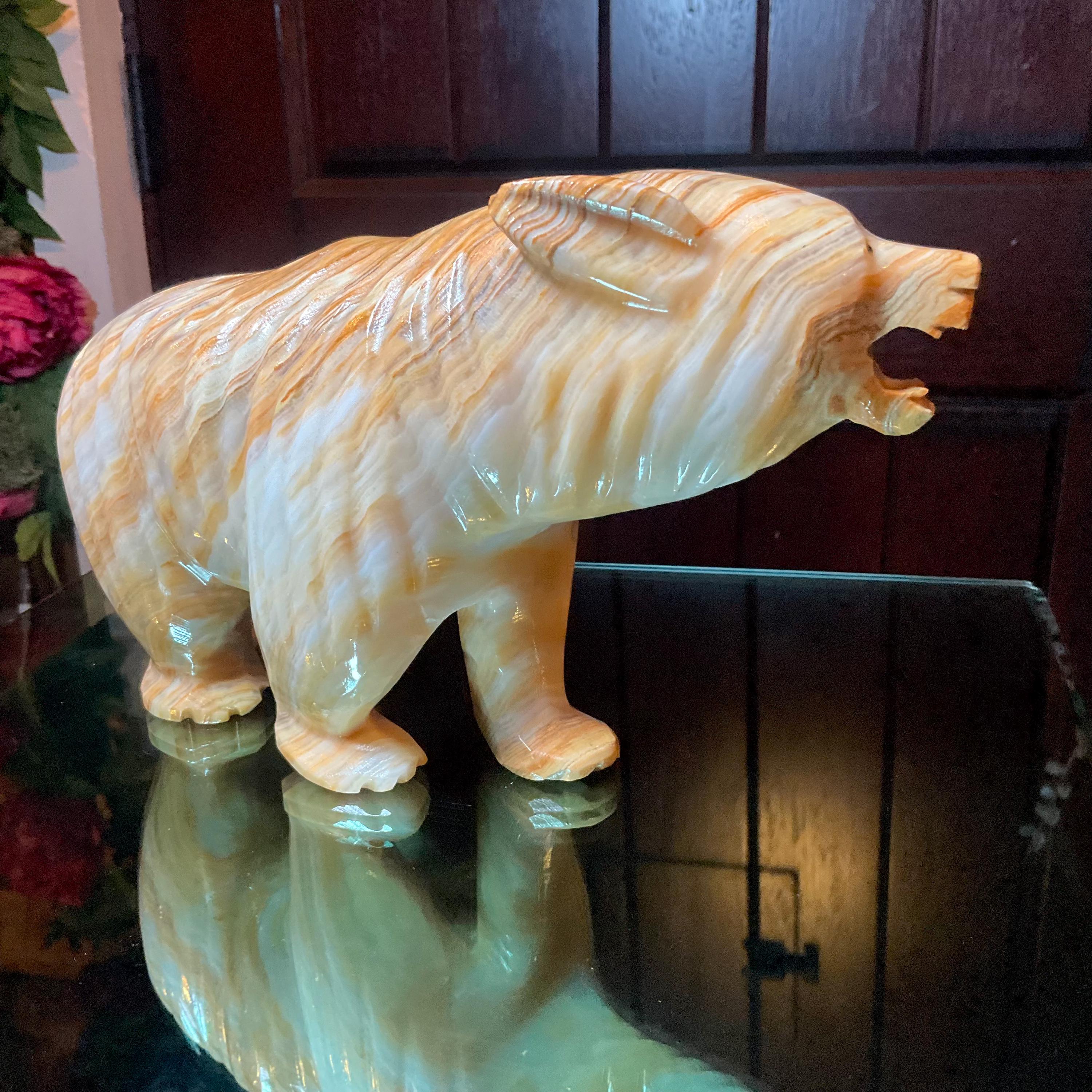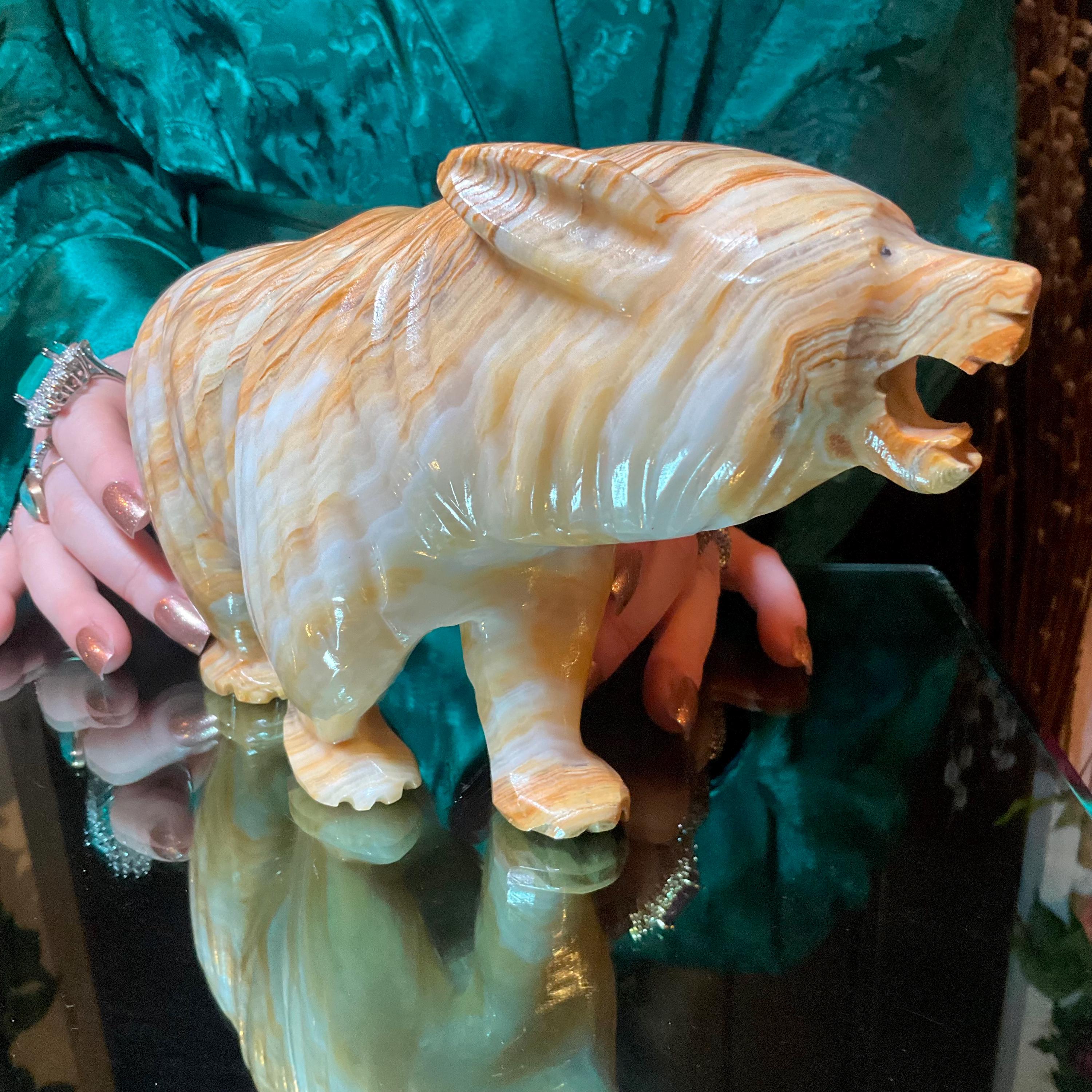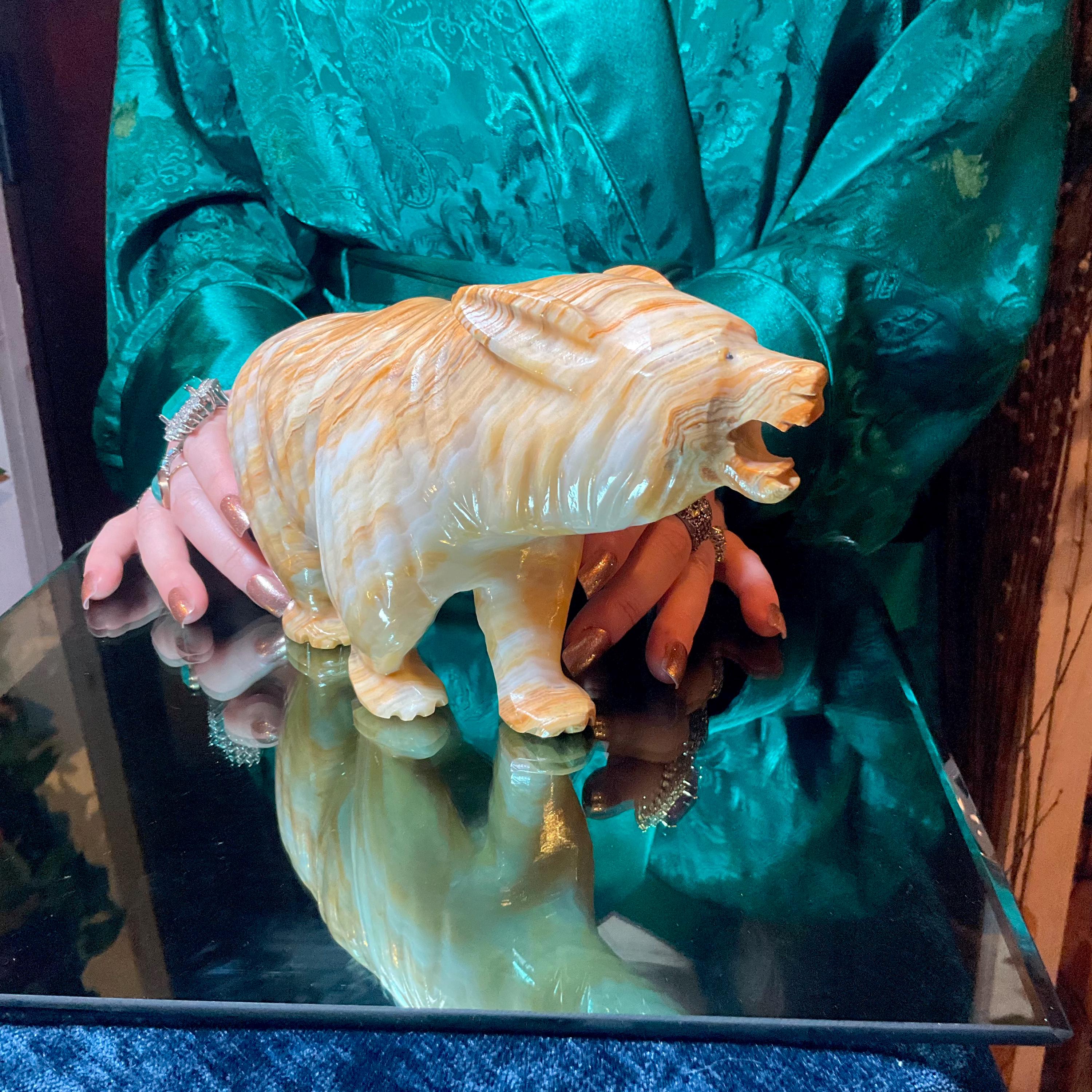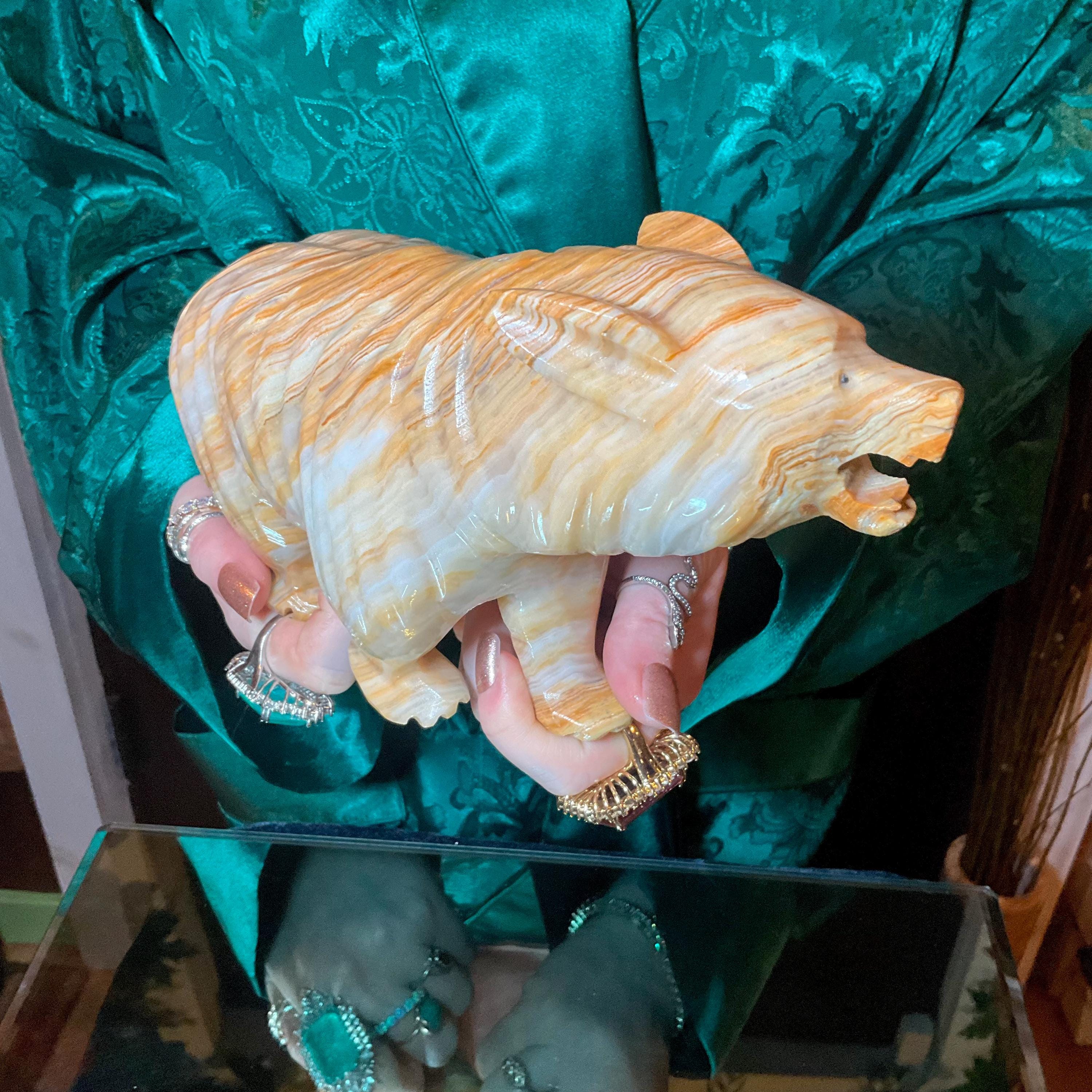This is a one-of-a-kind carved White and gold Onyx bear.